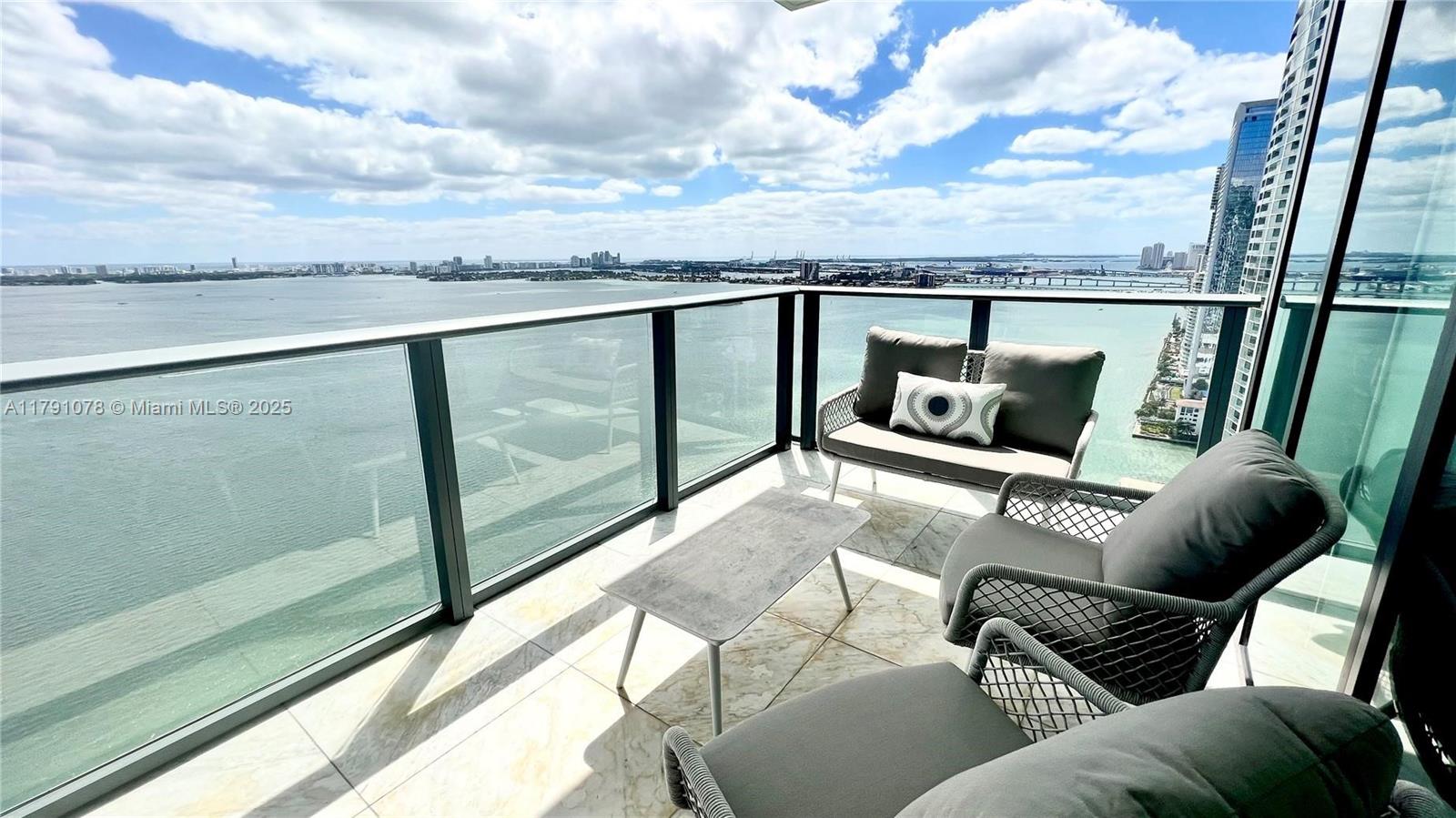 AMAZING CORNER UNIT IN THE DESIRABLE ONE PARAISO. 3 BEDROOM | 3.5 BATHROOMS FULLY AND TASTEFULLY FURNISHED! Spectacular unobstructed views to Biscayne Bay, Ocean and City! Calacatta marble floors throughout including the terraces (8-10 foot deep) further enhance the expansive views in every direction with automated shades in every room for rest and privacy. Built-out closets, Elegant custom Italian cabinetry, top-of- the-line appliances, Private elevator access and foyer entrance. AMENITIES offer: 3Pools, Cabanas, Sauna, Steam and Massage Room, Gym, Theater, Business Ctr, Kids Room, 2 tennis courts... Minutes away from Miami International Airport, I95, South Beach, Midtown, and Wynwood.