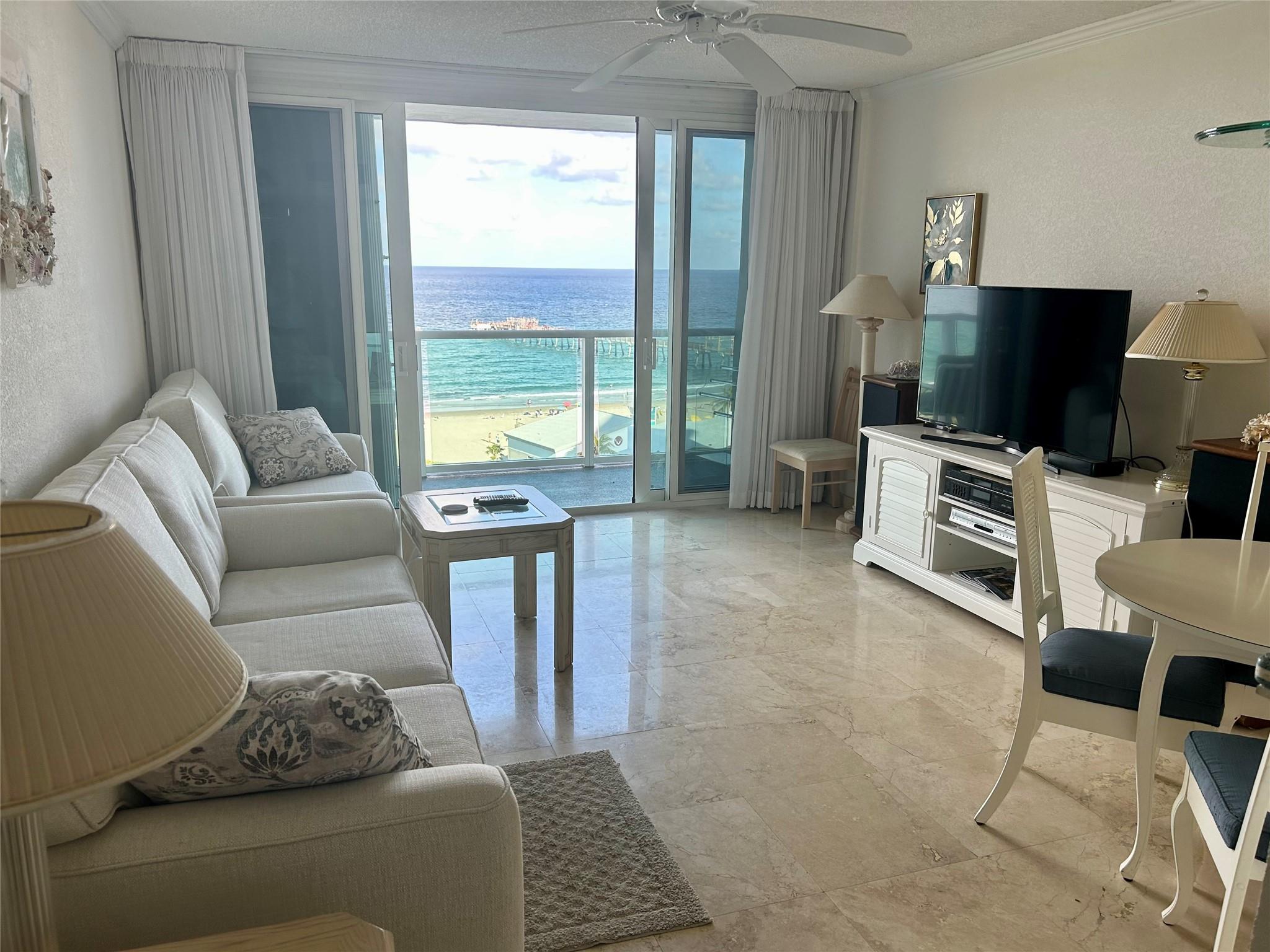BEST OPPORTUNITY TO LIVE AT THE CROWN JEWEL OF DEERFIELD BEACH! Paradise awaits you as you Vacation everyday! No check-out time here. Direct Oceanfront condo everywhere you look. Floor to ceiling Hurricane Impact windows from your living room & bedroom. Beautifully furnished - Washer/Dryer in unit. Updated kitchen & Bath. Private 30+ foot balcony overlooks the pier. Walk across the street to JBs on the beach & Ocean 234! Party at the newly renovated cabana & BBQ area. Enjoy the Tiara East Cabana Beach Club including Heated Pool, golf putting green, Shuffle Board, 24 hr. concierge, Gym on-site, & steps away from the 976 foot Deerfield Beach International Fishing Pier. Walking distance to restaurants & shops. Move in ready. Furnishings & furniture.$5000/IN-SEASON- 4 month minimum