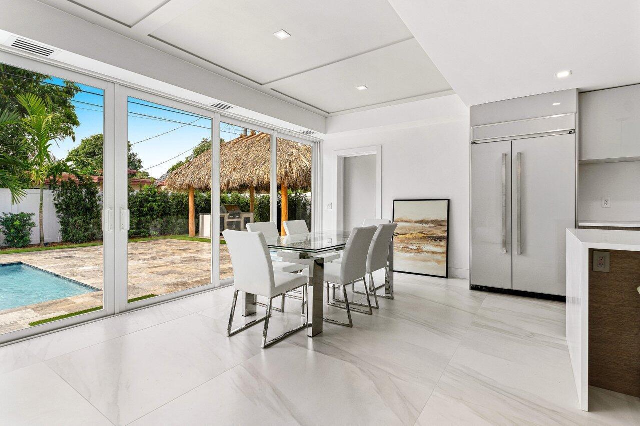 Completely gutted and rebuilt, this stunning 3BD/2BA home in the desirable Chapel Hill neighborhood is like new construction! Located just minutes from downtown Delray Beach and less than 2 miles to the ocean, enjoy luxury living in a prime location. Features include: impact glass, new standing seam metal roof (25-year warranty), new electric & plumbing, spray foam insulation, Level 5 drywall, Italian porcelain tile throughout, custom kitchen w/quartz waterfall island, gas range, and wet bar. Spa-like primary suite with marble bath, soaking tub & sliders to the pool. Gorgeous backyard w/vanishing edge pool, marble deck, turf, tiki hut w/summer kitchen, TV, and more. Control4 smart home system, Ring security, epoxy garage.