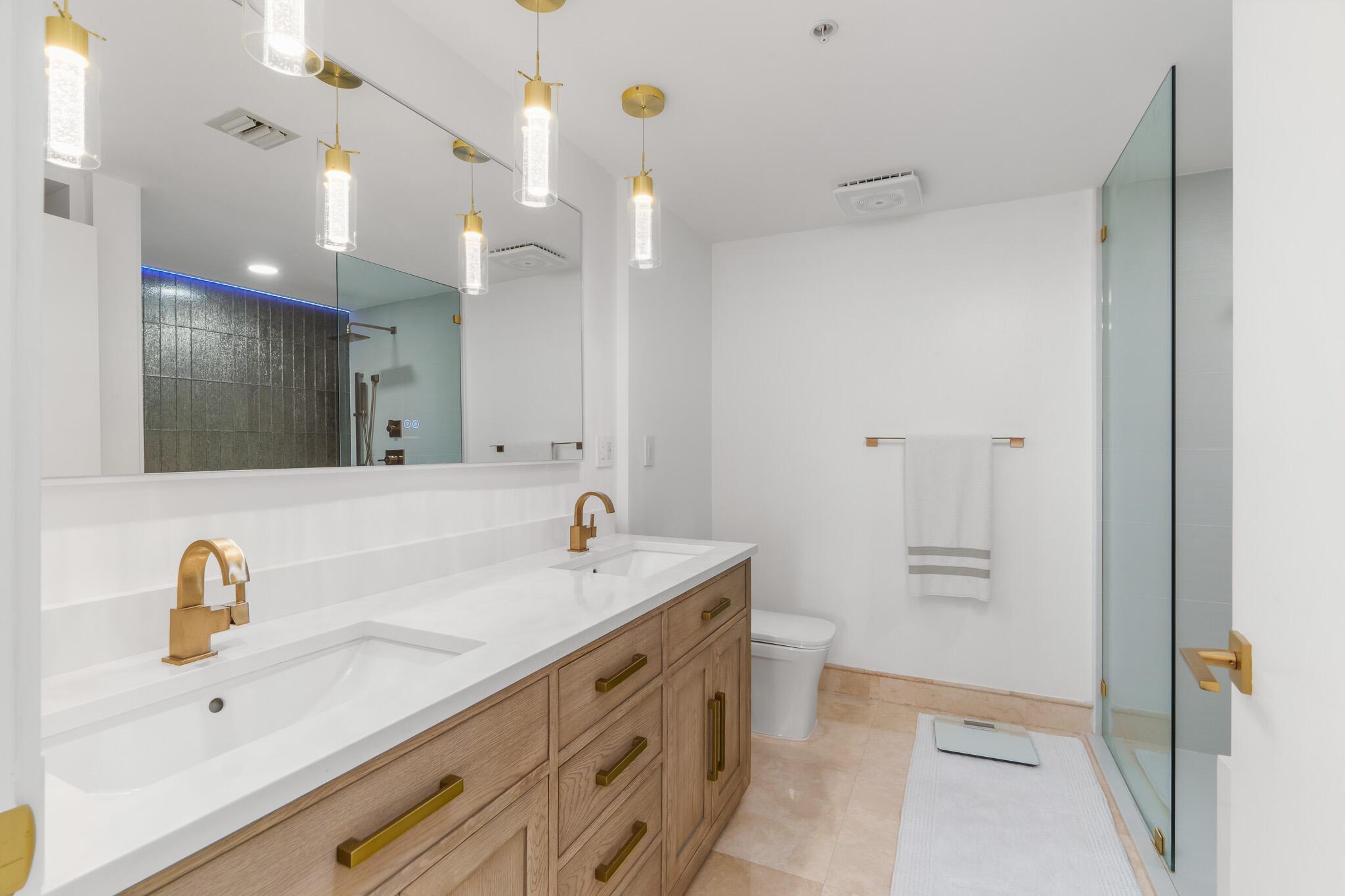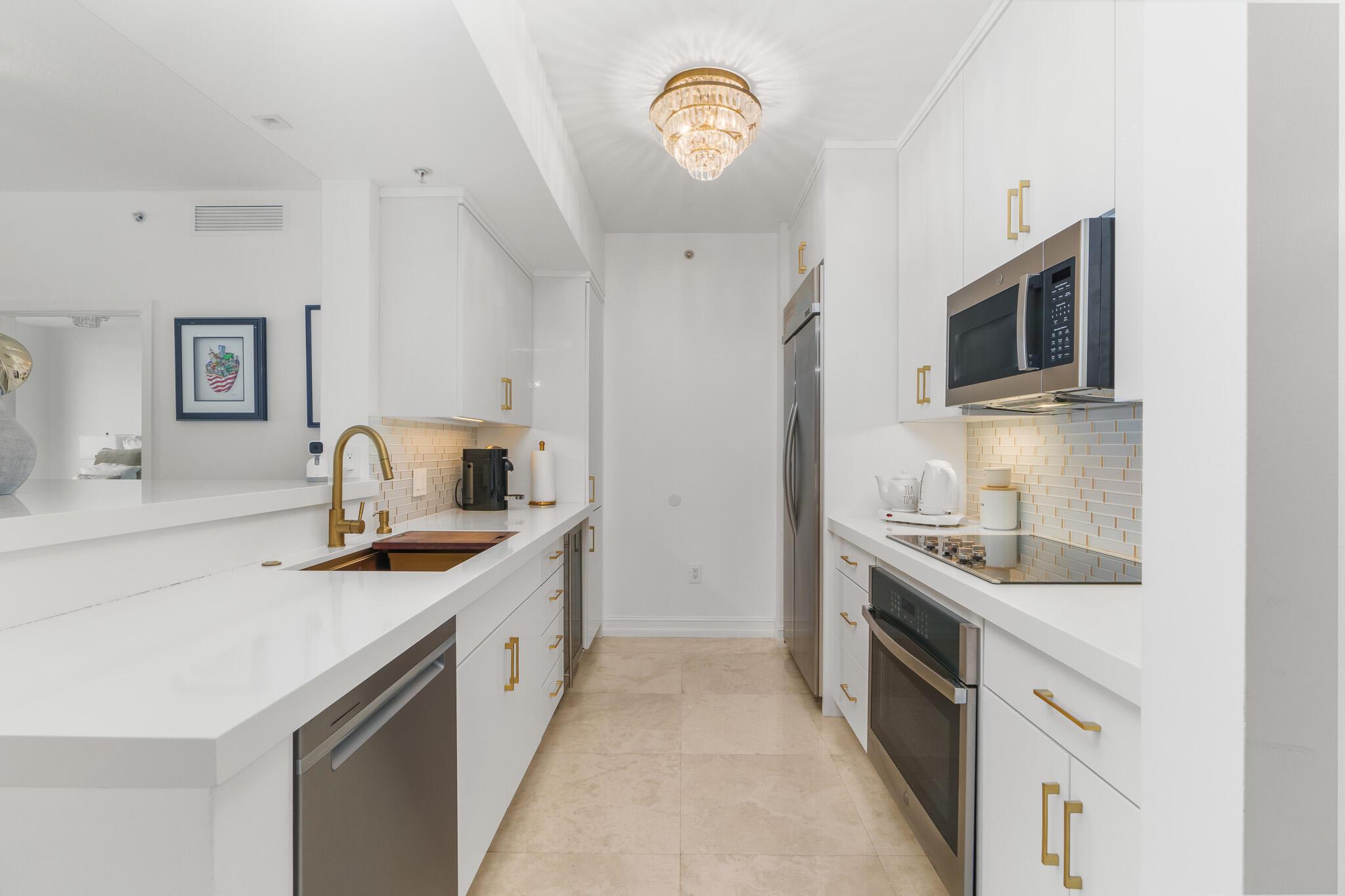 Exquisite 2-bed, 2-bath condo FOR RENT SHORT OR LONG TERM in the prestigious Cityplace South Tower meticulously renovated to perfection! This stunning residence features a dream kitchen boasting quartz countertops, custom cabinets, new appliances, an extended island with a seating area, and mood LED lighting underneath. The elegance continues with travertine floors, high molding throughout, and beautifully remodeled bathrooms showcasing gorgeous showers and Restoration Hardware vanities. Both bedrooms and living area feature crystal chandeliers. The attention to detail is unparalleled, with a built-in custom bar, custom recessed lighting, and brass fixtures adding a touch of luxury. The unit is delivered fully furnished with Restoration Hardware furniture and also boasts 2 parking spaces.