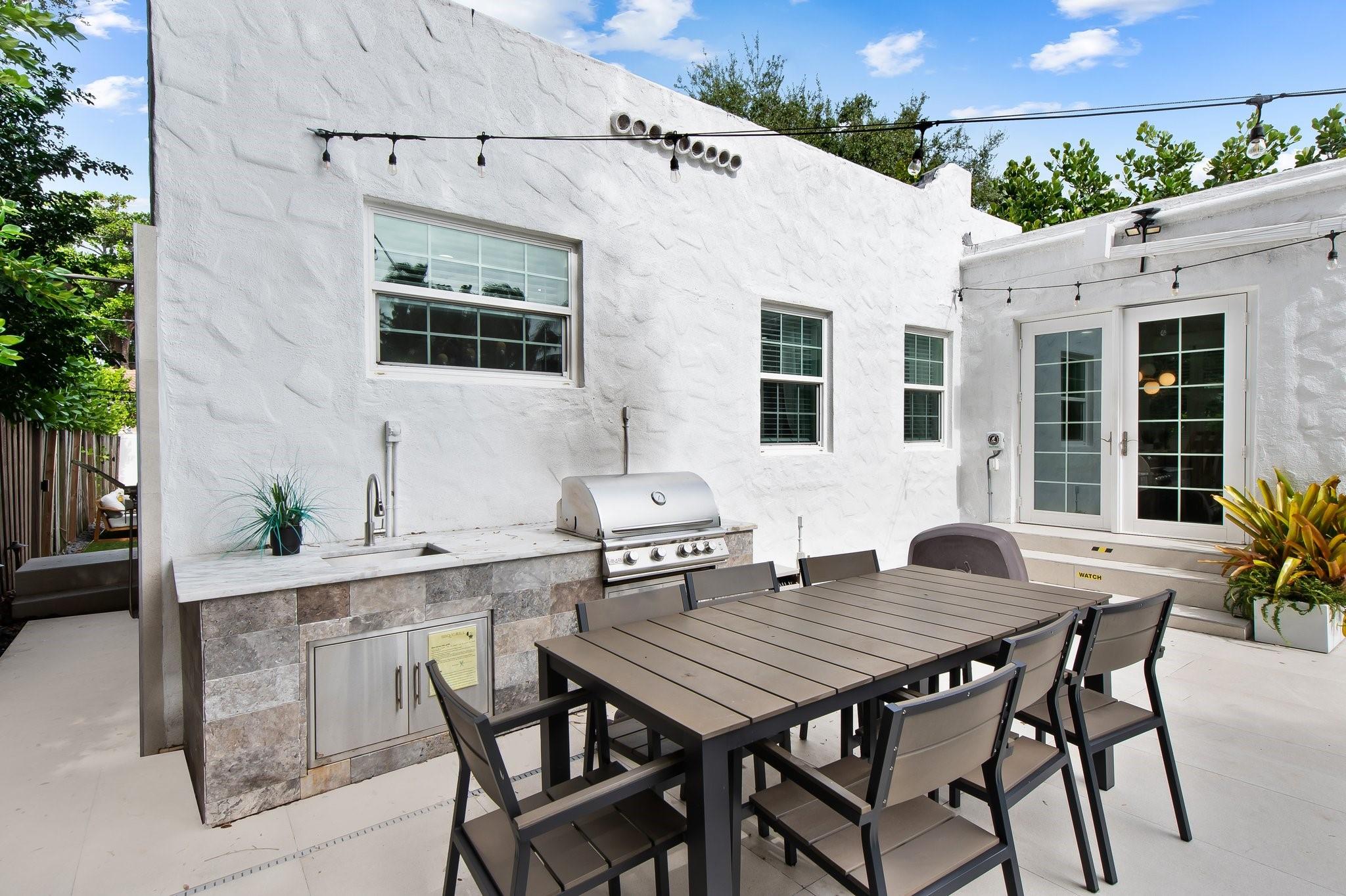 Experience elevated living in this beautifully updated 4-bedroom home, available for rent in the heart of Rio Vista. Perfectly positioned on a prime street, this charming yet modern residence is now offered fully furnished at $9,000/month, all utilities included. Step into a thoughtfully designed interior featuring a chef-inspired kitchen with Quartz countertops and high-end Viking appliances—perfect for entertaining or everyday luxury. Hurricane impact windows throughout the home provide added safety and peace of mind. Outside, enjoy your own private backyard retreat with a south-facing pool that captures sunlight all day ideal for relaxing, entertaining, or family fun. Whether you're looking for a short-term escape or a longer stay, this turnkey Rio Vista gem is ready to welcome you.