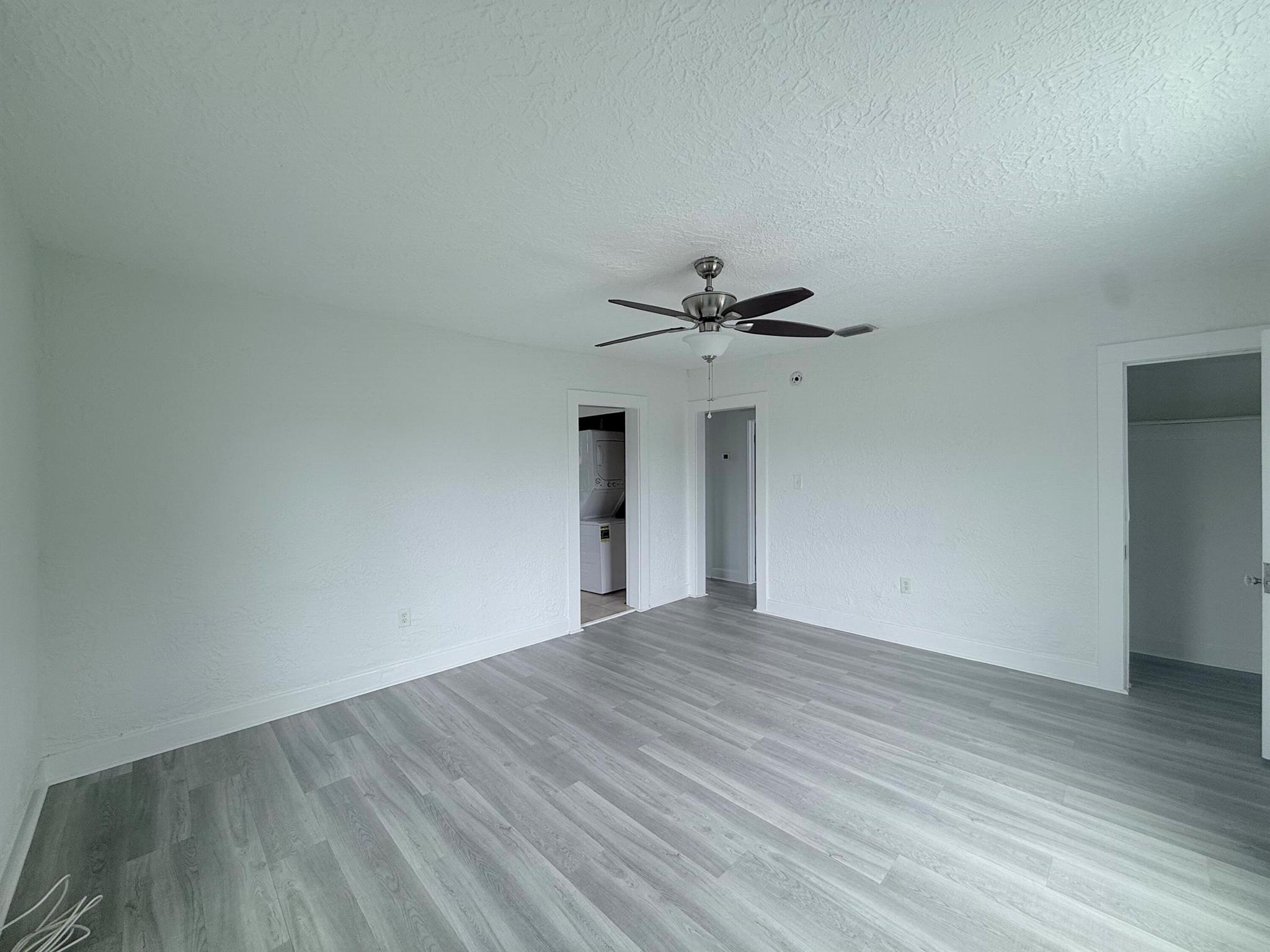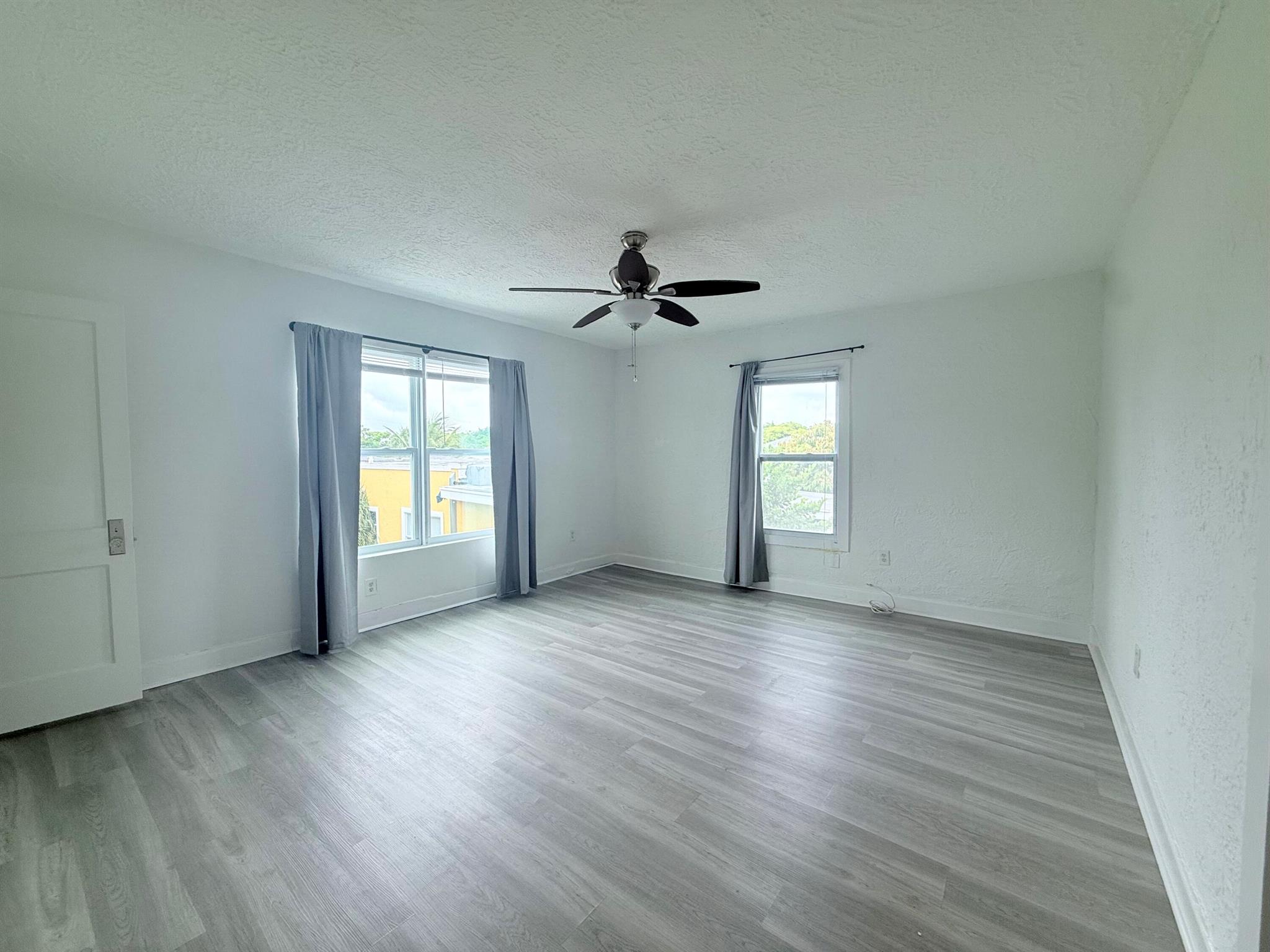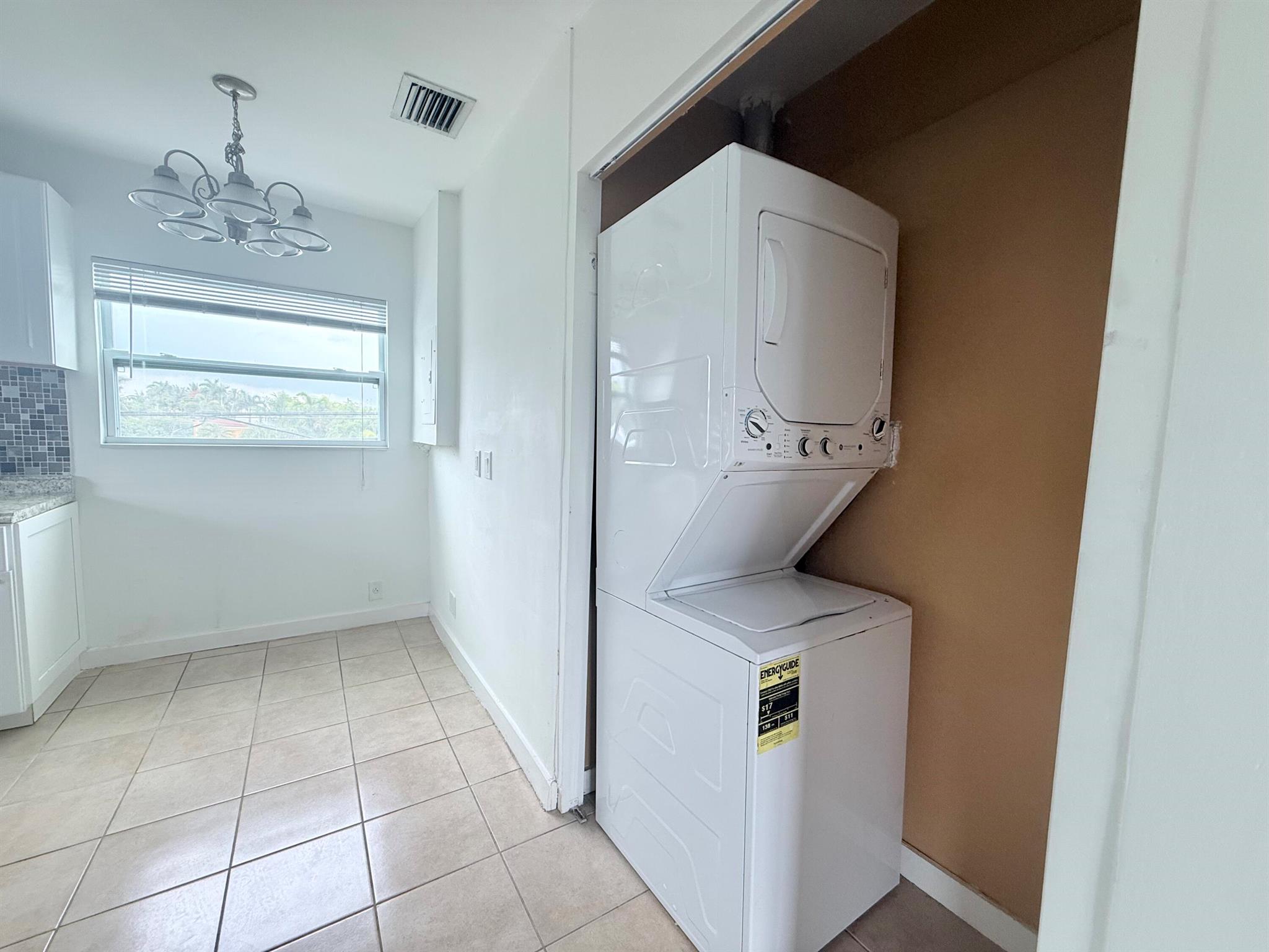 2 Bedroom, 1 bath second floor unit in a triplex with no carpet! Ready for move-in. Enjoy renovated bathroom with walk-in shower, stainless steel appliances in the kitchen, in-unit washer/dryer. Designated parking spot in the private driveway and plenty of street parking. Conveniently located near I-95 and downtown West Palm Beach. Water, sewer, and trash is included.