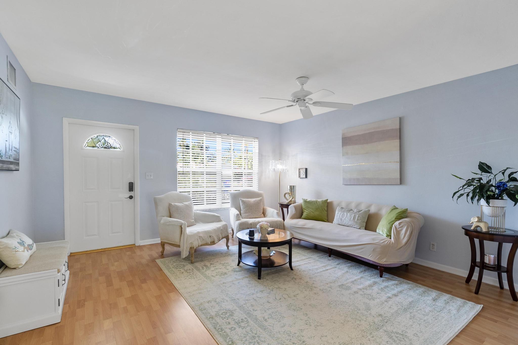 Great 2 BD / 1 BA unit part of Corner lot Duplex. Furnished (some furniture in the photos will be different). Unit is spacious with lots of light, private screened in patio, central AC and private laundry room with additional storage. Property features plenty of parking, short distance to Beach, Parks, Golf, Gym, Bars, Restaurants, Grocery stores; Whole Foods and Publix. **owner will consider short term rentals - 6+ months**