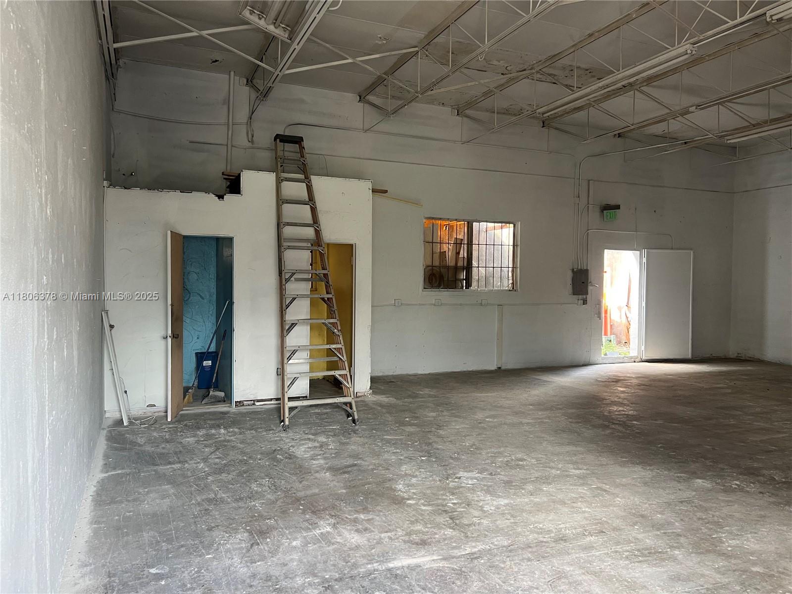 Great opportunity! Discover an exceptional industrial space in the heart of the vibrant Leah Arts District. The warehouse is equipped with a roll-up door. This 1,200-square-foot warehouse features high ceilings and an open-concept layout, with three entrances that provide flexible access and functionality. It is designed for efficiency and convenience and is suitable for storage, distribution, or light manufacturing. The expansive floor plan has a high clearance, allowing for tall racking or equipment. Durable concrete flooring and steel structure make it ideal for heavy-duty use. The property also includes one private bathroom and an outdoor storage area for additional space. The building is in the heart of Hialeah, directly across from the famous shopping center, Flamingo Plaza.