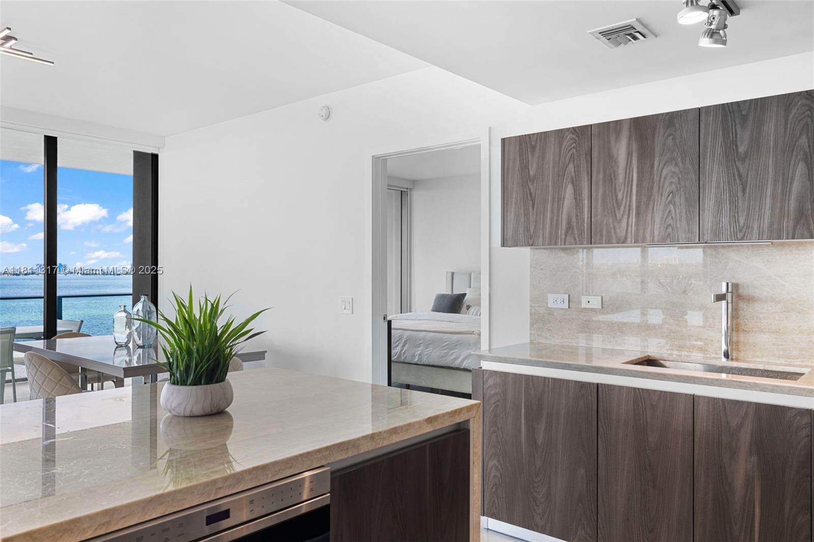 Furnished spacious corner unit with 3 beds, 3.5 baths, private elevator foyer, floor to ceiling windows unobstructed views of Biscayne Bay, Italian porcelain floors, Subzero and Wolf appliances. 1,634 sq ft. of interior space and 454 sq ft. terrace. One Paraiso offers a ground level adult pool with food service from Amara by Michael Schwartz. On the 8th and the 9th levels: 2 pools, hot tubs, cabanas, BBQ area, 2 Tennis courts, Gym, Spa, massage rooms, party rooms, screening room, business center, child-play room and billiard room.
