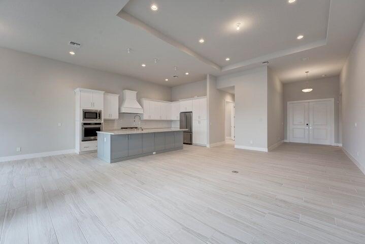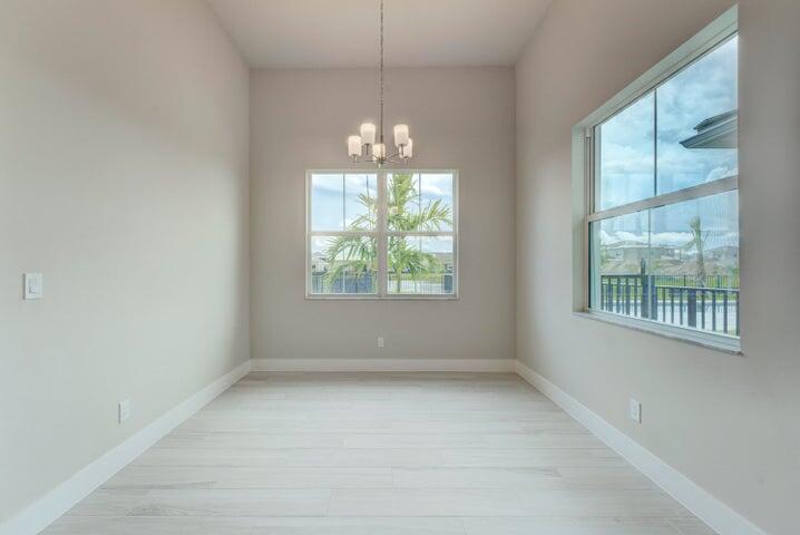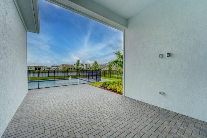 4/3/2 with water pool. 4th bedroom is a den. The Sabrina's welcoming covered entry and foyer flow into an inviting hallway with 12' ceilings revealing a bright and open floor plan has 3 bedrooms with Den. The well-designed expanded kitchen features a large center island with breakfast bar, plenty of counter and cabinet space and pantry. The expansive primary bedroom suite is highlighted by dual walk-in closets and deluxe primary bath with soaking tub and separate shower and private water closet. The large great room with expansive sliders to rear covered lanai overlooking the pool and area.