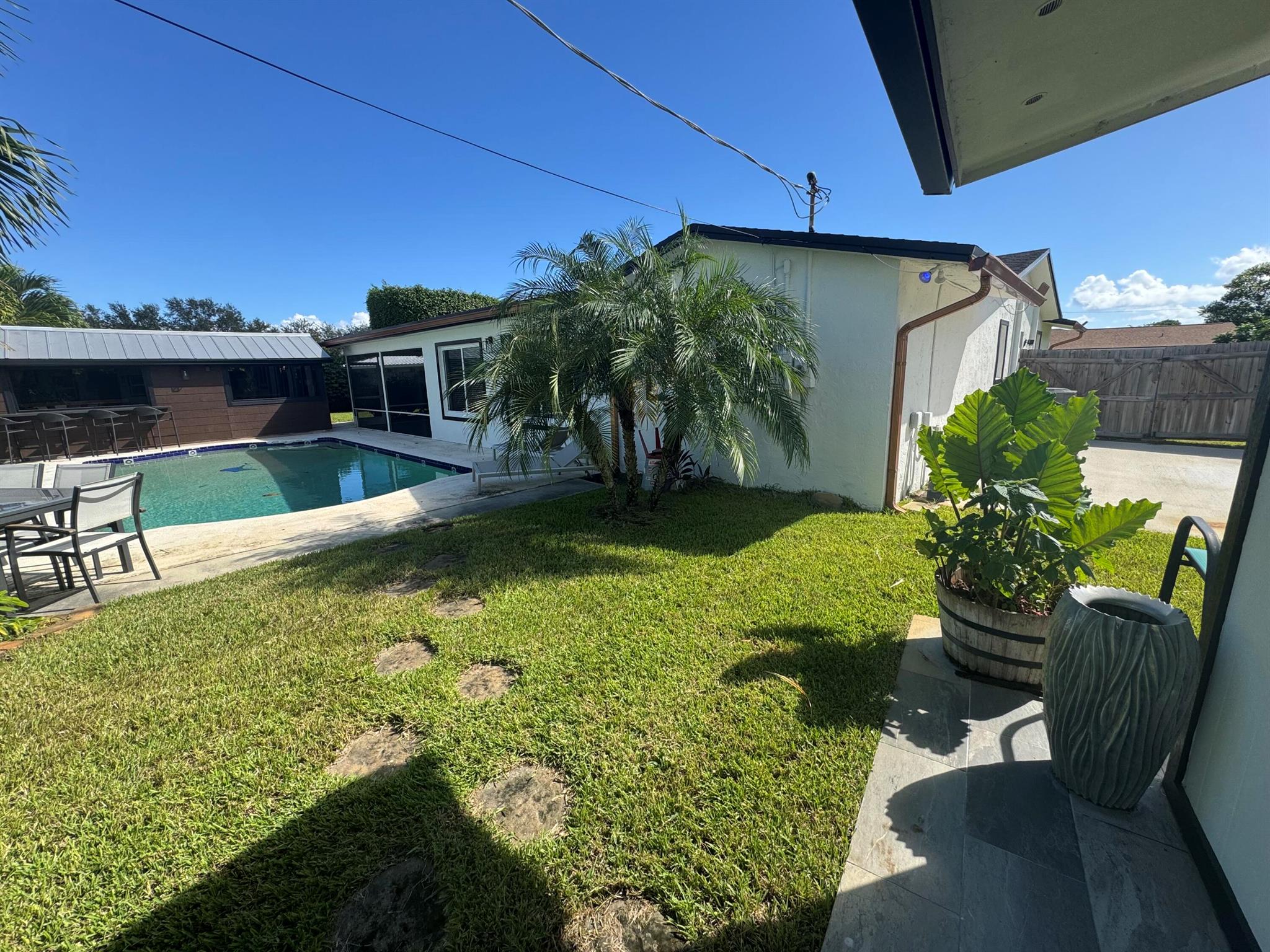 Bring your boat, RV, trailer, golf cart, pool floats and drink with an umbrella in it because you're never going to want to leave this property! The main house features 3 bedrooms, 2 bath, living room AND family room, and a 2 car garage (with A/C). Step outback to relax in the screened in patio (equipped with a Flat screen) while enjoying the maintained pool and yard (included in monthly rent). If you aren't feeling outdoorsy, grab a refreshing beverage from the stand alone, fully furnished Bar that even has a restroom for guests to use. Last but not least, check out the other detached building which you can use as an office/guest room/game room, the choice is yours! 2 pet maximum ($350 for 1, $500 for 2). Renters Insurance required. Included: pool&lawnmaintenance