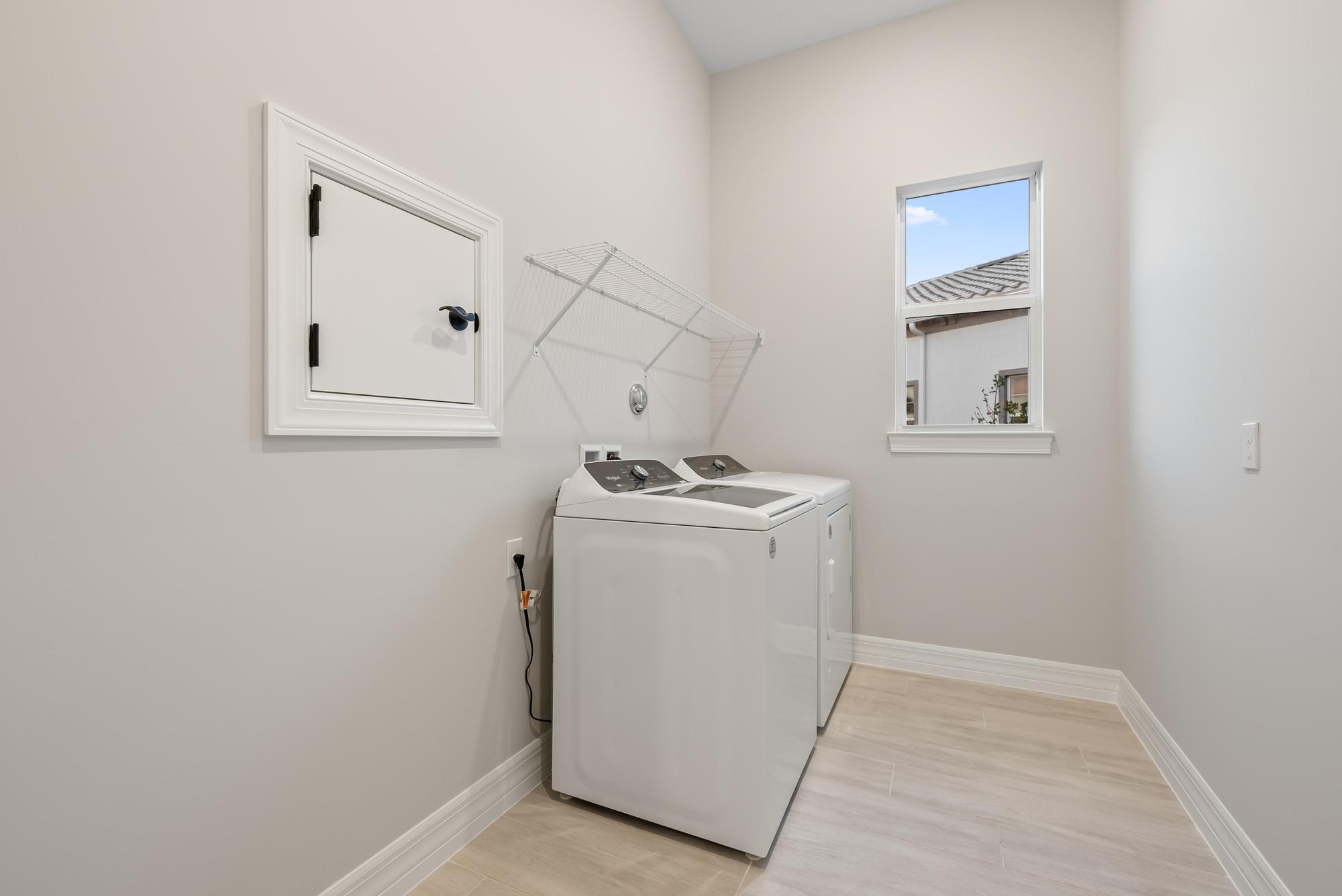 EXQUISITE, brand-new, never-been-lived-in single-family 3-bedroom, 2.5-bathroom home located in the highly sought-after gated community of Avondale at Avenir in Palm Beach Gardens. Built in 2024 by DiVosta, this stunning residence offers over 2,000 square feet of living space, featuring a premium $150,000 lot with scenic lake and fountain views, a desirable open-concept floor plan, soaring ceilings, impact windows, and a state-of-the-art kitchen with top-tier finishes. With $150,000 in luxurious upgrades throughout, this home is the epitome of contemporary living and design. Upon entering, you'll be greeted by tile flooring throughout and LED lighting, enhancing the home's modern aesthetic. The spacious living area flows seamlessly into the chef's kitchen,