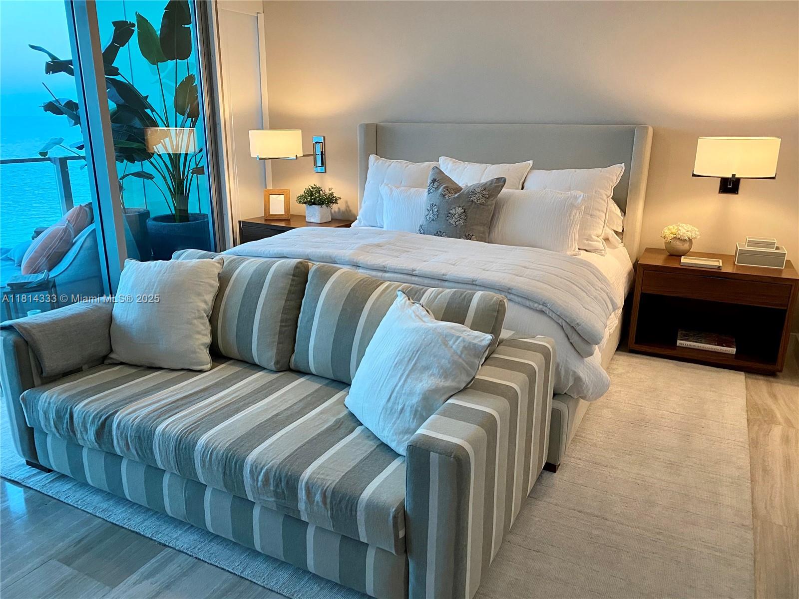 Oceanfront luxury condo at Oceana Key Biscayne with direct beach views from a spacious terrace. All about outdoor lifestyle. One of Miami’s premier waterfront residences, featuring 3 bedrooms, 3.5 bathrooms, and a private elevator entry into a custom-designed foyer. Resort-style amenities include lap and recreational pools, tennis courts, a full-service gym, yoga studio, spa, restaurant, kids’ playroom, sand volleyball, and concierge; Resort style amenities. Fully furnished and move-in ready. Available from December through March. Live the ultimate Miami beachfront lifestyle.