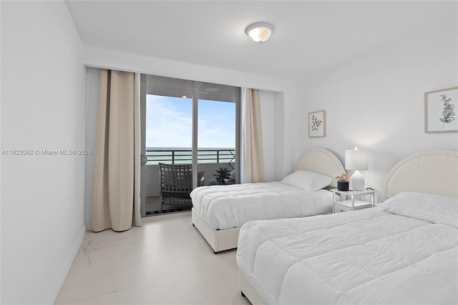 Experience luxury beachfront living at Oceanside Plaza. This fully renovated, furnished 2BD/2BA on the 6th floor of the Morris Lapidus-designed building offers unobstructed ocean views from every room and an expansive terrace for seamless indoor-outdoor living. Features include a split-bedroom layout, sleek porcelain floors, renovated baths, and hurricane-impact windows. Turn-key and move-in ready. Amenities: direct beach access w/service, PH & mezzanine gyms, sauna, valet, 24-hr security, concierge, onsite restaurant, bike & storage rooms. Upcoming: pool, jacuzzi, pickleball, racquetball & basketball courts.