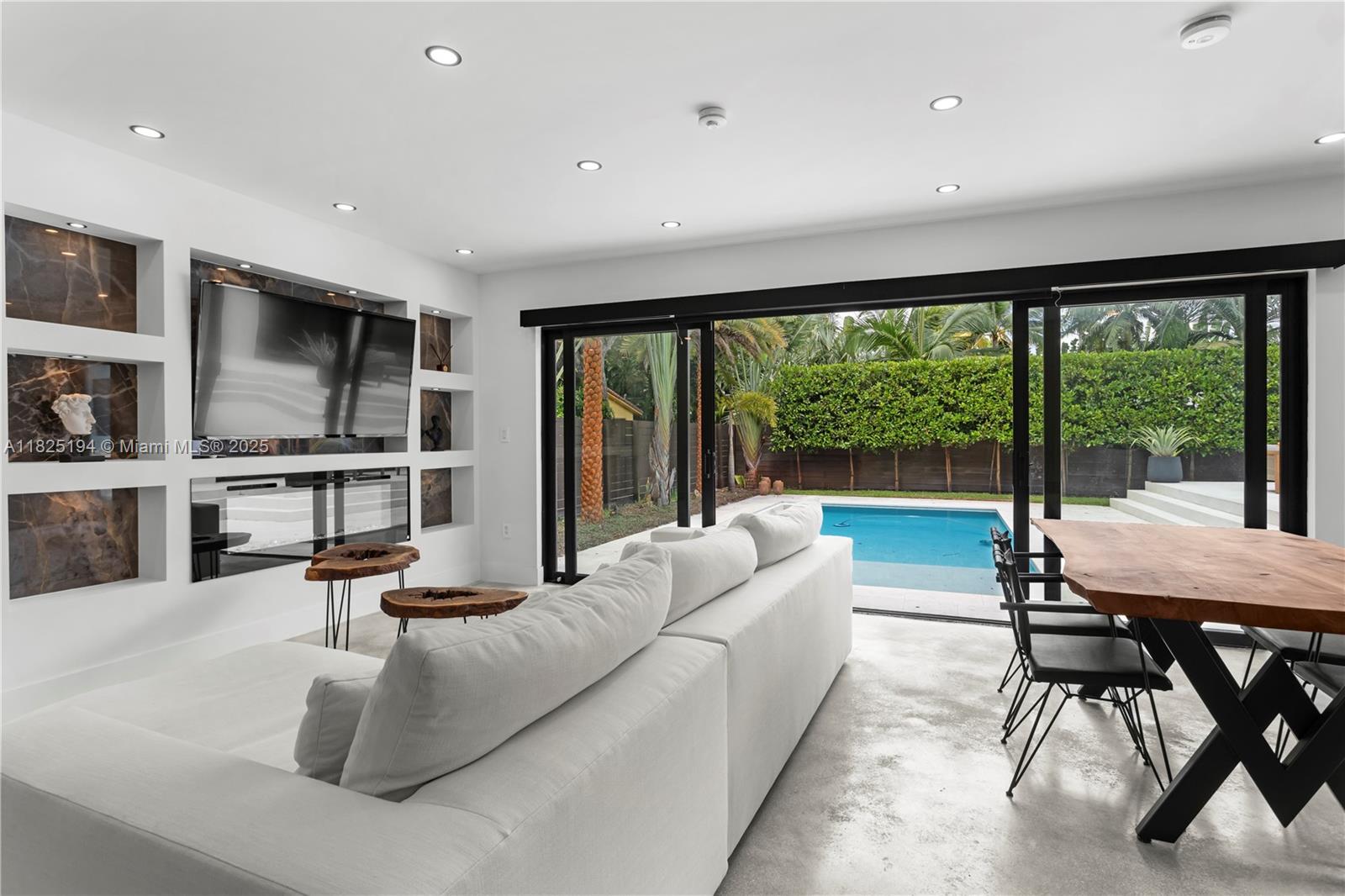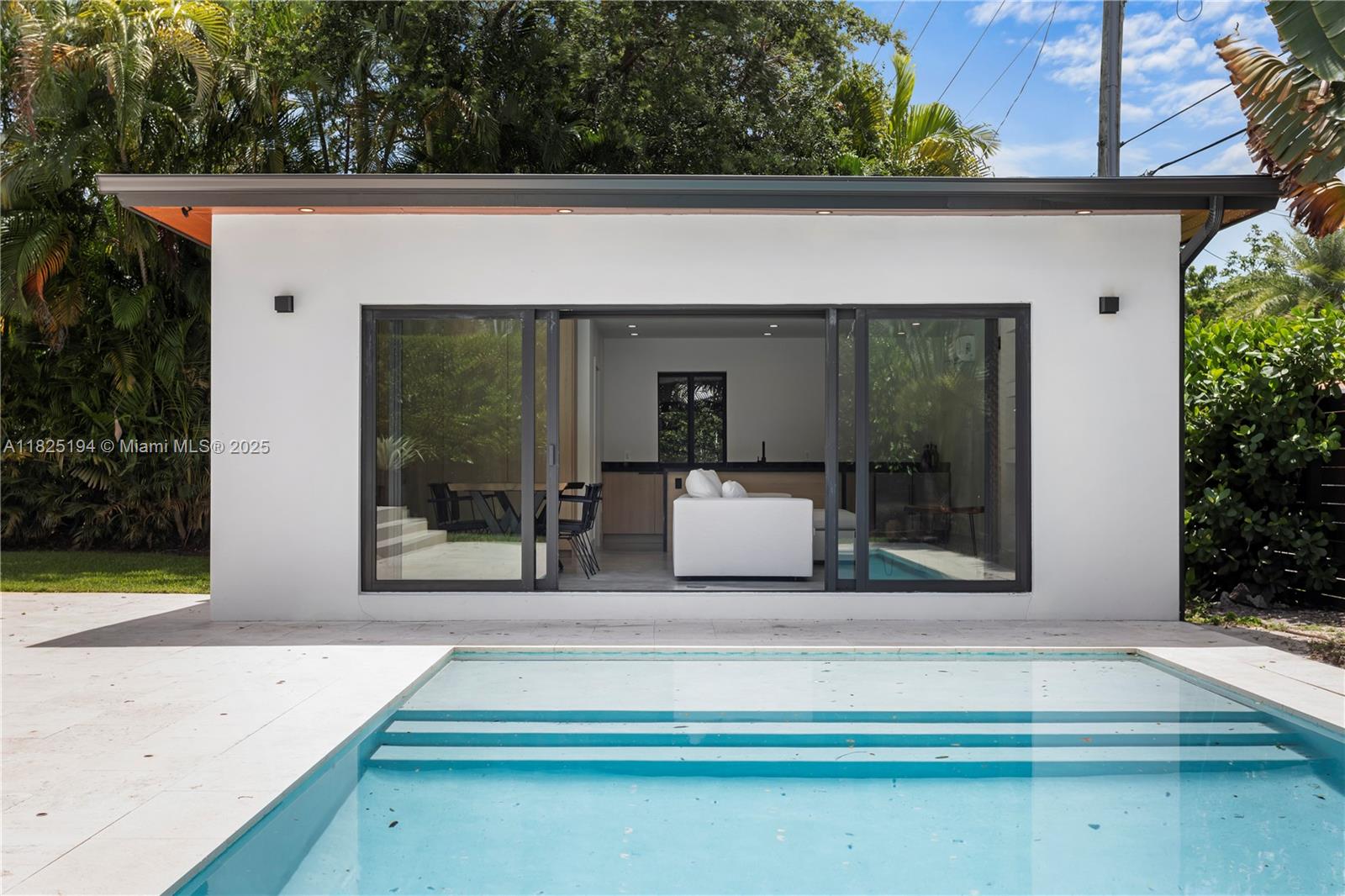 Discover Villa Paradise, a luxuriously updated 4-bedroom, 4-bath residence in Miami Shores'. This fully smart home is tastefully furnished with Jonathan Adler pieces, blending modern convenience with elegant design. Enjoy a spacious 2,661 sq ft layout featuring a gourmet kitchen, designer fireplace, and a converted bedroom boasting a custom walk-in closet. The detached pool cabana guest house offers privacy with its own amenities, perfect for guests or as an office. From the luxurious furnishings to the smart home features, Villa Paradise epitomizes sophisticated living in a secure, non-flood zone of Miami Shores.