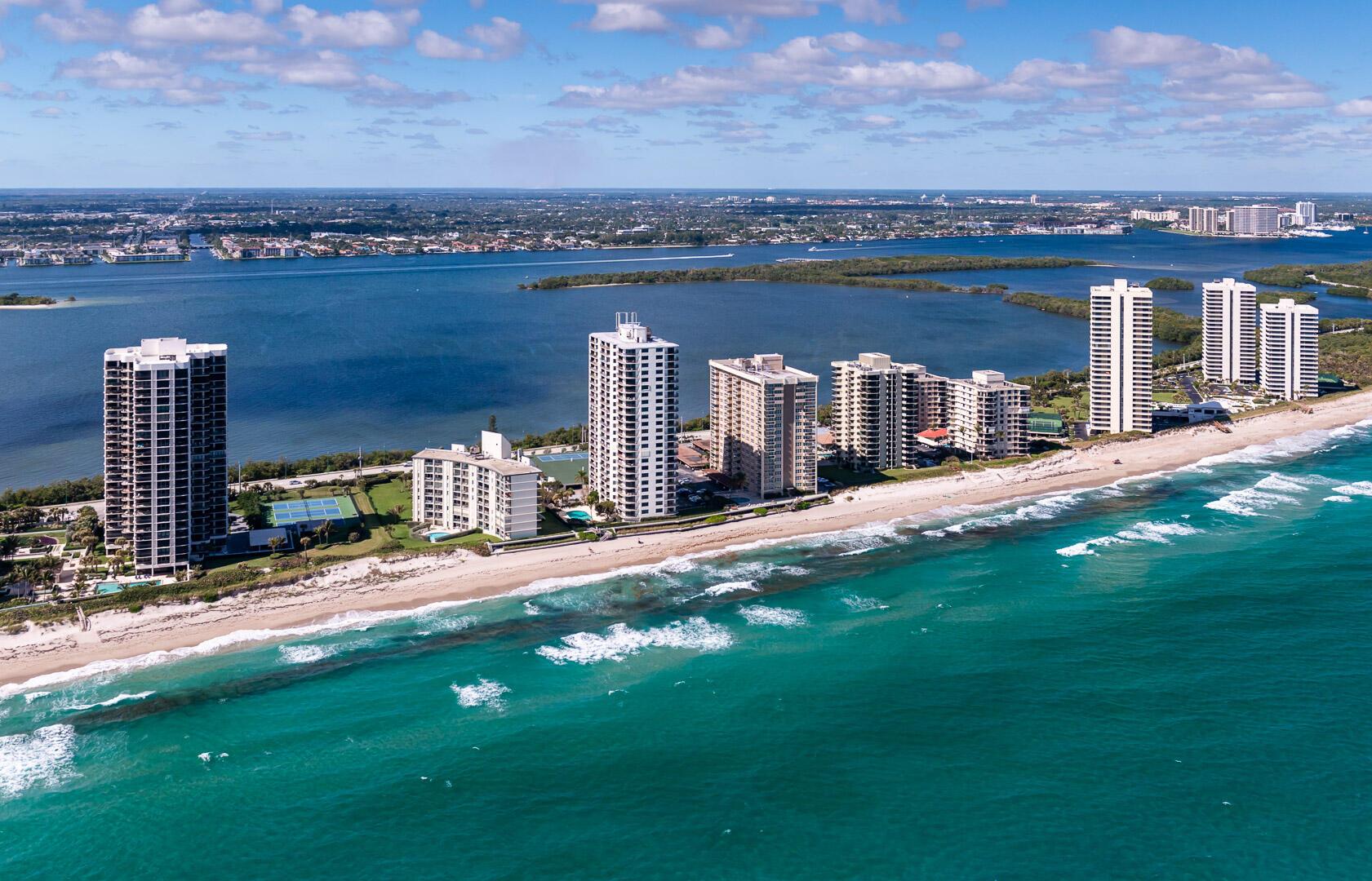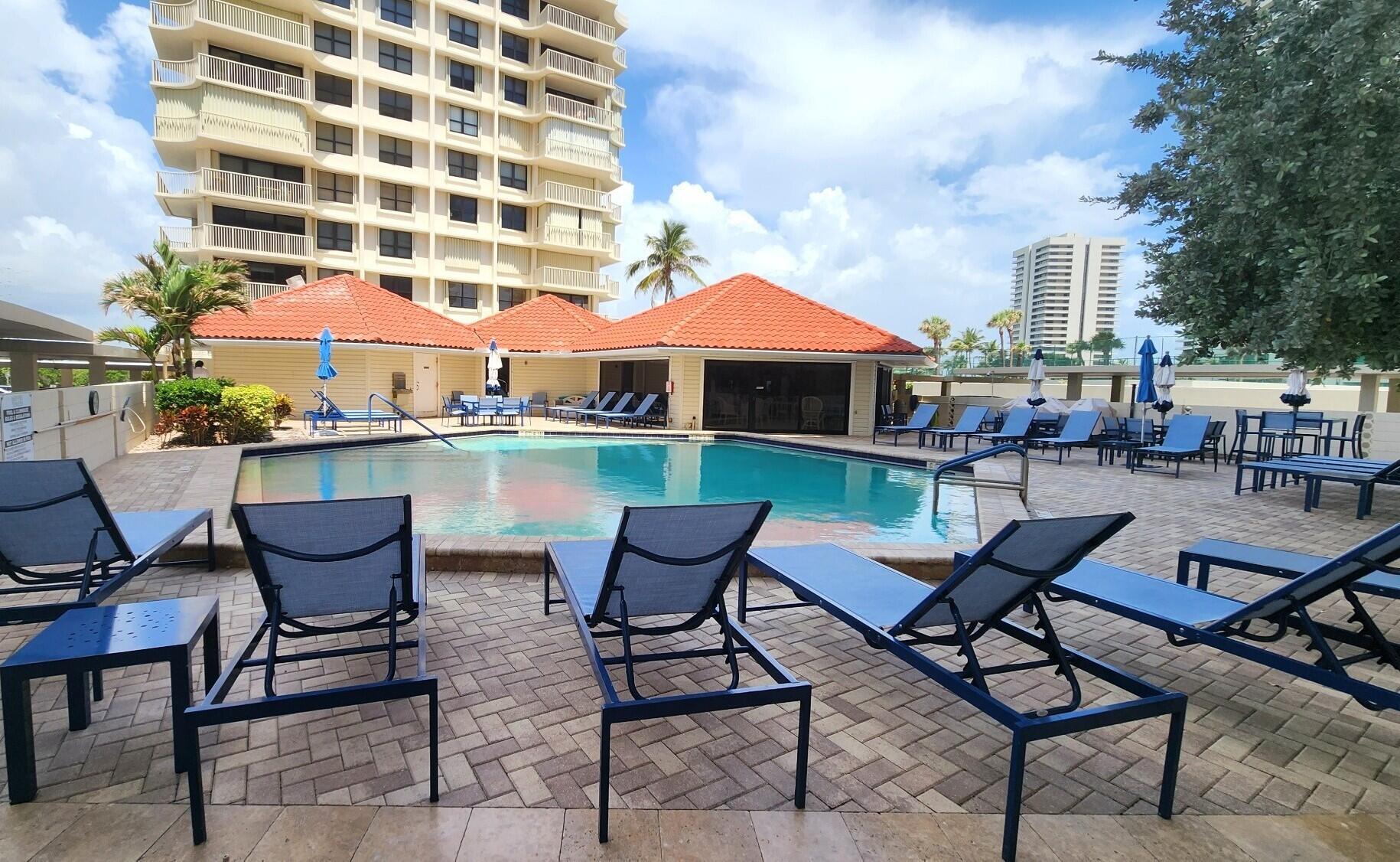 Lovely Season 2026 5th floor corner unit w panoramic Intracoastal & sunset views, & the reflection of city lights across the wide waterway. Monthly cleaning service included. ABSOLUTELY NO SMOKING ANYWHERE. This remodeled condo includes a split BR floor plan, updated kitchen w/granite countertop, stainless steel appliances, double door refrigerator & custom cabinetry. Electric shades. Both bedrooms have adjustable bed, walk-in closet, tv, & water view. Separate dining area with great views. 2 parking spaces - B5C covered & #29 open assigned. Shared free laundry on each floor, adjacent to unit. Amenities include a heated pool between 2 Towers, residents clubhouse w/party catering facilities, sauna, fitness area + BBQ's. Enjoy direct beach access thru private beach walkover.