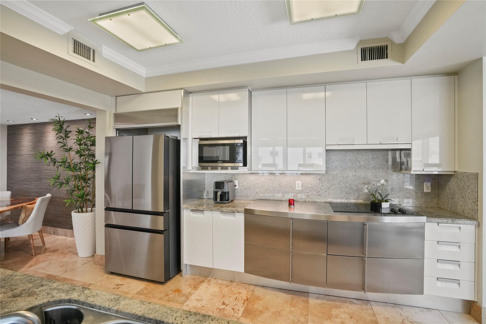 2 PARKING SPACES. PET FRIENDLY. Contemporary-chic corner unit at La Rive, fully furnished and unfurnished for your convenience. Floor-to-ceiling windows and partial Intracoastal views. The spacious wraparound terrace offers west and east exposure, perfect for enjoying morning coffee or sunset cocktails. Modern kitchen with high-gloss cabinetry, Dacor appliances, and double ovens. Main suite features private balcony, 2 walk-in closets, and a spa-style bath with large jacuzzi tub. Two guest rooms with en-suite baths provide comfort and privacy. Boutique building offers 24/7 security, semi-private elevator, garage parking, renovated pool deck, gym, steam room, sauna, BBQ area, and more. Just a short walk to Fort Lauderdale’s quiet beach, restaurants, and Bonnet Gardens.