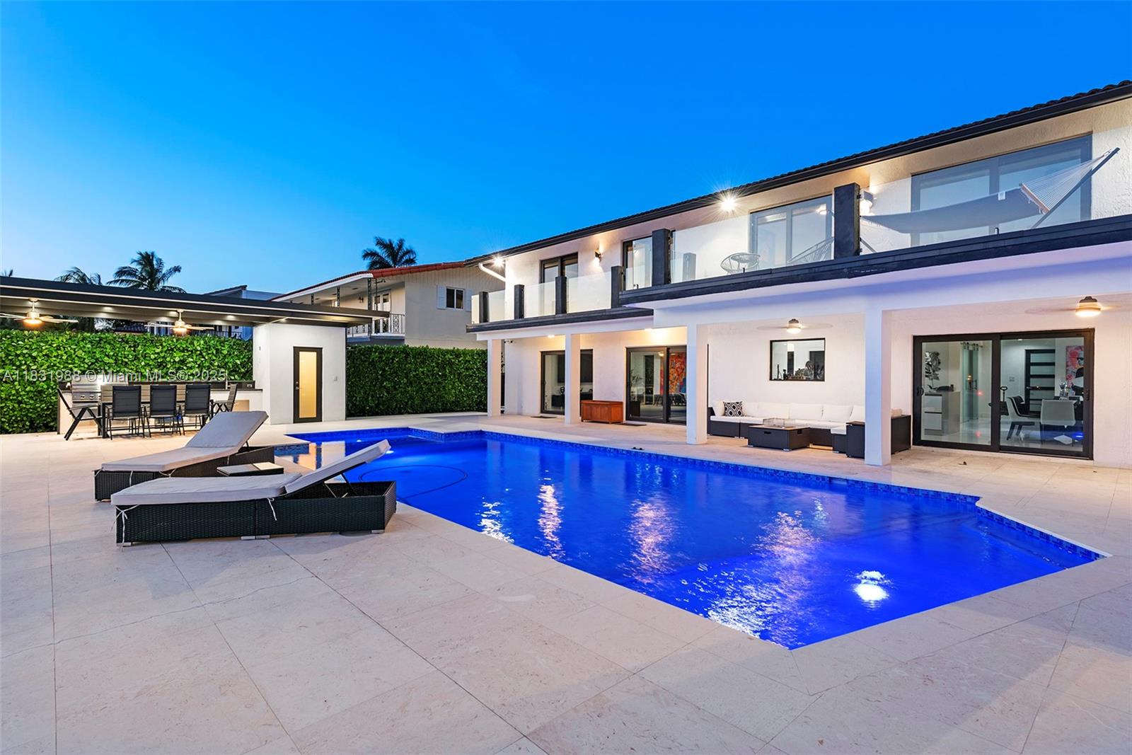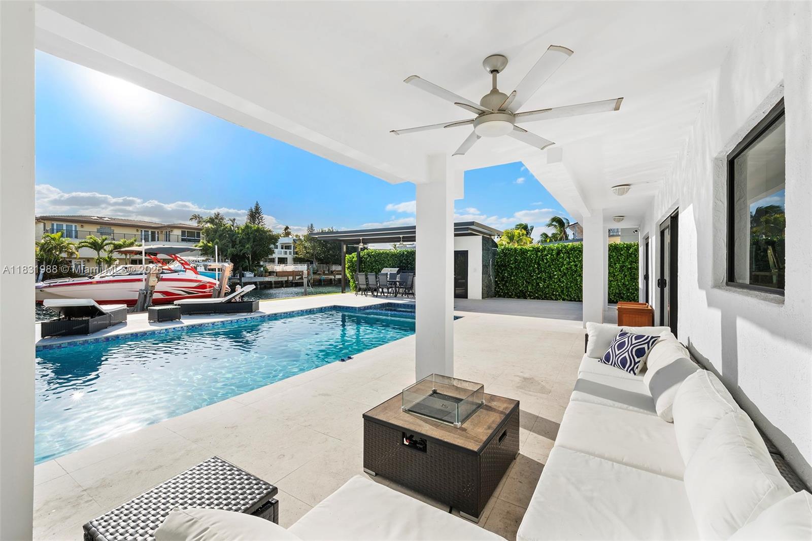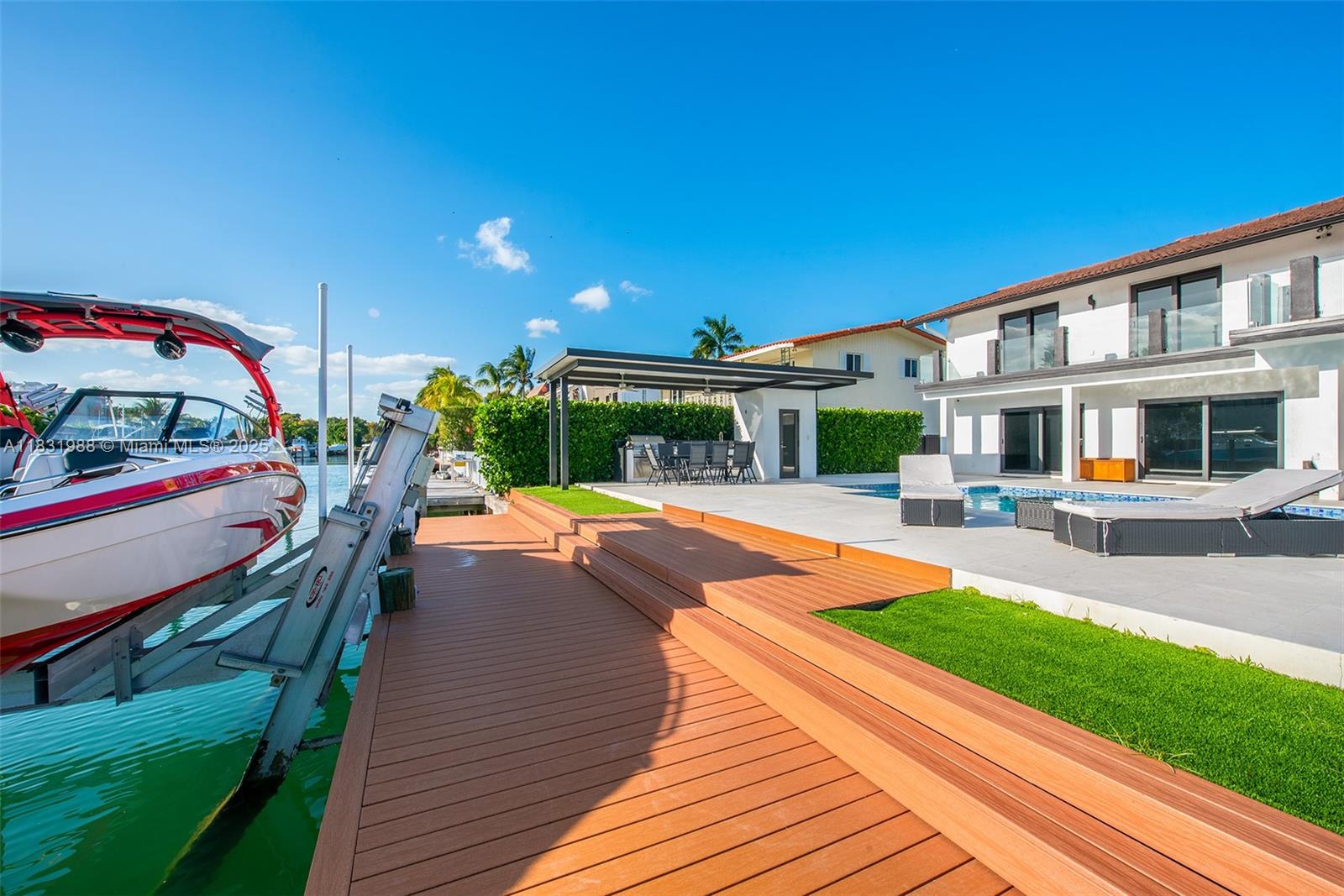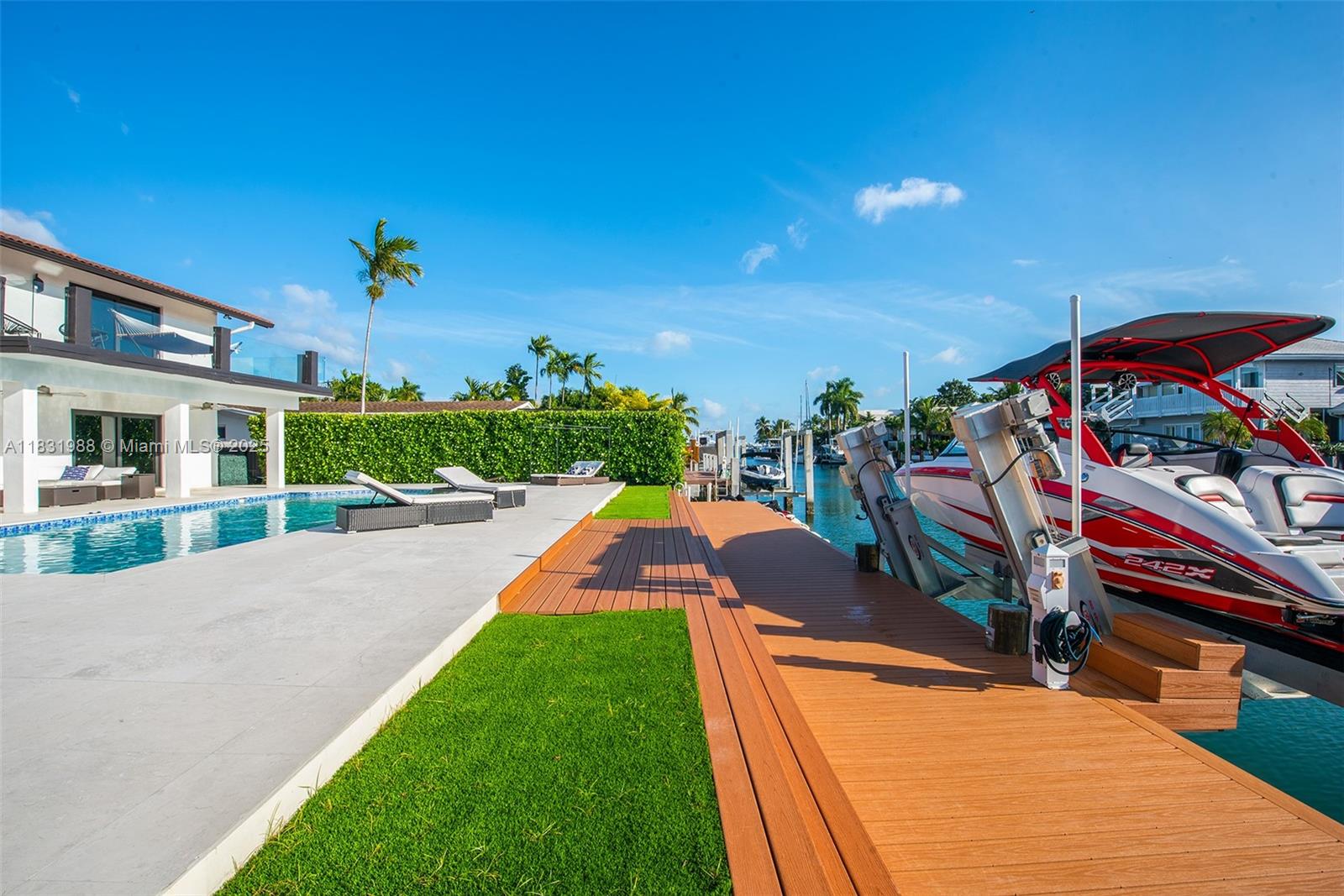 Welcome to this exquisitely 4 beds, 5 baths waterfront. Step inside to an open floor plan with water views from every room. The chef’s kitchen featuring a large island, custom cabinetry, and top-of-the-line Miele appliances. Porcelain/travertine floors add a touch of timeless throughout the home. The primary suite is a private retreat with its own terrace overlooking the pool and canal. The master bath includes dual vanities, double rainfall showers, and a Jacuzzi tub perfect for unwinding in luxury. Step outside to your own backyard paradise. Enjoy a covered outdoor kitchen, heated pool with spa, and 75 ft of waterfront and Jet Ski dock, just minutes to open bay. Extras: Tesla charger, 2-car garage, San Souci offers 24/7 gated security with on-site police presence.
