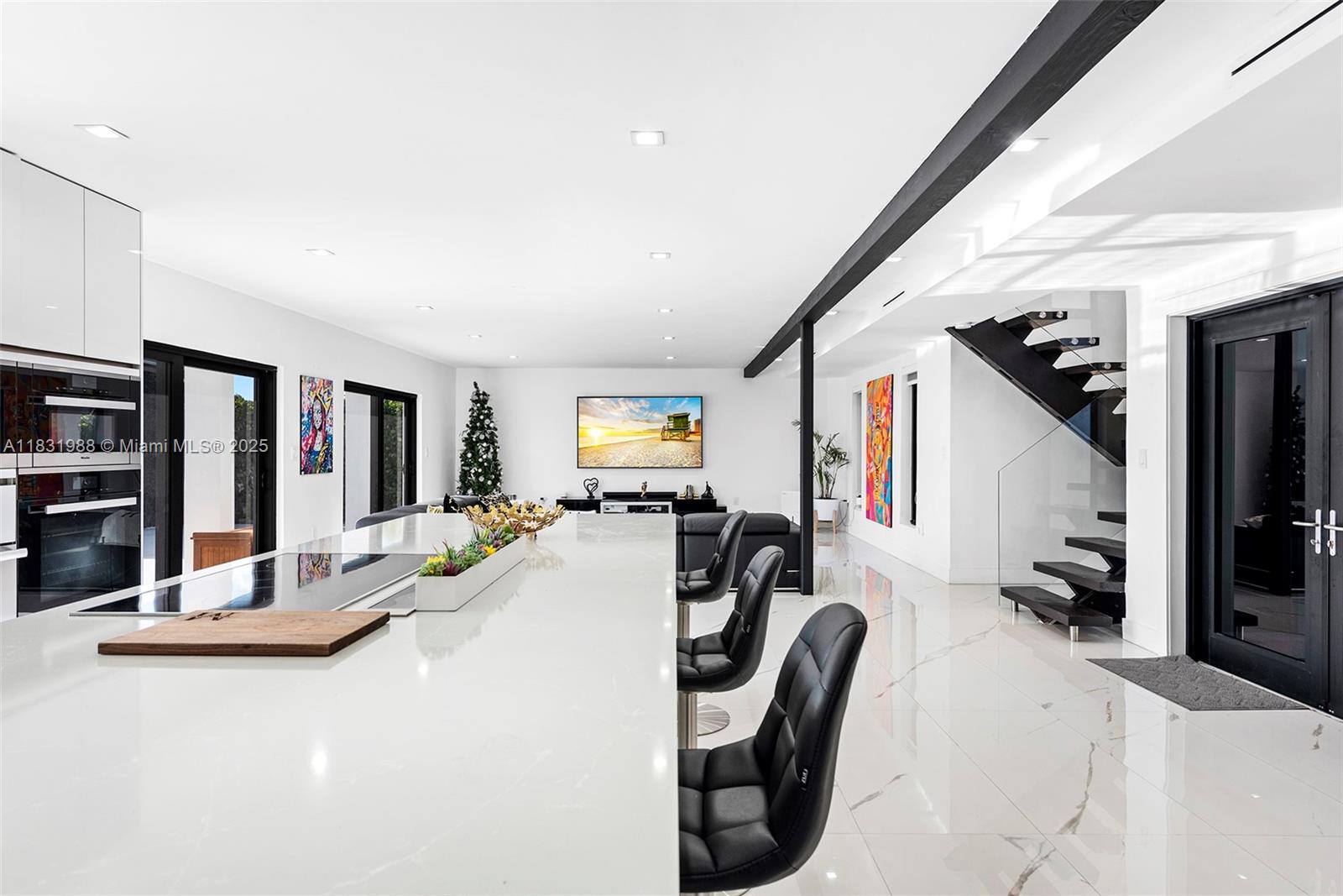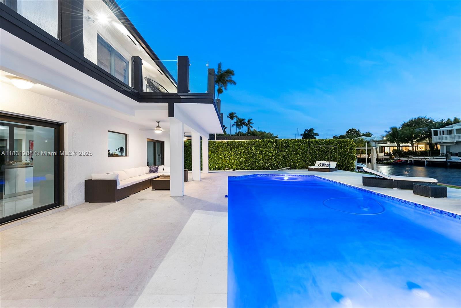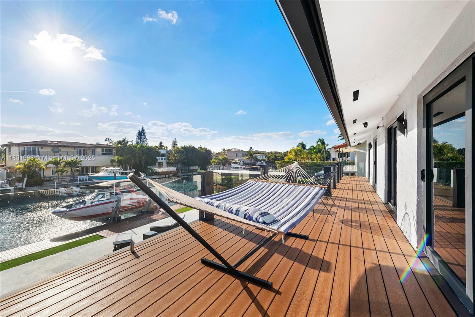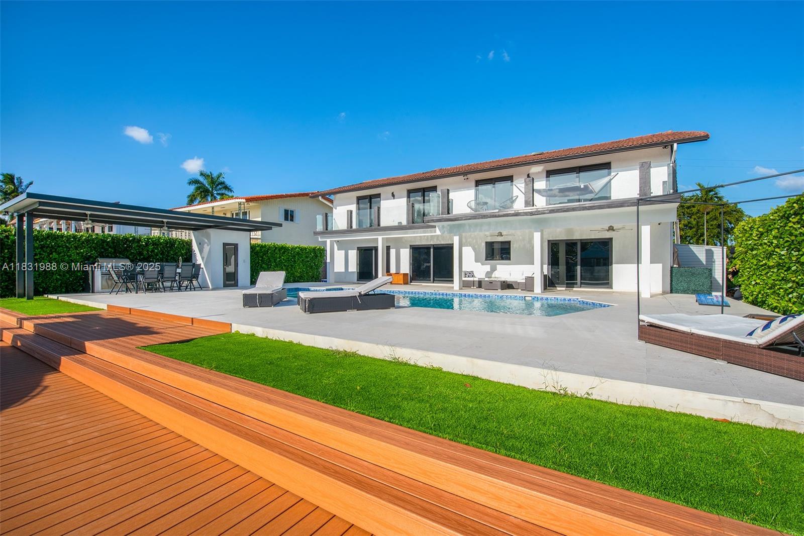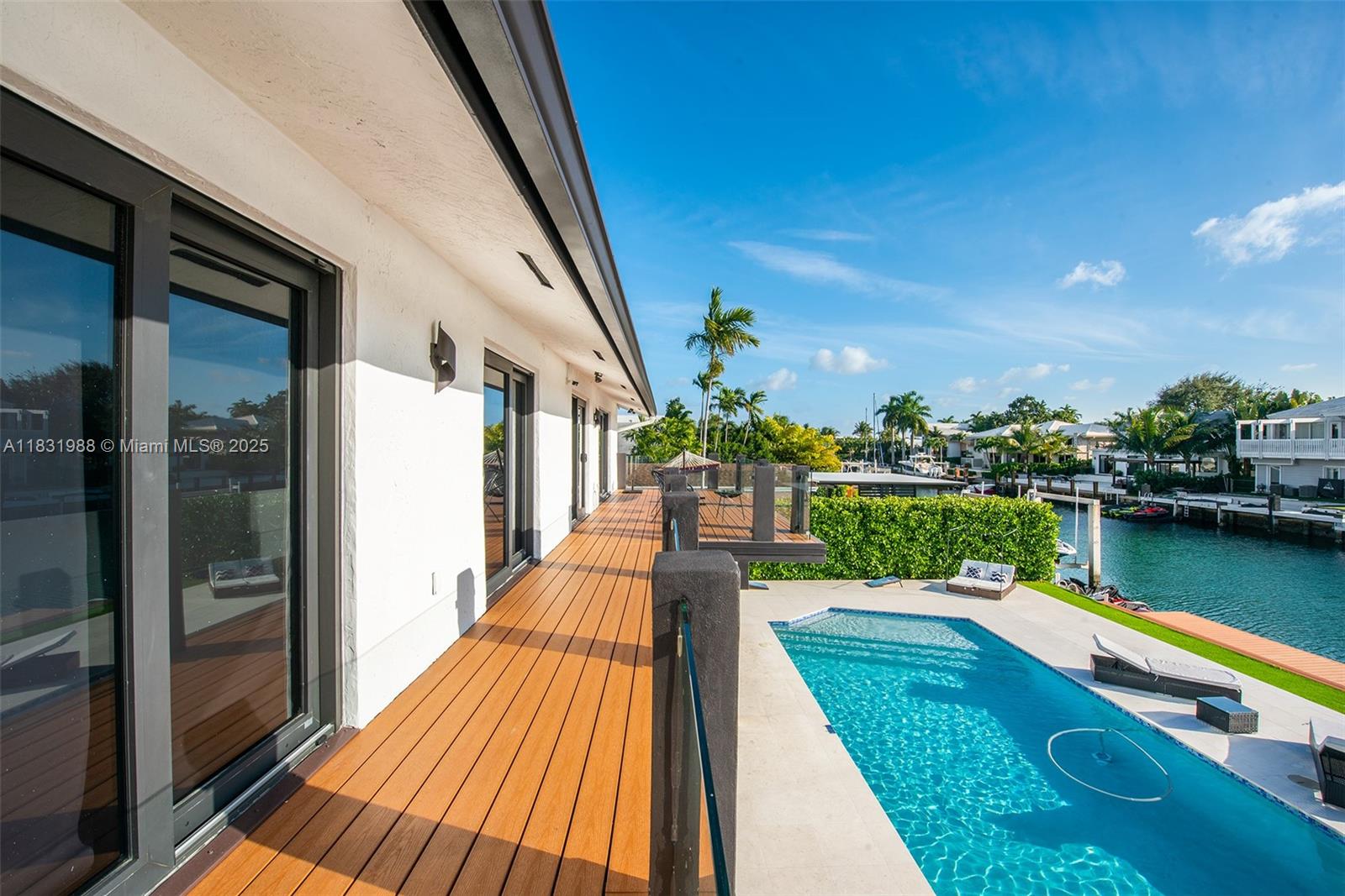 Welcome to this exquisitely 4 beds, 5 baths waterfront. Step inside to an open floor plan with water views from every room. The chef’s kitchen featuring a large island, custom cabinetry, and top-of-the-line Miele appliances. Porcelain/travertine floors add a touch of timeless throughout the home. The primary suite is a private retreat with its own terrace overlooking the pool and canal. The master bath includes dual vanities, double rainfall showers, and a Jacuzzi tub perfect for unwinding in luxury. Step outside to your own backyard paradise. Enjoy a covered outdoor kitchen, heated pool with spa, and 75 ft of waterfront and Jet Ski dock, just minutes to open bay. Extras: Tesla charger, 2-car garage, San Souci offers 24/7 gated security with on-site police presence.