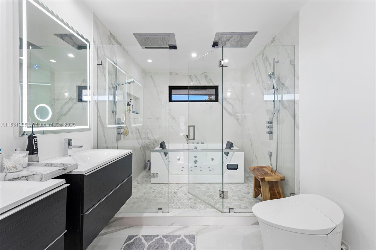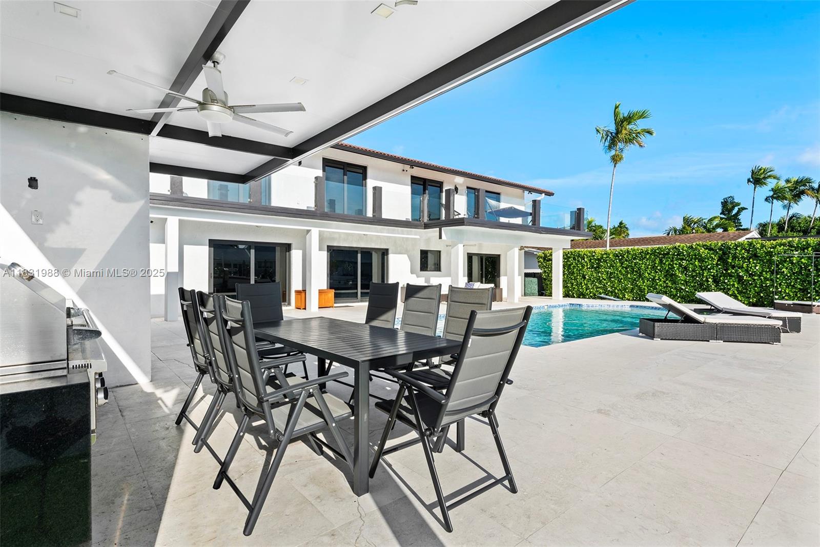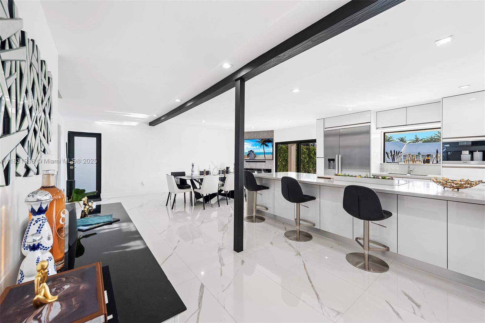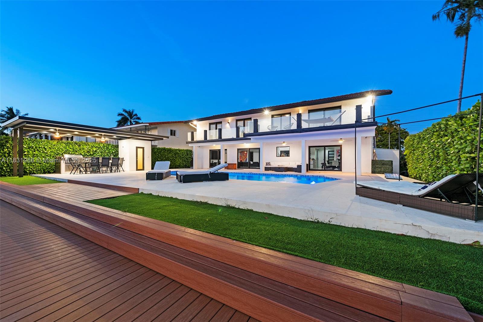 Welcome to this exquisitely 4 beds, 5 baths waterfront. Step inside to an open floor plan with water views from every room. The chef’s kitchen featuring a large island, custom cabinetry, and top-of-the-line Miele appliances. Porcelain/travertine floors add a touch of timeless throughout the home. The primary suite is a private retreat with its own terrace overlooking the pool and canal. The master bath includes dual vanities, double rainfall showers, and a Jacuzzi tub perfect for unwinding in luxury. Step outside to your own backyard paradise. Enjoy a covered outdoor kitchen, heated pool with spa, and 75 ft of waterfront and Jet Ski dock, just minutes to open bay. Extras: Tesla charger, 2-car garage, San Souci offers 24/7 gated security with on-site police presence.