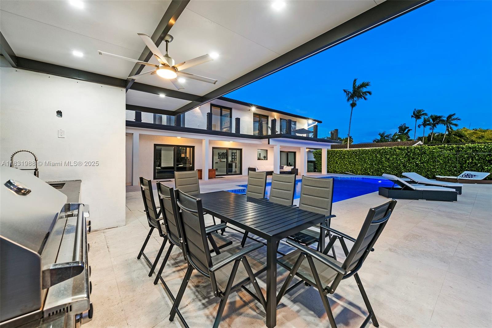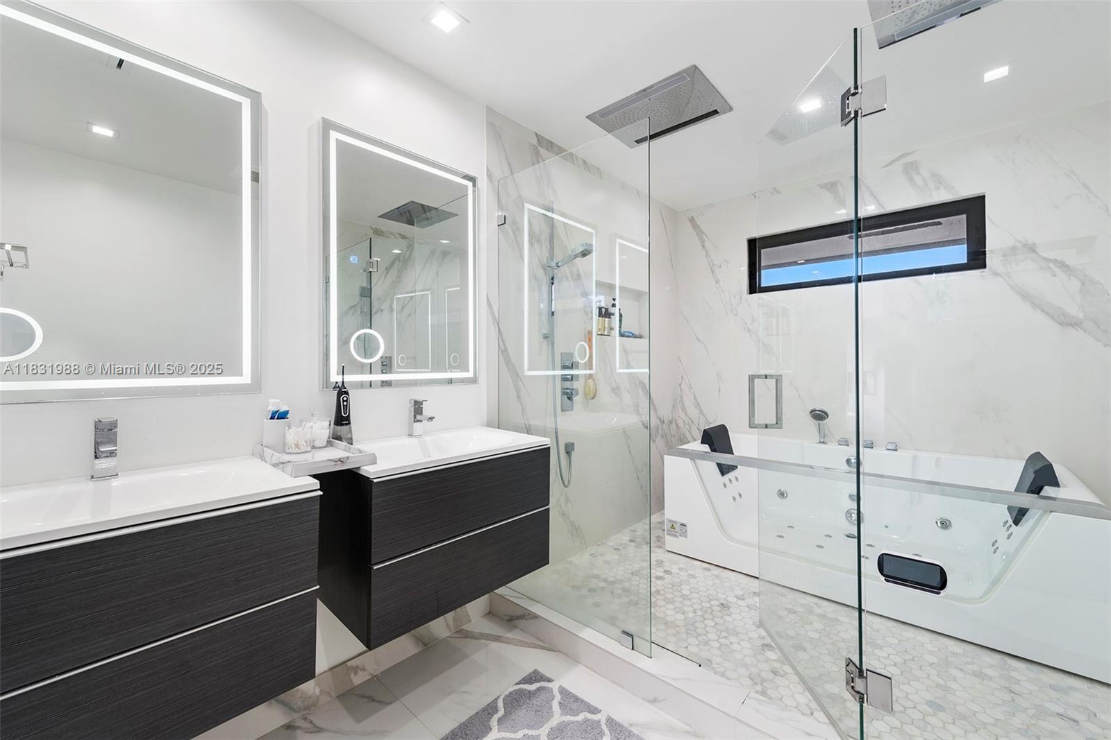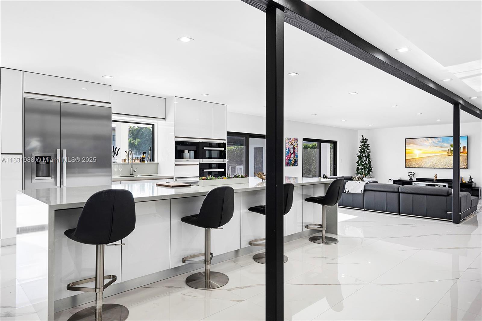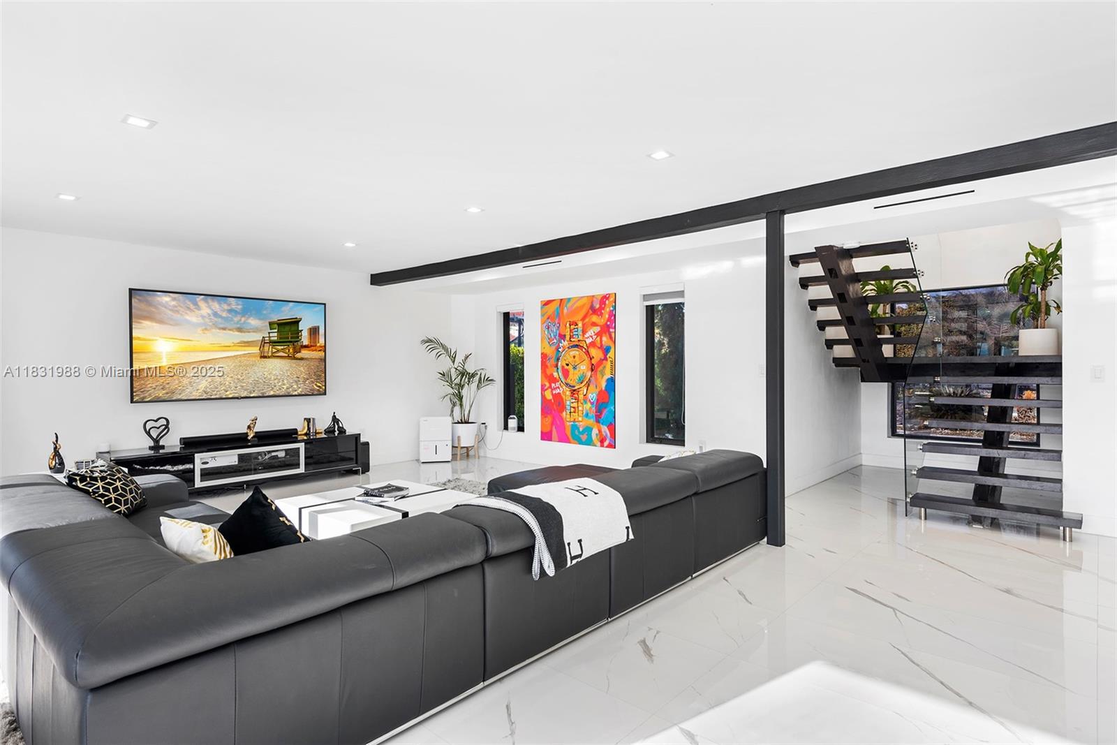 Welcome to this exquisitely 4 beds, 5 baths waterfront. Step inside to an open floor plan with water views from every room. The chef’s kitchen featuring a large island, custom cabinetry, and top-of-the-line Miele appliances. Porcelain/travertine floors add a touch of timeless throughout the home. The primary suite is a private retreat with its own terrace overlooking the pool and canal. The master bath includes dual vanities, double rainfall showers, and a Jacuzzi tub perfect for unwinding in luxury. Step outside to your own backyard paradise. Enjoy a covered outdoor kitchen, heated pool with spa, and 75 ft of waterfront and Jet Ski dock, just minutes to open bay. Extras: Tesla charger, 2-car garage, San Souci offers 24/7 gated security with on-site police presence.