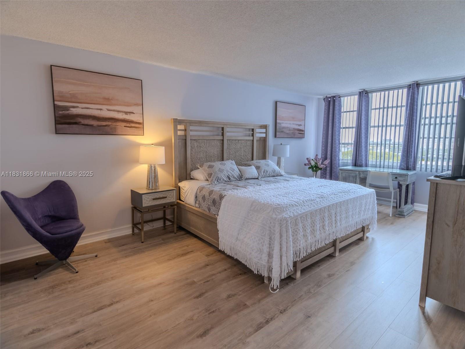 Beautifully renovated and fully furnished condo located in the heart of Hallandale Beach, just a short walk to the ocean. This spacious unit features hardwood flooring throughout, an open-concept living/dining area, and a large primary bedroom with ample closet space. The updated kitchen offers granite countertops, custom cabinetry, and matching backsplash. Both bathrooms are tastefully remodeled. Enjoy amenities including a boat dock, pool, assigned parking, and a storage unit. HOA includes water, sewer, internet, and basic cable. Close to fine dining, shopping, and entertainment. Move-in ready!