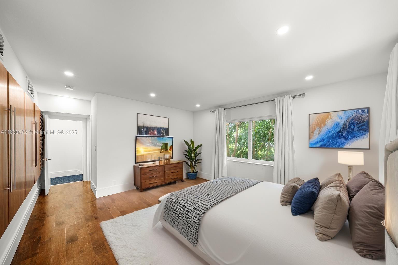 Timeless elegance in the heart of Miami Beach’s most prestigious enclave. This renovated Mid-Century Modern masterpiece is hidden behind lush hedges and a gated entry, offering total privacy and tropical serenity. This 4BD/4BA residence includes a separate office/library with its own en-suite bath — ideal for working or relaxing in style. Sophisticated finishes include limestone and walnut hardwood floors, a sleek chef’s kitchen with Miele and Sub-Zero appliances, impact doors and windows, a climate-controlled garage and secluded heated pool elevate the everyday. This rare North Bay Road home is the ultimate blend of design, comfort, and location — a true private oasis in one of Miami’s most sought-after neighborhoods.