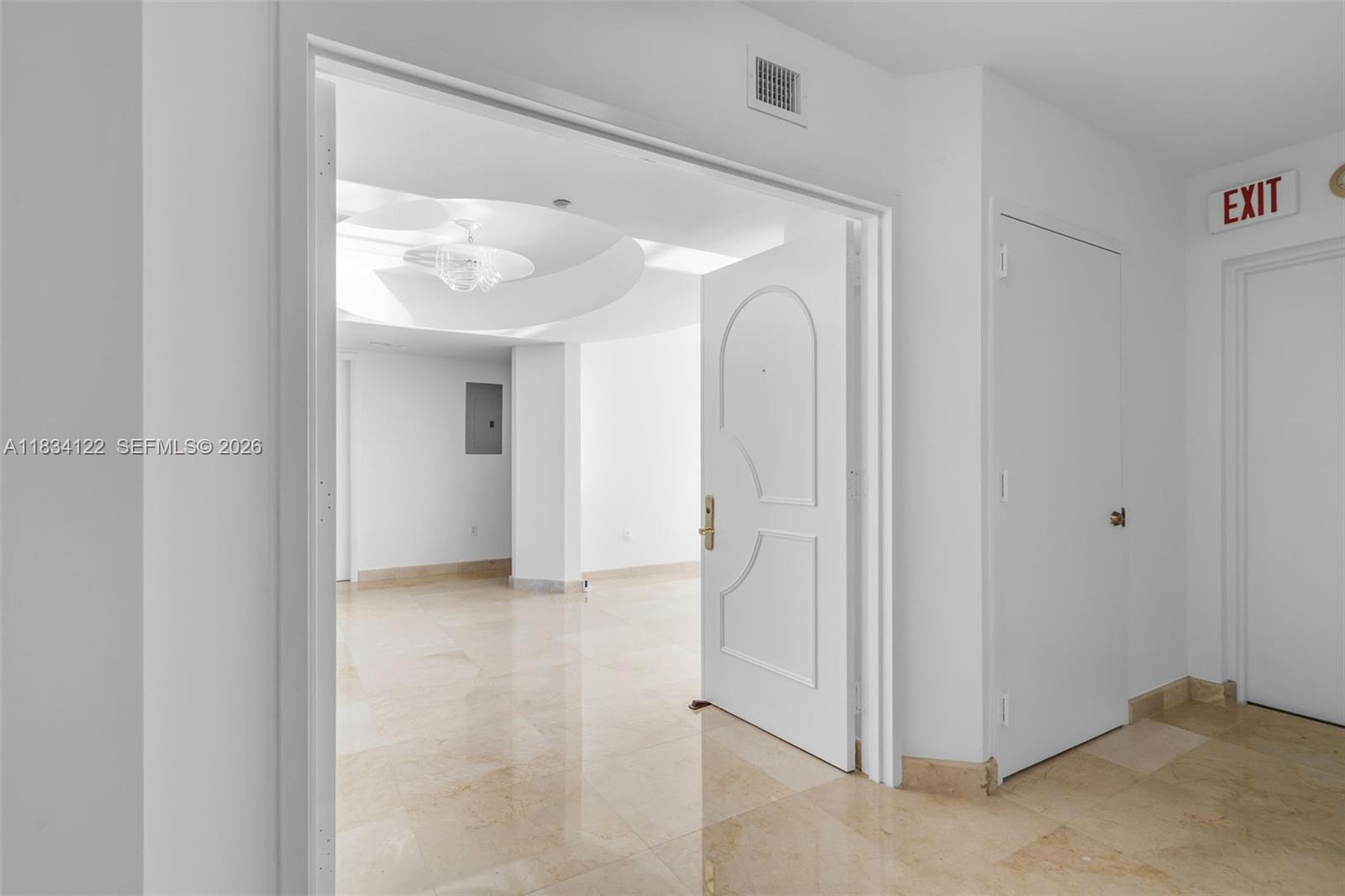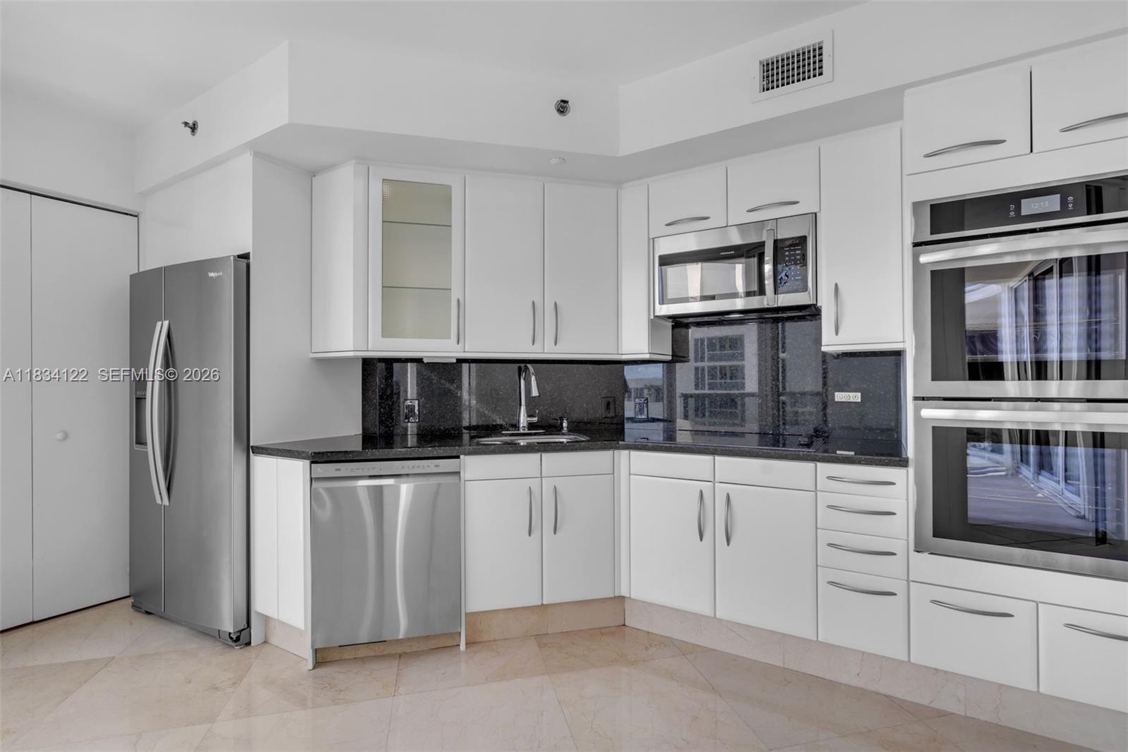 Step into the elegance of Lower Penthouse living with this spacious flow-through sky residence, offering panoramic views of both the Atlantic Ocean and the Intracoastal. Arrive in style via your private elevator lobby and enter a beautifully designed 2-bedroom, 2.5-bath home that blends comfort and sophistication. The open-concept kitchen is equipped with brand-new stainless-steel appliances, including a cooktop, double oven, microwave, refrigerator, and dishwasher, perfect for both entertaining and everyday living. A walk-in pantry provides exceptional storage, while a detached laundry room, off foyer, features a full-size washer and dryer for added convenience. Additional highlights include built-in closets, blinds, and refined finishes throughout.
