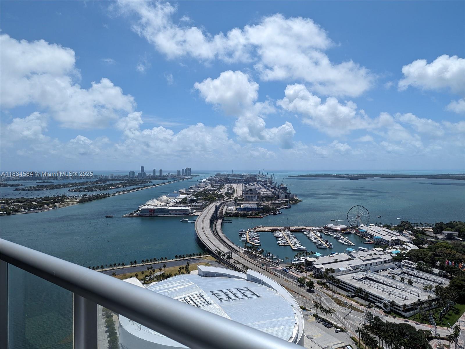 Love the view! This beautifully furnished one-bedroom, one-and-a-half-bath condo on the 47th floor of Marinablue offers stunning bay and city views from its open balcony. Featuring tiled floors throughout and an updated kitchen, the unit combines style and comfort in one of Miami's most desirable locations. Situated on Biscayne Boulevard, it’s just a short walk to the performing arts district, Bayside Park, museums, shopping, and dining. The building boasts resort-style amenities including two pools, a hot tub, a fully equipped fitness center, 24-hour concierge and security, valet parking, a club room, business center, barbecue grills, and even a sand volleyball court. This is luxury high-rise living at its finest.