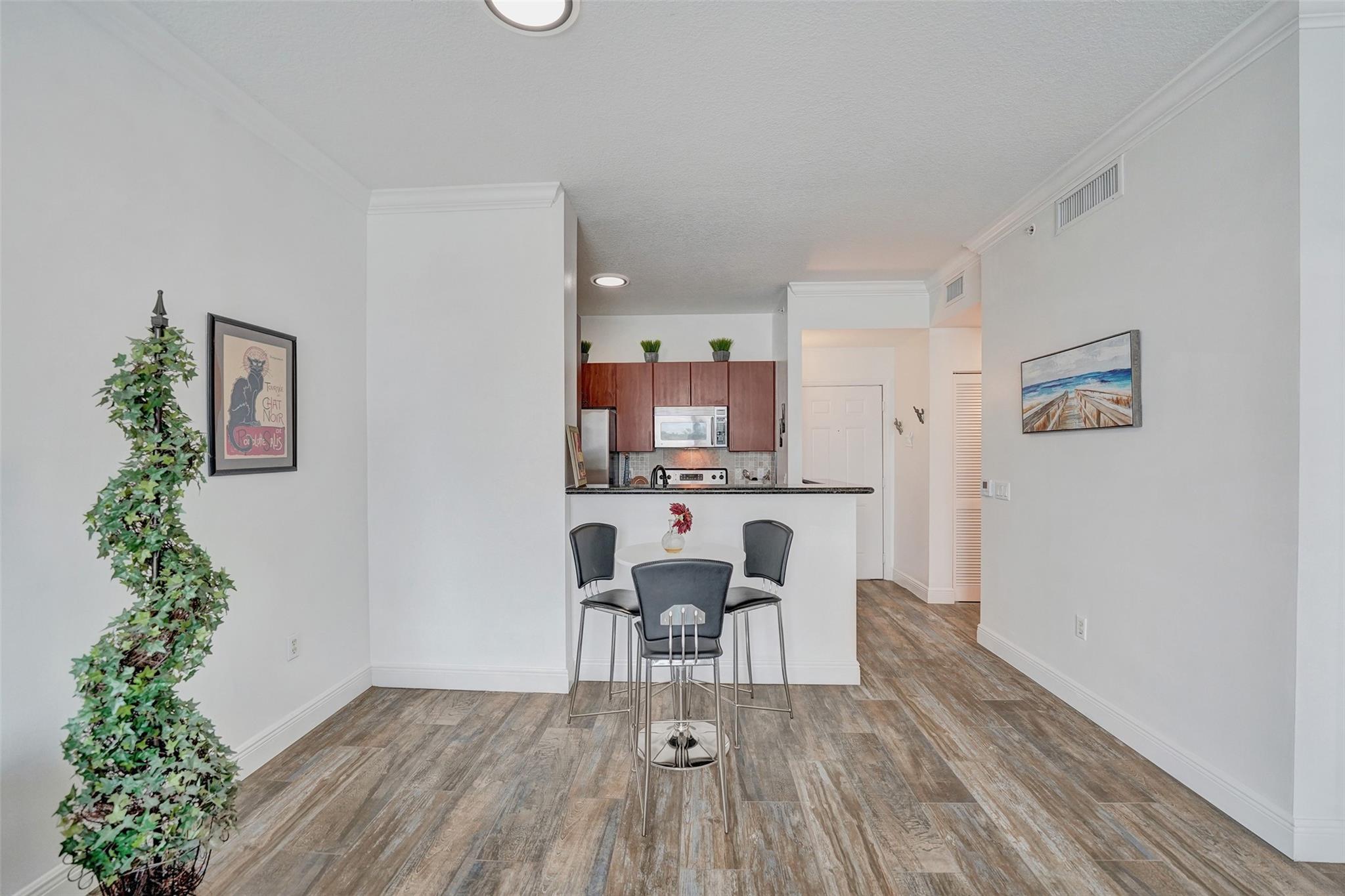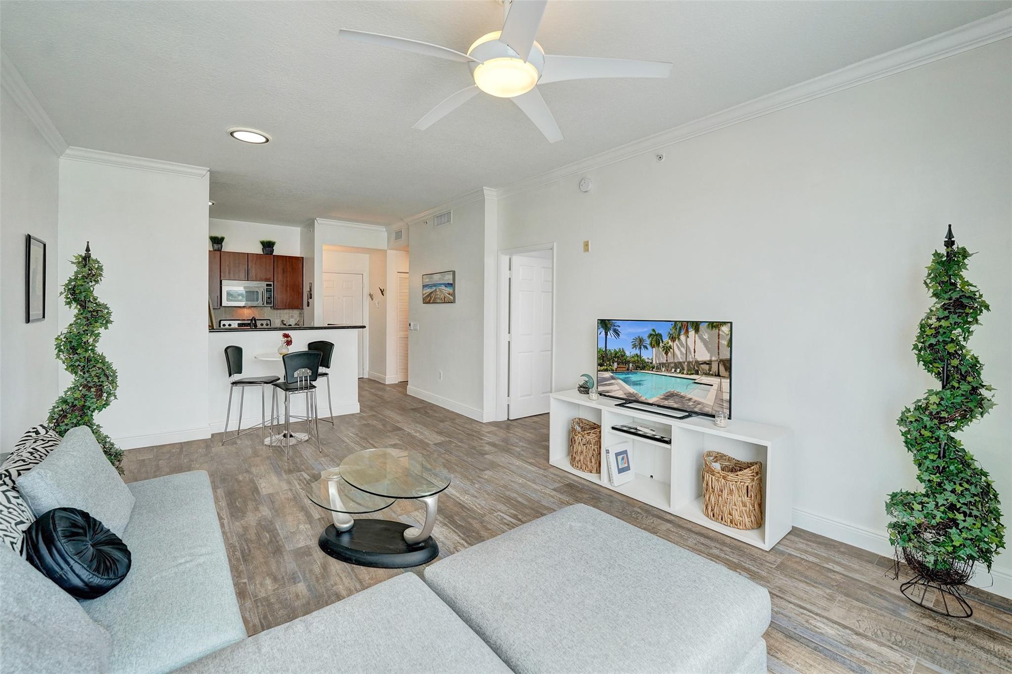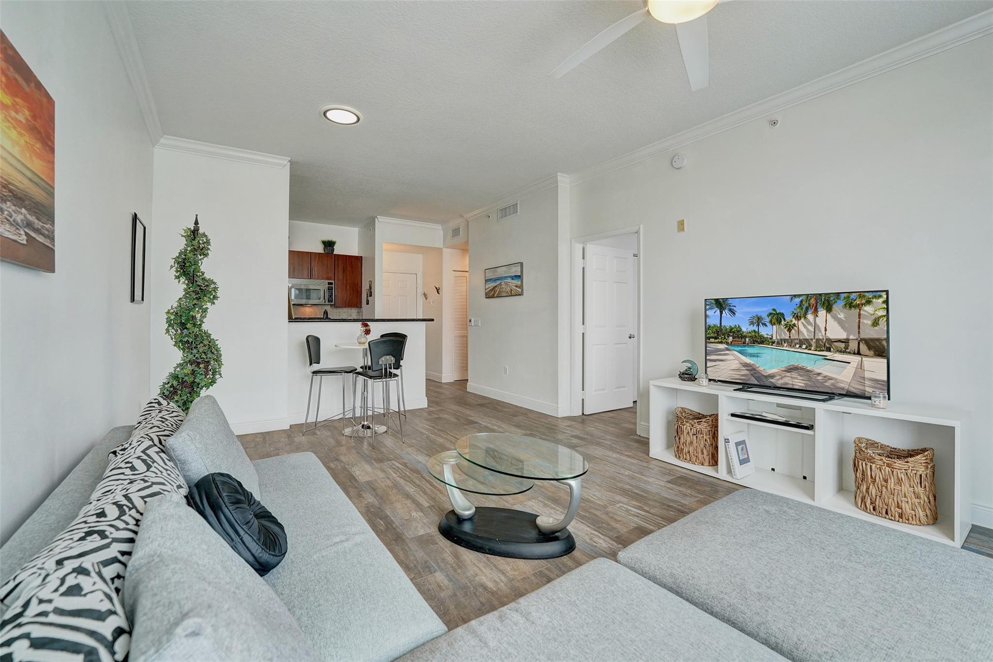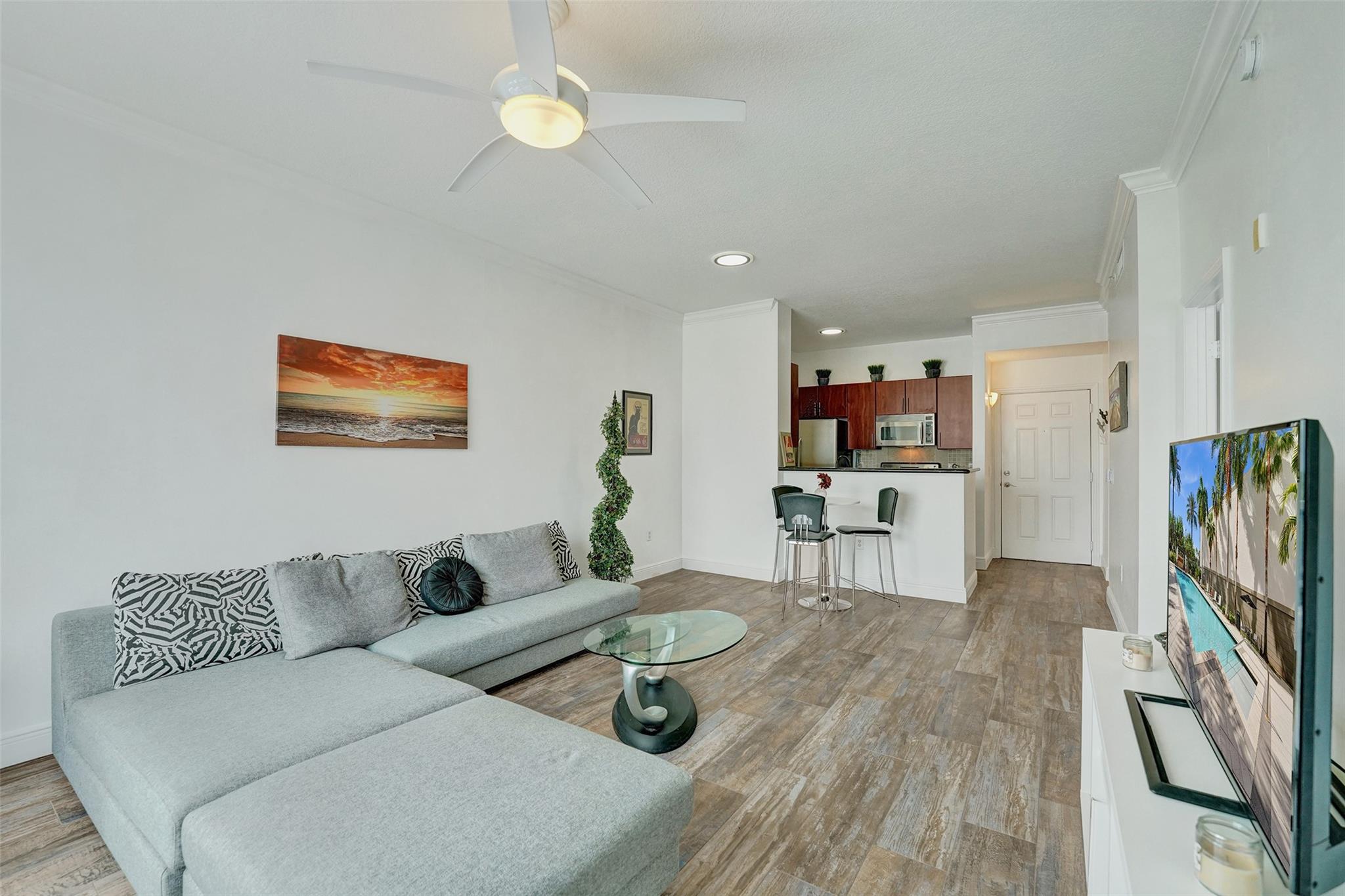 Step into this gorgeous 1-bed, 1-bath condo with soaring high ceilings and expansive windows that bathe the space in natural light. The open layout seamlessly connects a bright living area with a sleek, modern kitchen—ideal for entertaining or morning coffee. The serene bedroom retreat is perfect for winding down or setting up a cozy home office. Enjoy the convenience of an in-unit washer/dryer and electric-car charging in the garage. The building offers resort-style amenities: an expansive pool, sauna, state-of-the-art fitness center, business center, and a clubhouse with a bar and pool table—perfect for hosting. Plus, you’re just minutes from Lauderdale-by-the-Sea, top restaurants, beaches, hospitals, and vibrant nightlife.