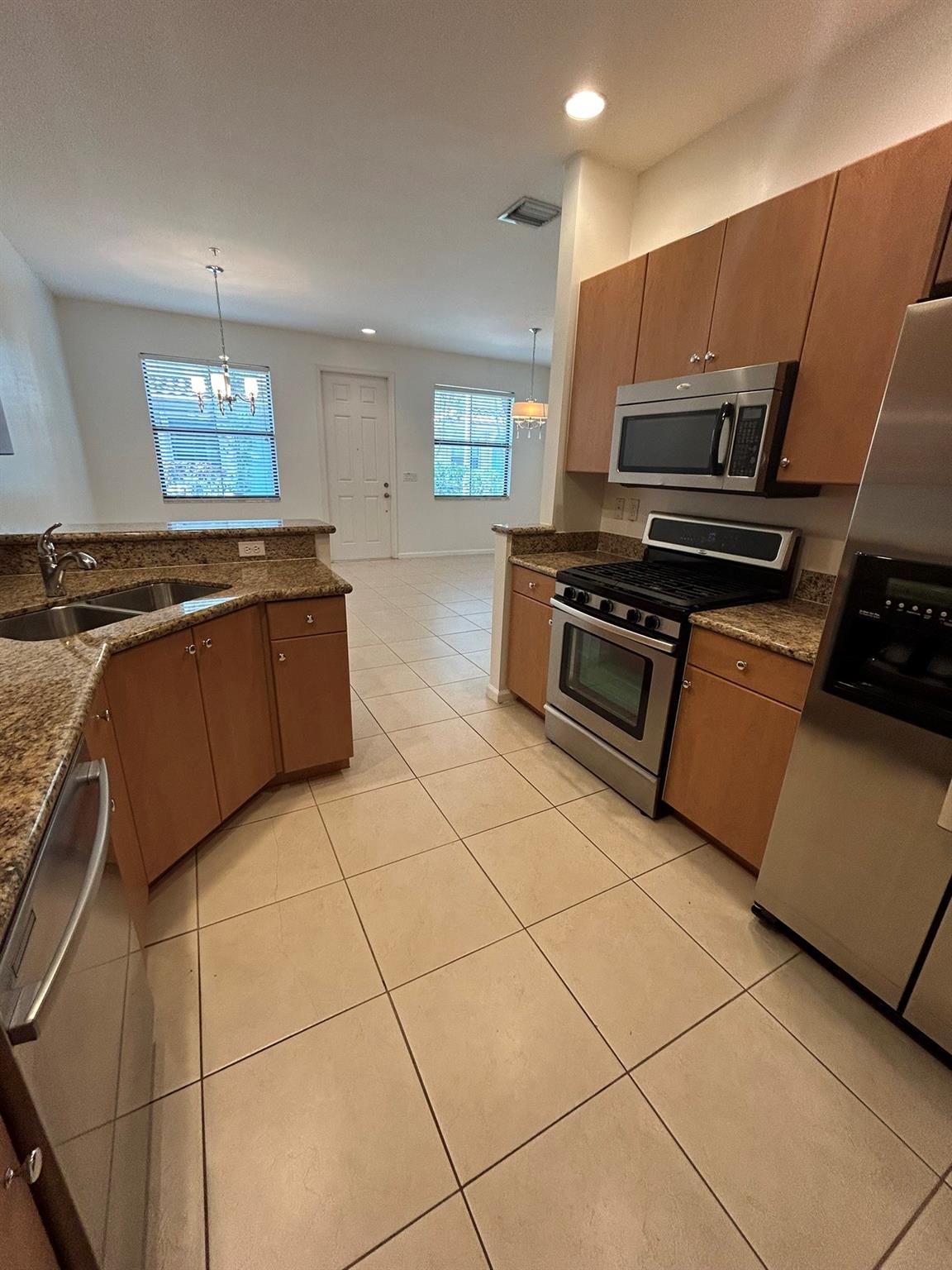 Beautiful townhouse with 2 beds, plus den/office 2.5 baths and two car garage located at Artesia. Kitchen with granite countertops, brand new carpet upstairs and ceramic tiles downstairs, stainless steel appliances and wood cabinets. This gated community offers amenities such as gym, tennis courts, indoor basketball, pools and more.