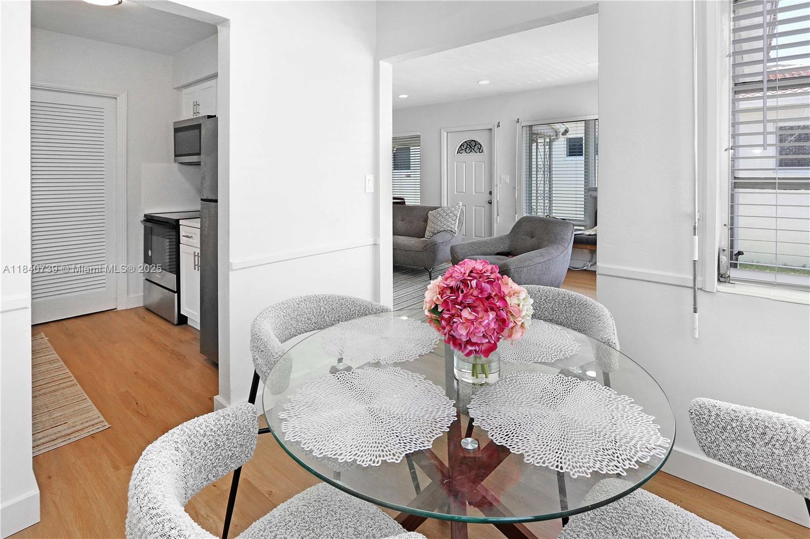 Just steps from the beach, this bright, beautifully renovated 2 bedroom, 2 bathroom home offers the perfect coastal retreat. Filled with natural light, the home features a spacious living room with wood-style floors, creating a warm and inviting atmosphere. The sleek kitchen includes white cabinetry, stainless steel appliances, and plenty of counter space. Enjoy meals in the sunny dining nook surrounded by windows. Both bedrooms are generously sized with ample closet space, and the bathrooms showcase charming retro tile with modern updates. With prime walkable location near shops, cafes, and the ocean, this home blends comfort and style for the ultimate beachside living!