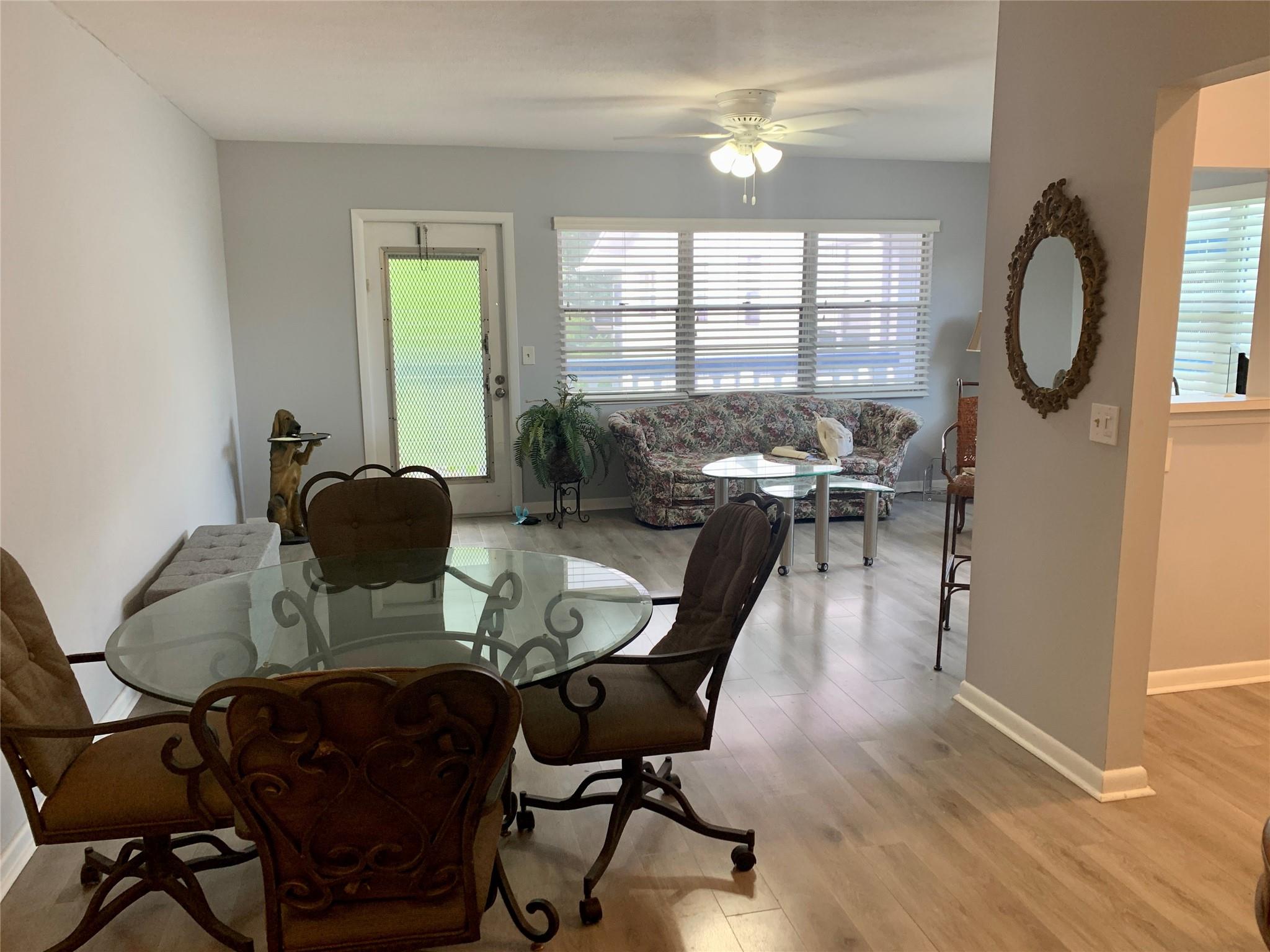 This cozy 1 bedroom/ 1.5 baths fully furnished apartment is being offered for an Annual lease only. Corner location gives it lots of light and a kitchen with a window. The second floor adds privacy, and you have a lift two steps away. Nicely appointed, with New Laminate Floors, Central A/C, microwave, toaster/air fryer, additional storage on the balcony. WiFi included in rent. Enjoy peaceful park-like setting, and many Century Village recreational amenities, numerous clubs, a cafe, and a complimentary bus. One resident must be 55+.