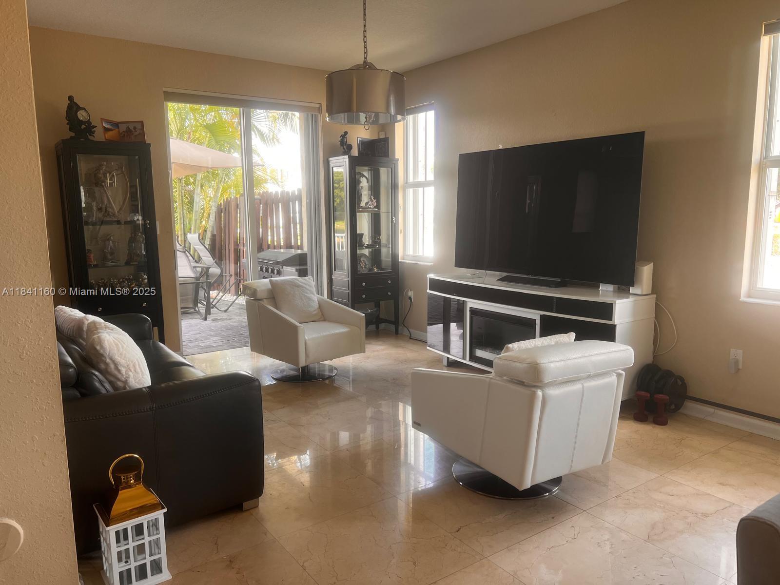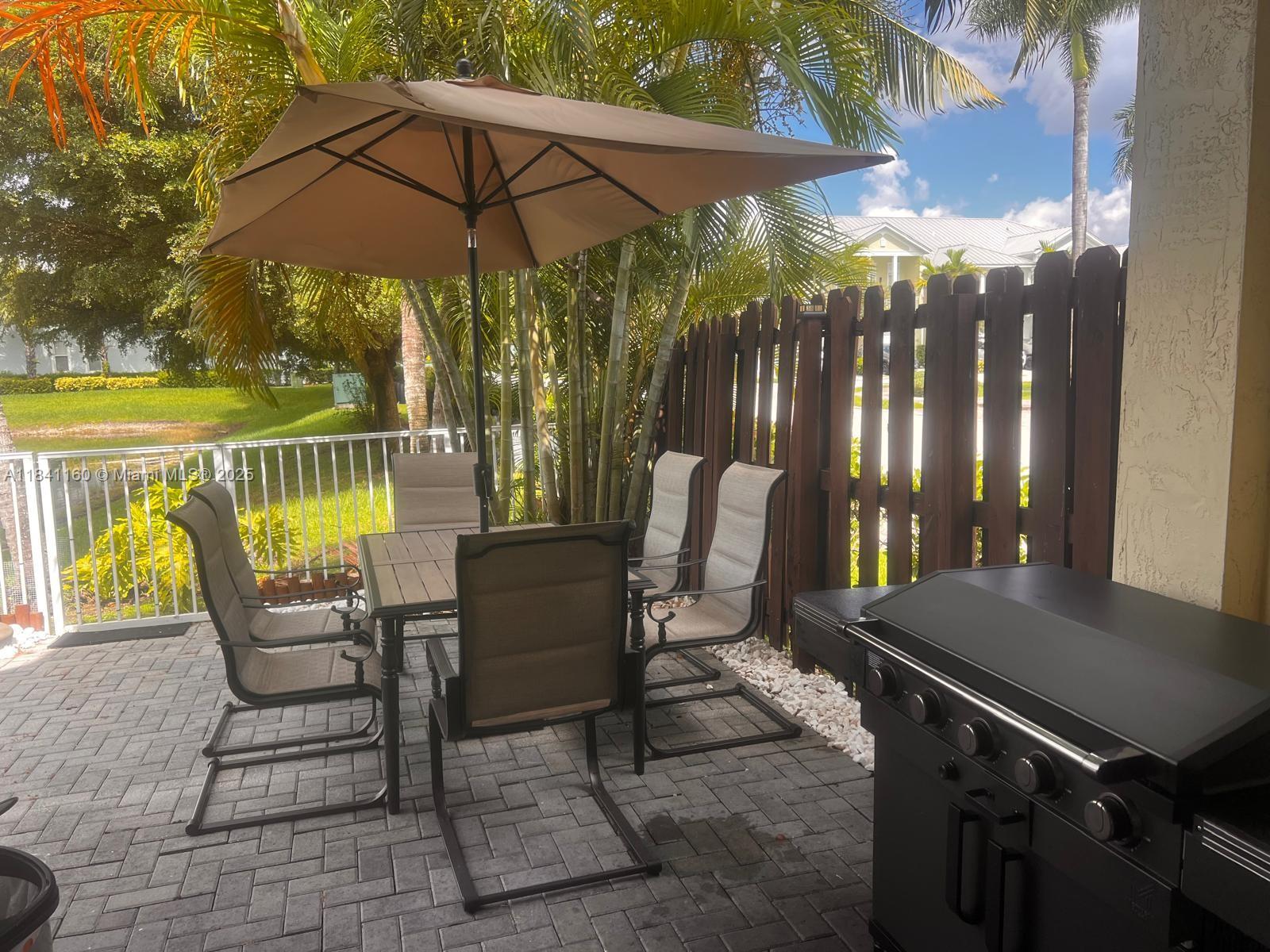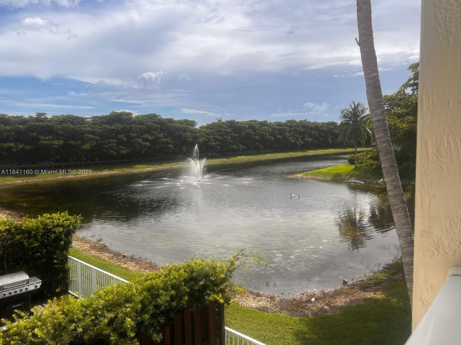 Beautiful and spacious corner townhouse with 4 bedrooms and 3.5 bathrooms, located in a secure gated communiety. Enjoy added privacy with only one direct neighbor. The first floor features elegant marble flooring, while the second level boasts warm wood floors. The master bedroom includes a private terrace with breathtaking view of the lake and the community playground. The backyard is perfect for relaxing or entertaining, featuring a peaceful illuminated fountain and stunning lake views. This unique home offers the perfect combination of comfort, style an serenity. Five cars can be parked on the property. Two inside, two outside, and one across.