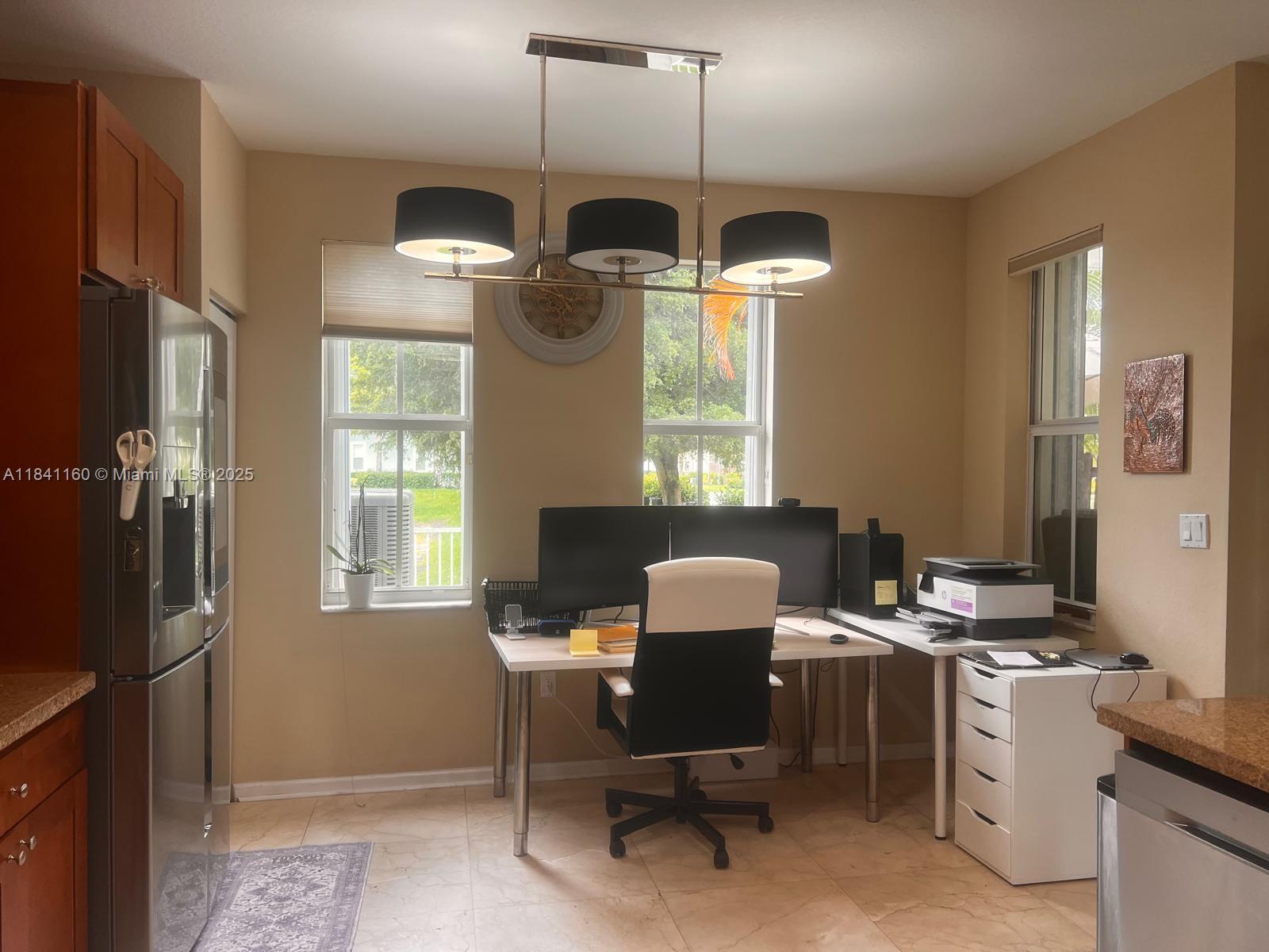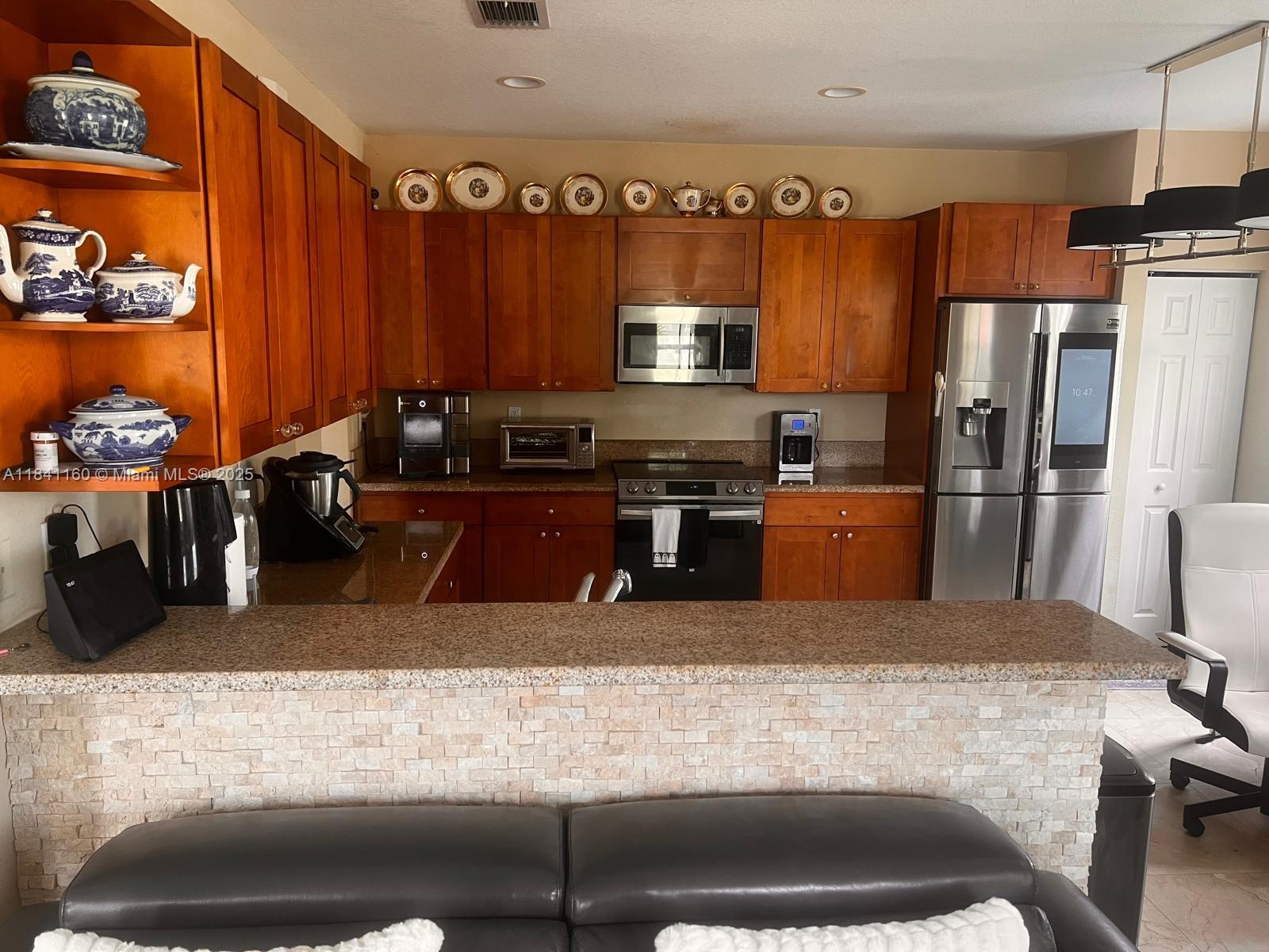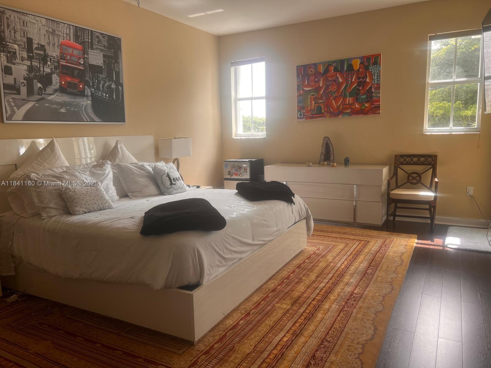 Beautiful and spacious corner townhouse with 4 bedrooms and 3.5 bathrooms, located in a secure gated communiety. Enjoy added privacy with only one direct neighbor. The first floor features elegant marble flooring, while the second level boasts warm wood floors. The master bedroom includes a private terrace with breathtaking view of the lake and the community playground. The backyard is perfect for relaxing or entertaining, featuring a peaceful illuminated fountain and stunning lake views. This unique home offers the perfect combination of comfort, style an serenity. Five cars can be parked on the property. Two inside, two outside, and one across.