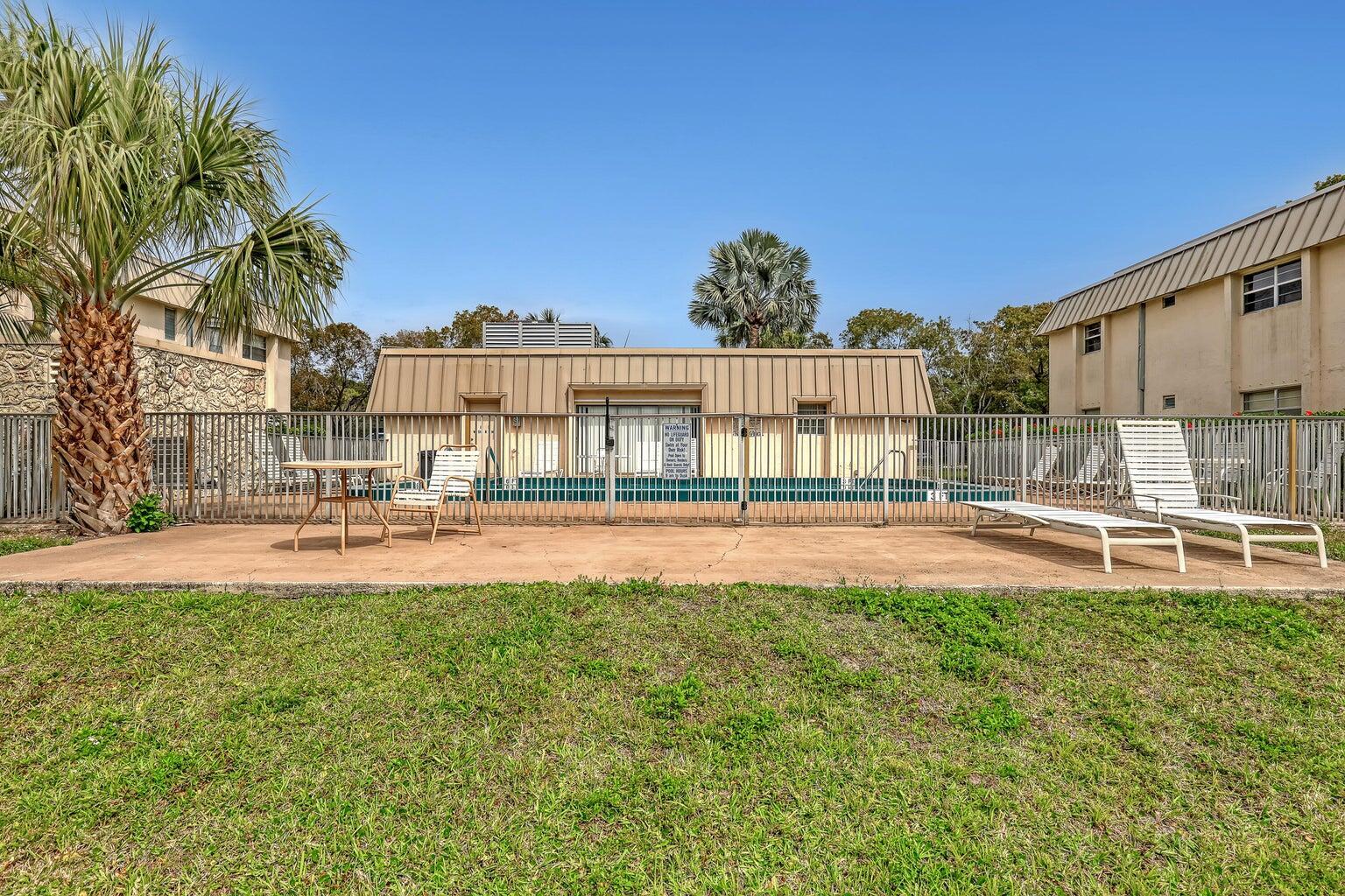FIRST FLOOR (NO STAIRS) Sit back with your favorite beverage and enjoy the sunsets on the outside Patio overlooking water and wildlife. Perfect patio for entertaining friends. Just minutes from I-95 and within walking distance of good restaurants, coffee places, and shopping. HOA INCLUDES: Cable, water, sewer, and exterior property.