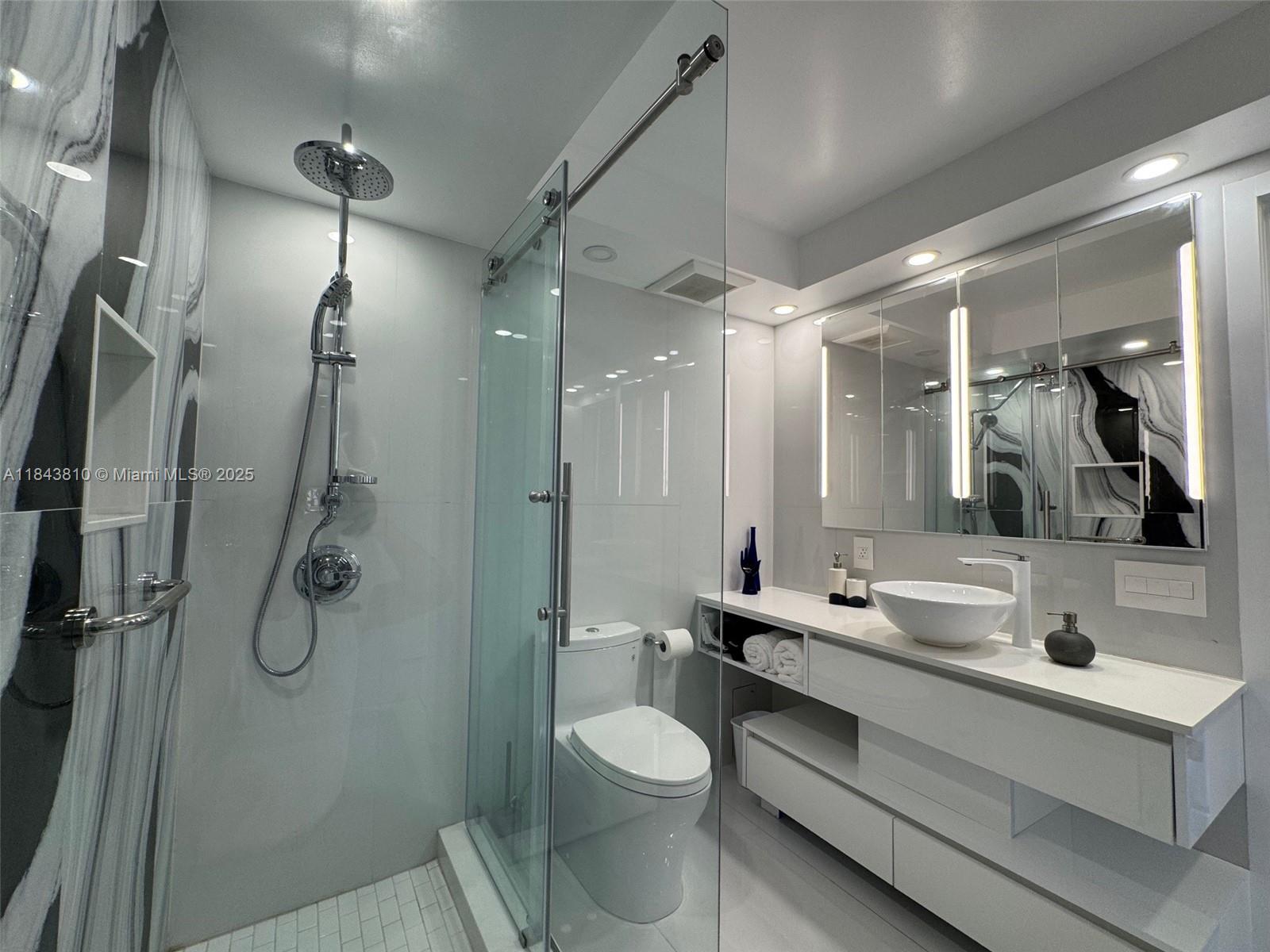 Step into newly renovated, fully designer-decorated apartment featuring brand-new finishes and high-end appliances. Great quality modern Furniture. Large balcony with spectacular unobstructed Intracoastal views perfect for morning coffee or evening sunsets. Bosch Washer and Dryer located inside apartment bathroom. Gourmet kitchen with tile surfaces and top-of-the-line appliances: Liebherr refrigerator, Bosch dishwasher, Whirlpool cooktop, oven, and microwave. White Gloss Stretch ceiling in the living room makes apartment very bright with natural day light. Amazing large pool and Gym. Walk 5 minutes to the beach for sand, see breezes and relaxation. Convenient location with many grocery stores and restaurants. A Grade School. Apartment can be shown same day. Call or text Listing Agent.