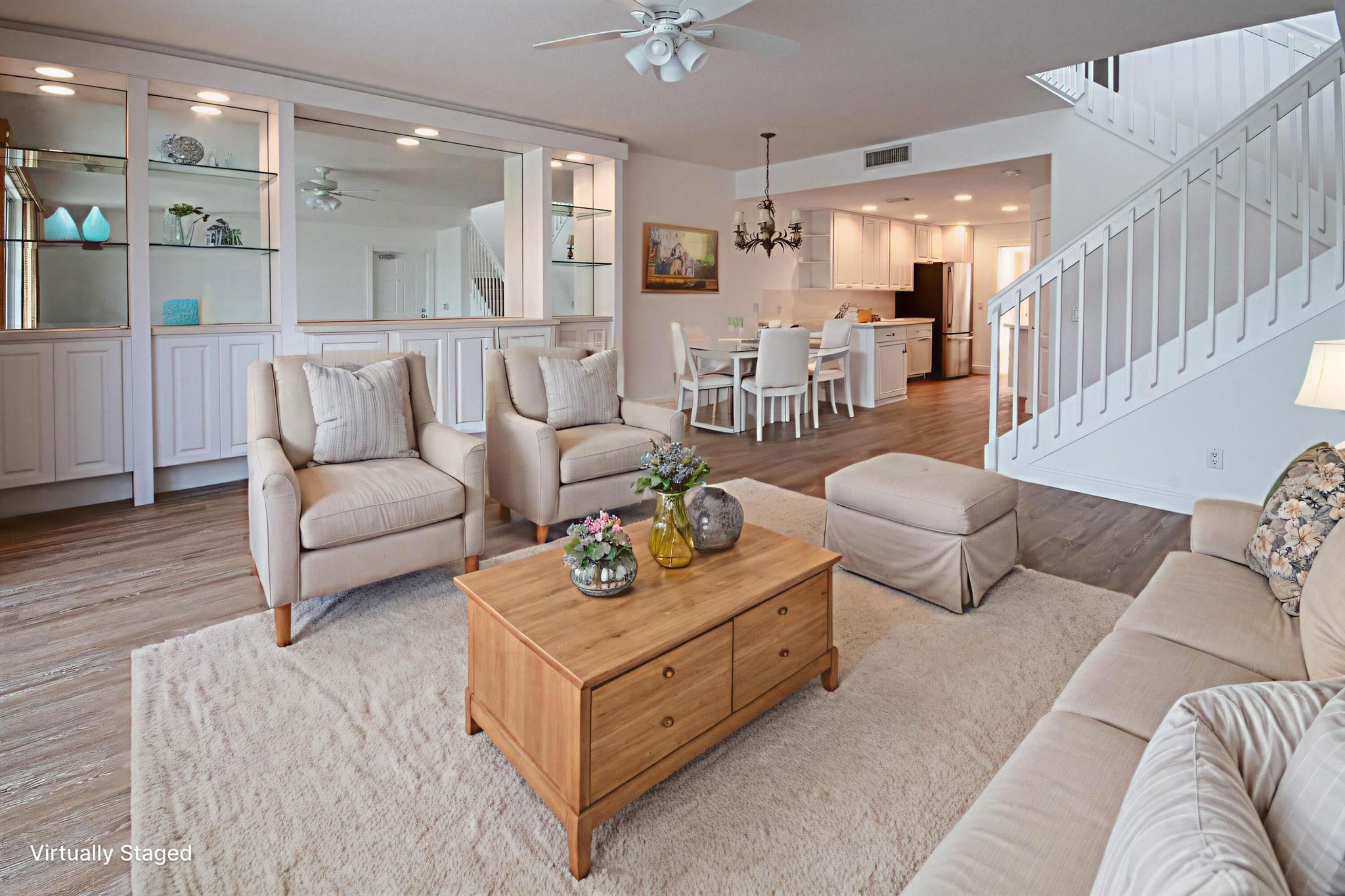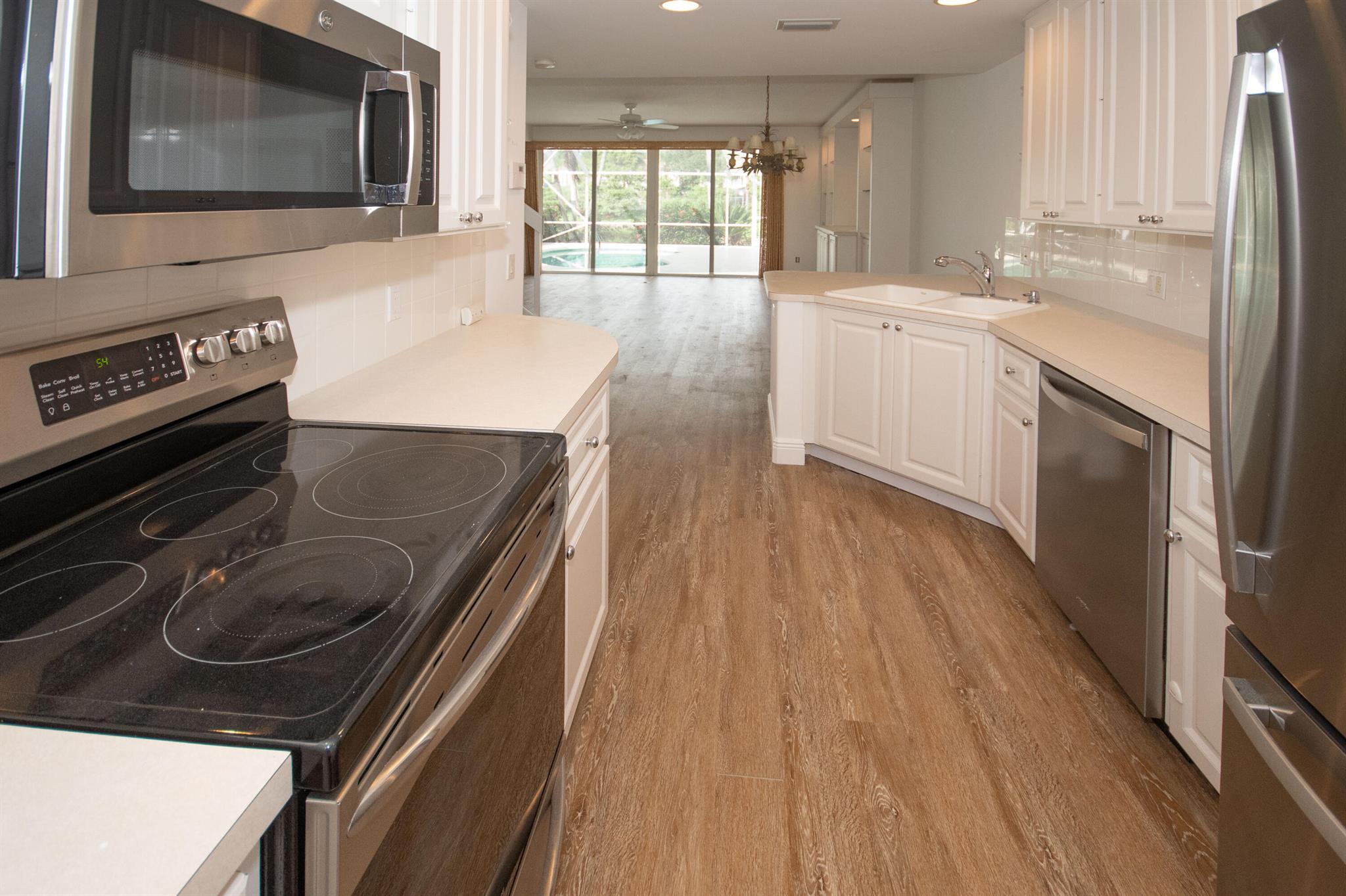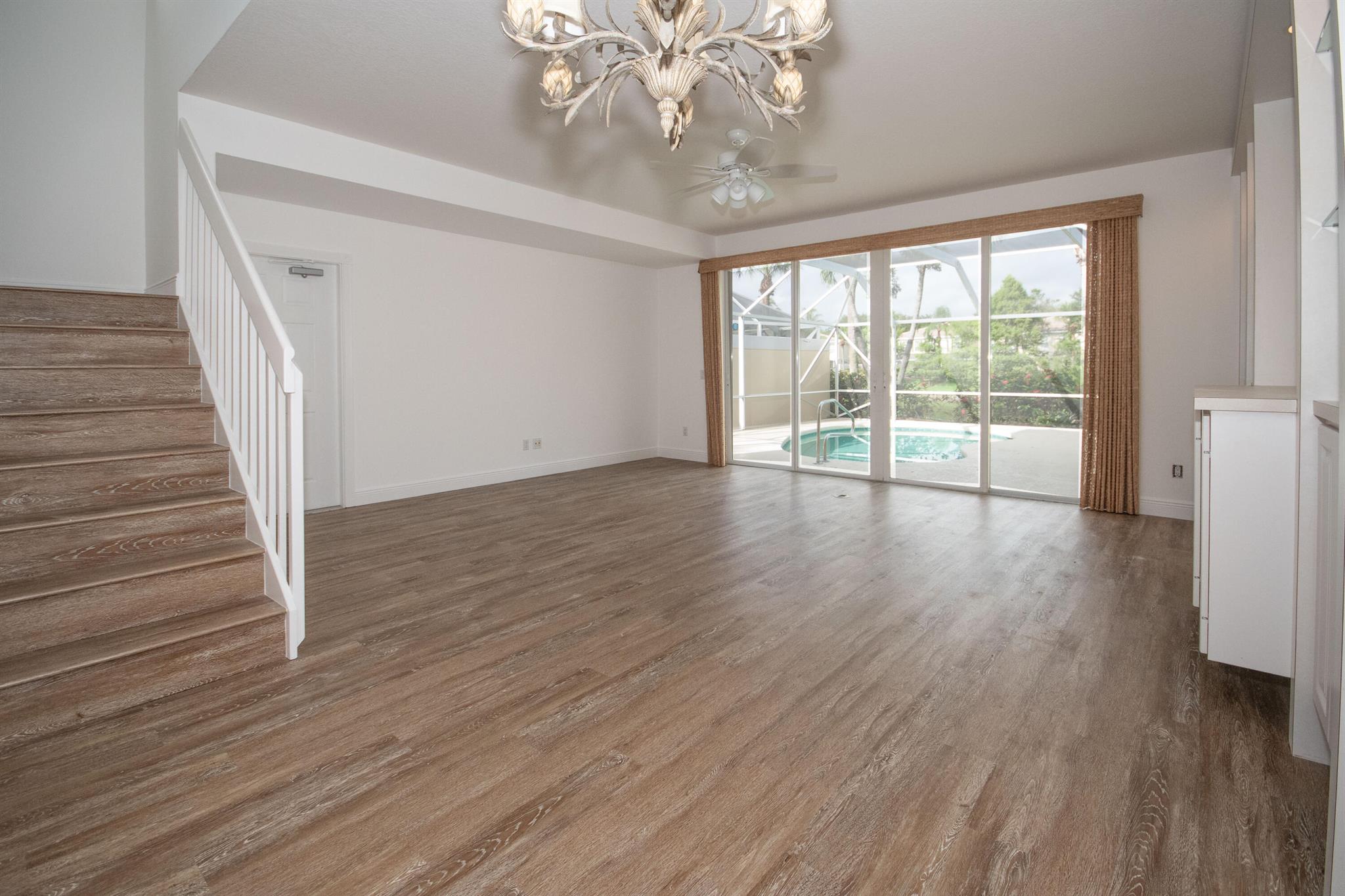 Hands down the nicest rental in the area! 3 bed/2.5 BA/1 car gar W/2 car-Brick-Paved parking pad. PRIVATE POOL(owner pays weeky maint)W/screened enclosure & pool deck.3rd BR can b den or office. Nice open views from every window. Freshly painted throughout. Plantation Shutters on all windows & lovely custom window treatments on sliding glass doors, retractable awning W/remote, no popcorn ceilings, custom flooring throughout & no carpet anywhere. Nice Laundry room W/full size W & D & loads of extra cabinet storage. Breakfast bar off open kitchen. DR, LR offers a custom wall unit that will house a 70'' TV, half bath on main level. Well appointed Primary Retreat W/dual sinks, separate shower & soaking tub, large linen closet, huge WI closet, Sep Double Closet & Much more-Will not disappoint!