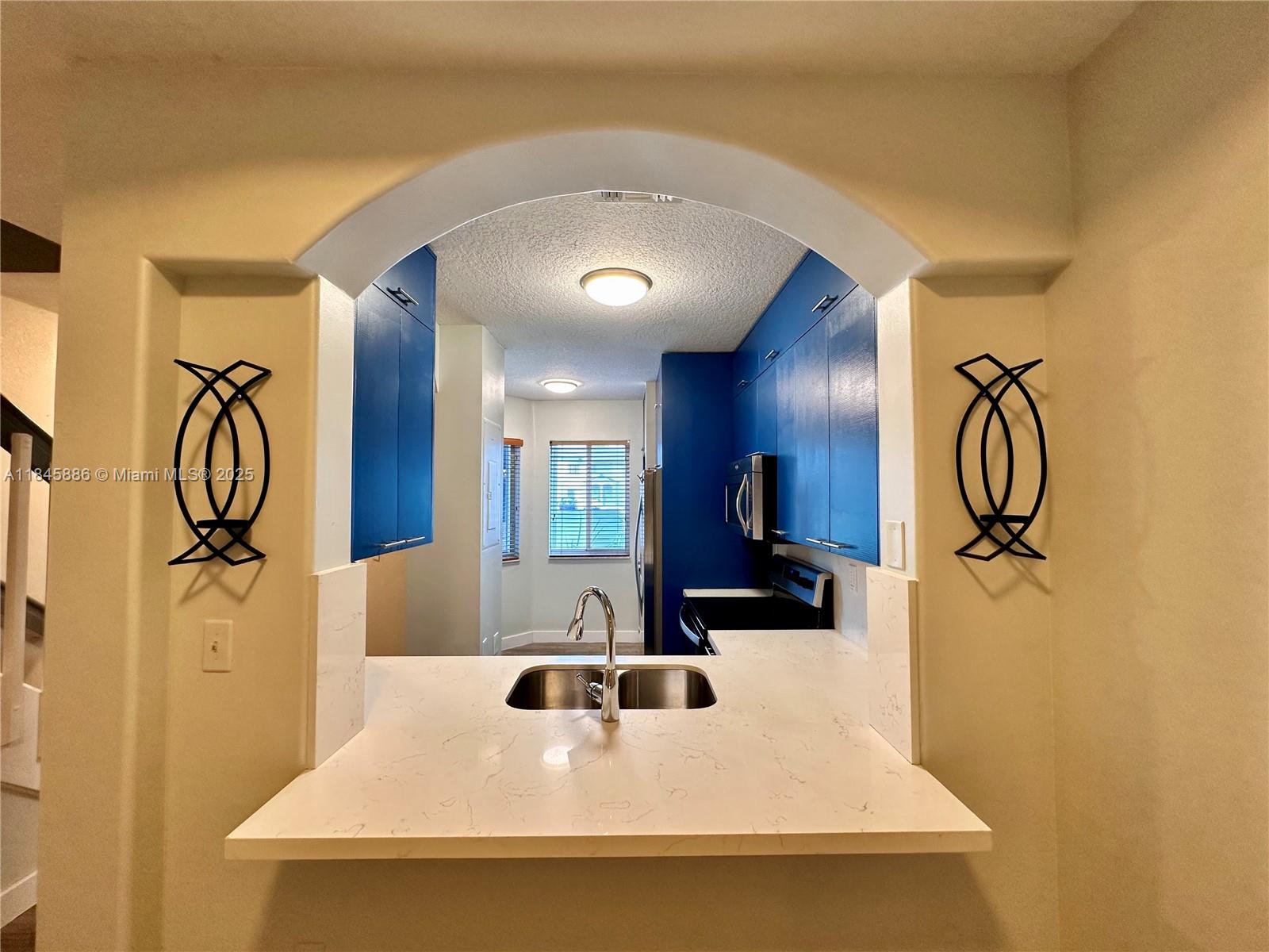 Spacious townhome in gated community near FIU, shopping and major highways. First floor open floor plan offers living and dining areas open to the kitchen counter. Guest bath is available on the first floor. Kitchen has space for a bistro table. Washer and dryer is located on the first floor. Cozy covered patio is great to enjoy the outdoors. Second floor offers 2 bedrooms each with an ensuite bathroom and closet systems in each closet. Home is well maintained, ready for it's next tenant.