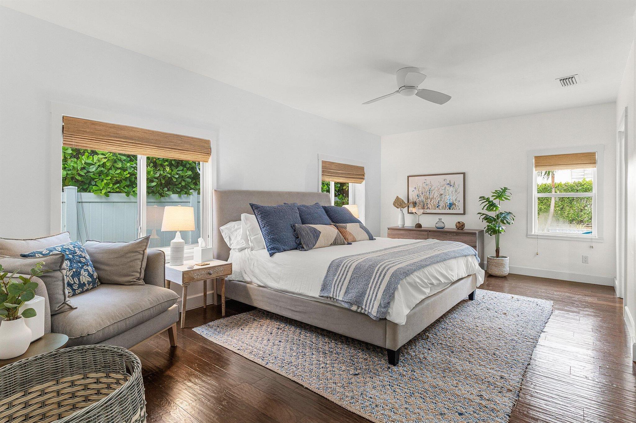 Incredible Furnished Rental near Downtown. Totally renovated 3 BR/ 3BA Art Deco, pool home with detached Guest Cottage/Efficiency. Designer finishes, spacious bedrooms, Impact windows, whole home generator, tankless water heater, gas fireplace, wood floors throughout and a chef's dream kitchen! Private and Tranquil fully fenced in lushly landscaped backyard with Saltwater pool. A short walk to the Beach, Pineapple Grove and Atlantic Avenue for fine dining, shopping and entertainment. Move right in and enjoy the Delray Beach lifestyle! No HOA, quick move-in, Available for Short or longer term