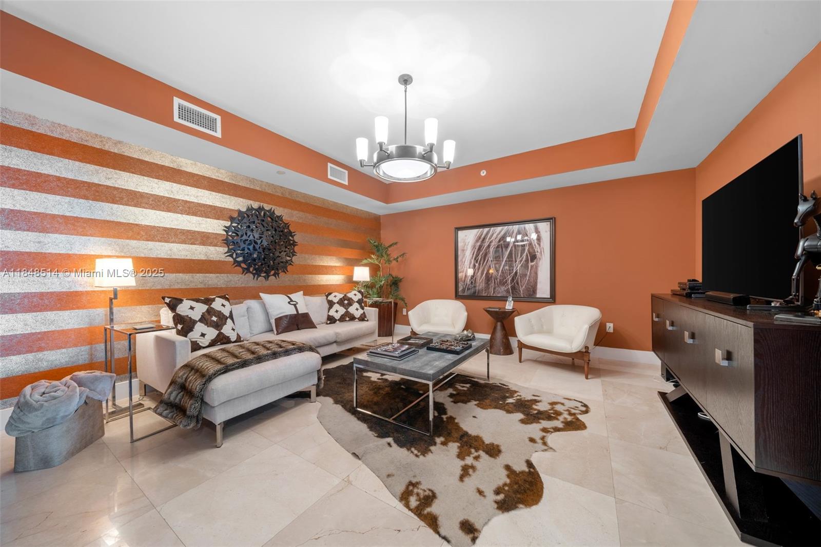 Exquisite apartment, totally furnished, it was a Model unit, new ovens, new wine cellar, marble and wood floors, TV room, office room, walk-in closets, laundry room, most desirable floor plan in the building. Breathtaking water views. Peninsula II offers 24h security, 3 tennis courts, BBQ areas, 2 play centers areas for kids and babies, a full service SPA, valet and self parking available, 2 swimming pools, sauna etc. Ready to move in!