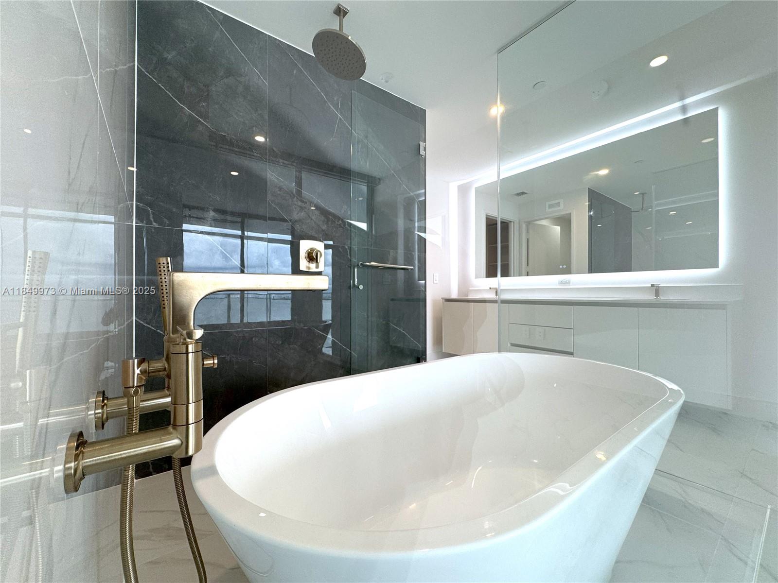 Stunning NEW BUILD 1 bedroom + den, 2 bath condo in luxurious Aria Reserve, in the popular Edgewater neighborhood! BRAND NEW, be the 1st to live in this home!! Modern designer finishes, elegant marble look porcelain floors, spacious island, premium appliances, and floor-to-ceiling windows that flood in natural light. Den is perfect for a home office or bedroom. Step out onto the expansive private balcony with breathtaking views of Biscayne Bay - perfect for a morning coffee while watching the sunrise. Enjoy access to world-class amenities including resort-style pools, a full-service spa, fitness center, tennis courts, 24-hour concierge, and a waterfront promenade. Perfectly situated minutes from Wynwood, Brickell, Downtown, and Miami Beach, this home offers unmatched luxury and convenience