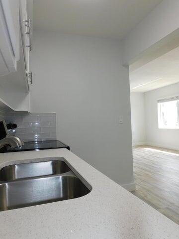 Welcome to downtown Lake Worth Beach and The Ivy! This beautiful extra large one bedroom apartment with walk in closet is located walking distance from the downtown strip and less than 1/2 mile to Lake Worth Beach. The beautiful courtyard is perfect for relaxing each morning with coffee from the new cafe which is steps from your door. This 2nd floor unit which spans the whole top floor has been beautifully updated with wood tile floor, all new kitchen with brand new appliances, quartz countertops, brand new bathroom vanity with shower/tub combo & freshly painted! It has an open kitchen so you can easily entertain. Impact windows Right next to new million-dollar condos. Coin operated washer and dryer on premises! Walk to the beach & Bryant Park! Come see what Lake Worth Beach is all about