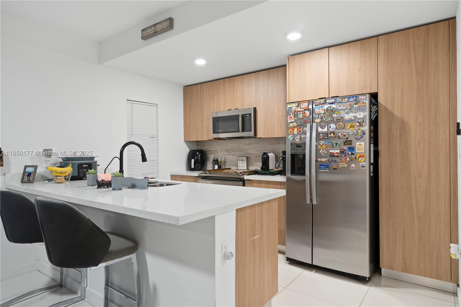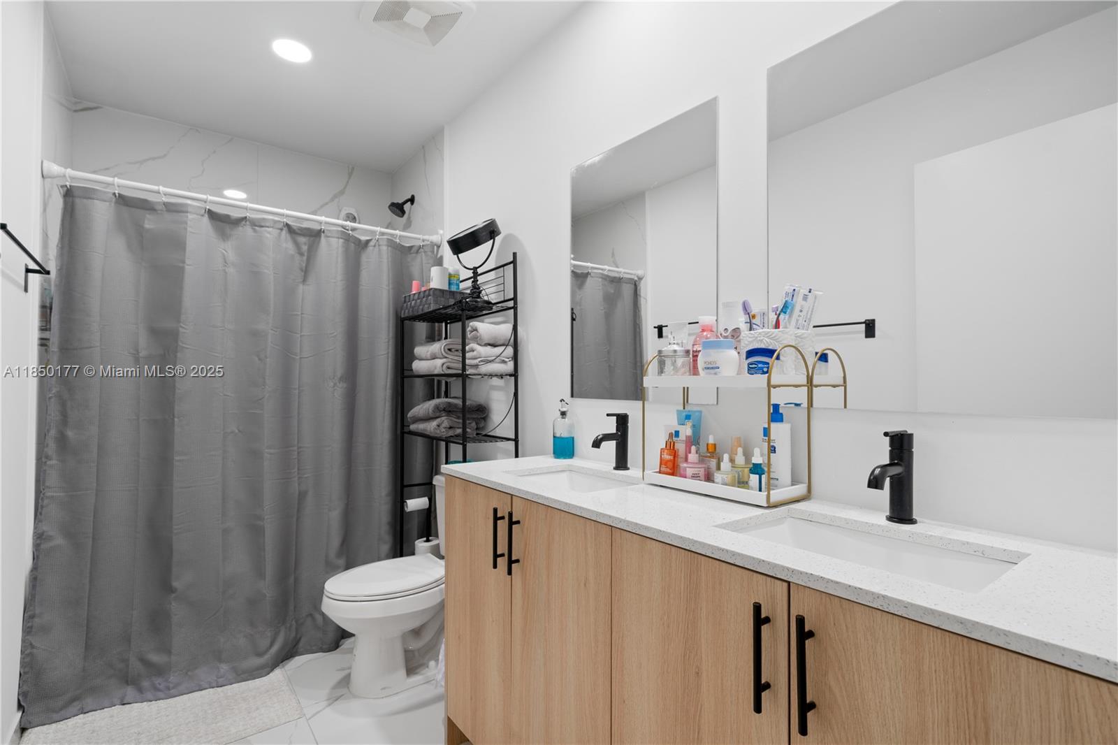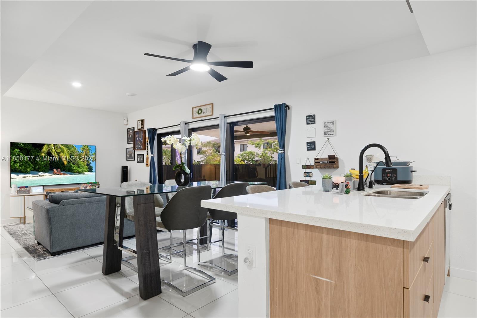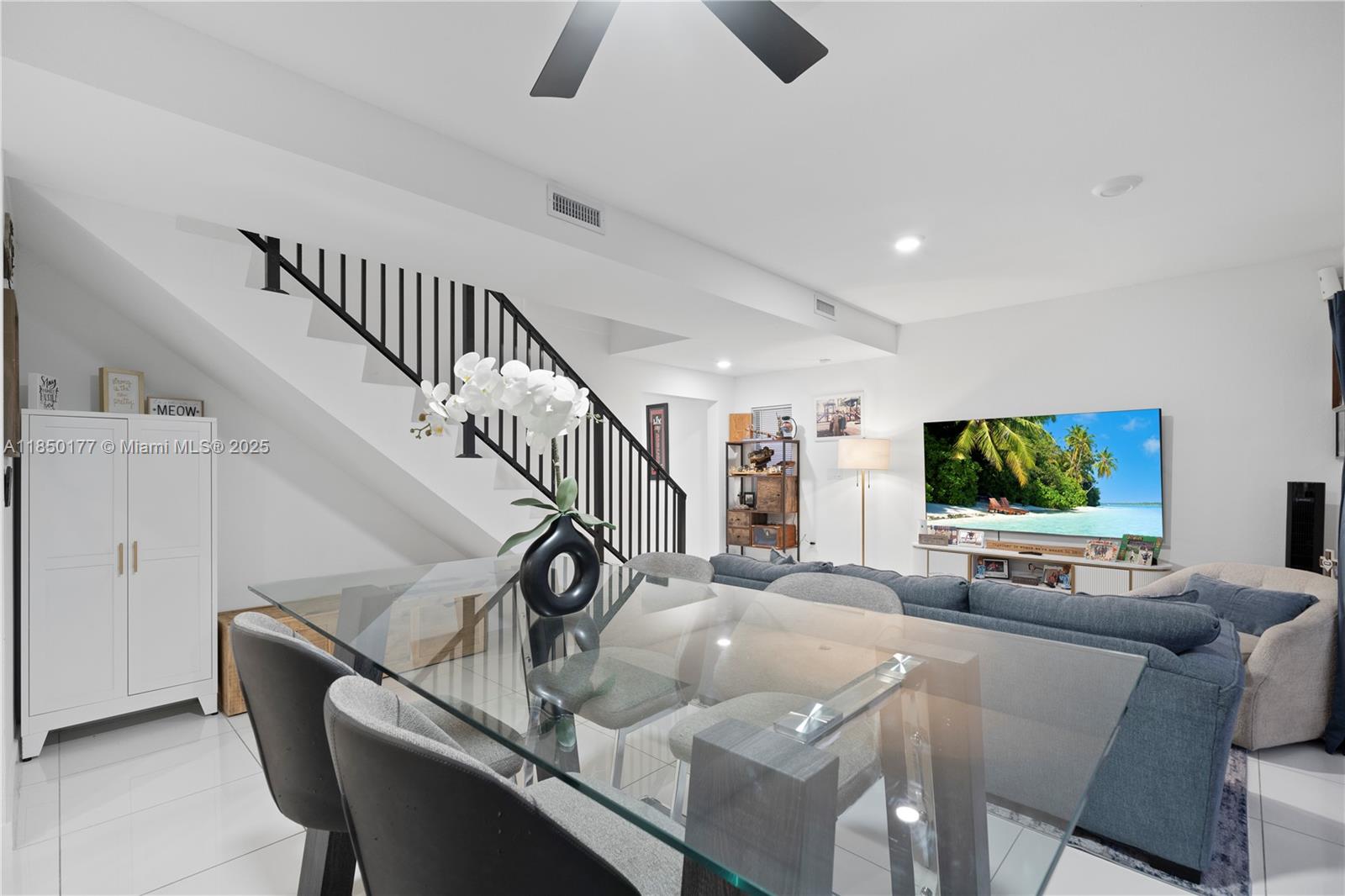 New construction rental with high-end upgrades! Only 2 months to move in. This concrete built home includes a full 1/1.5 downstairs, a 4/3 upstairs and space to park 4 cars comfortably on a paved driveway. Interior upgrades: Window blinds, tints and fans in all rooms. An upgraded front door w/a digital keypad. Exterior upgrades: Large aluminum covered terrace with fans, built-in lighting, synthetic grass, automatic garage door, and tile throughout the front, back, and balcony. No grass, no maintenance! This home is also equipped w/a hard-wired Ring doorbell camera, and impact windows and doors for your complete safety.