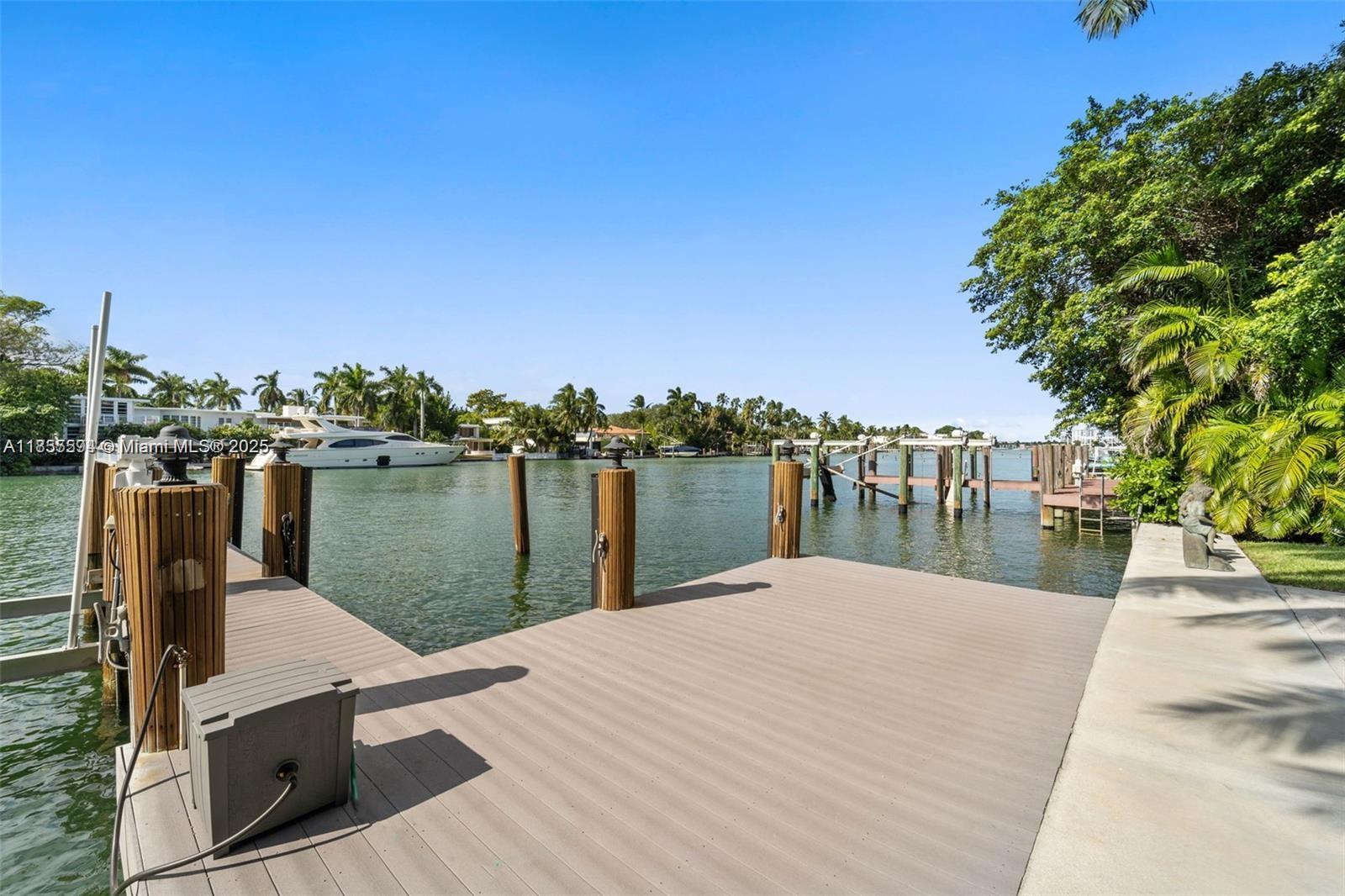 Nestled in the exclusive, guard-gated Allison Island community, this stunning waterfront estate offers luxury elegance. This two-story home features 5 bedrooms, 4.5 bathrooms, soaring ceilings, and abundant natural light. The gourmet kitchen boasts granite countertops, stainless steel appliances, a Sub-Zero fridge, and a gas-powered Viking stove. Designed for comfort and security, it includes built-in closets, impact doors/windows, a generator, and security system. A separate guest house adds 1 bed, 1 bath, a mini kitchen, and a Tesla-charger garage. Outdoors, enjoy a lush backyard with a pool, built-in BBQ, 75 feet of water frontage, a dock, and an electric boat lift up to 10,000 lb , offering direct bay access. Allison Island Association has approved plans for renovated guard gate.