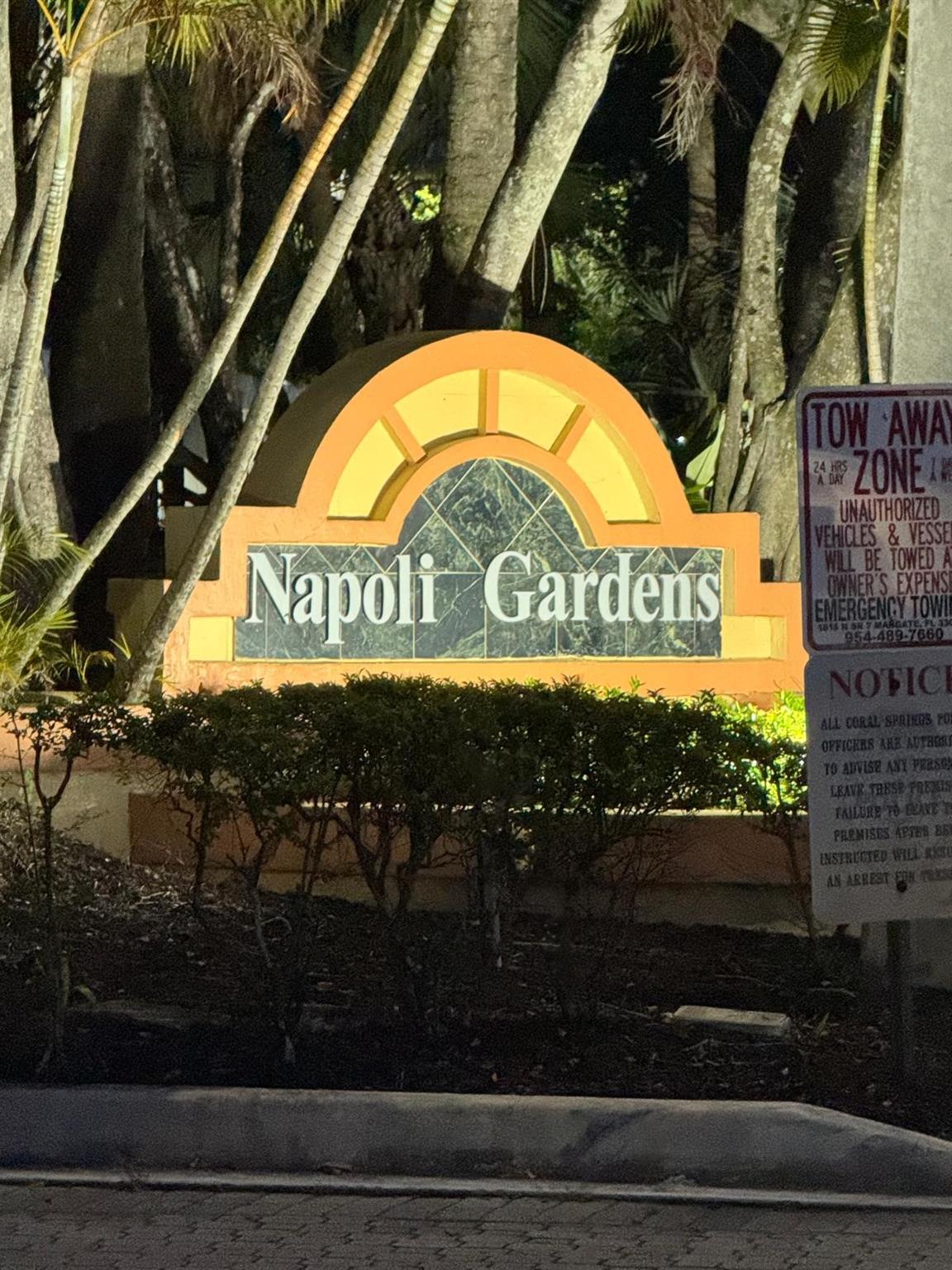 Beautiful and spacious 1 Bedroom, 1 Bathroom Condo in Napoli Gardens. First floor unit. This is one of the most sought after Condominium communities, conveniently located in the heart of Coral Springs, next to community park and shopping plaza. Living in this beautiful neighborhood gives you access to great amenities including a clubhouse, swimming pool, beautiful pool area, tennis courts, fitness center and other amenities. Washer and dryer inside unit. Relaxing backyard with canal view. Screened porch with storage closet. Plenty of parking for gests. Great Coral Springs schools! Association requires credit score of 650+ Great unit, don't miss it!