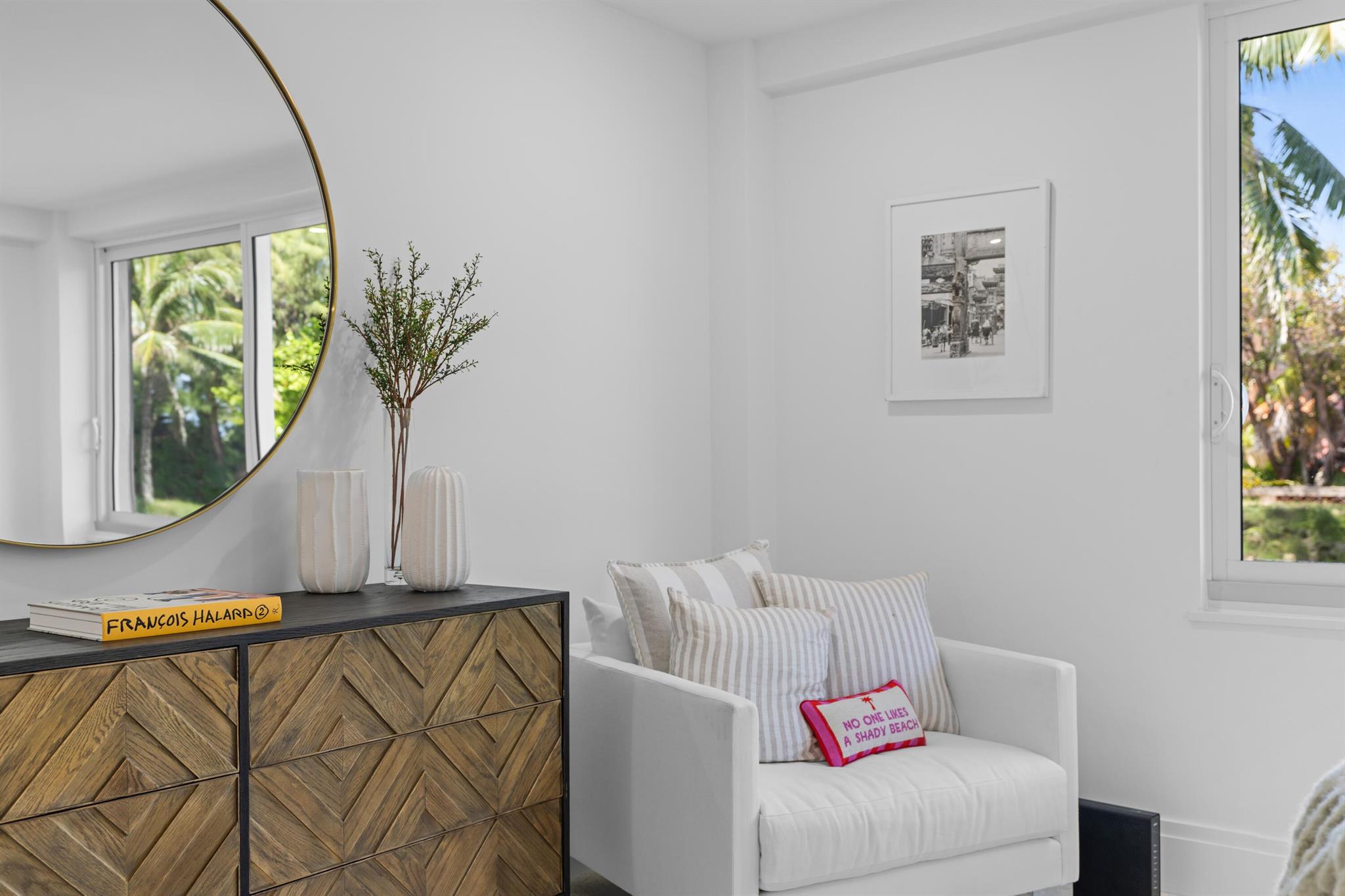 Pristine, low floor, residence with exquisite interior furnishing and design by Meredith Baer. Partial ocean views from all main rooms. Enjoy the private beach across the street or soak up the Palm Beach sun around the beautiful pool. A quiet, in-town, location with close proximity to shops and restaurants. Additional building amenities include a gym, club room, bicycle storage, changing rooms and cabanas..