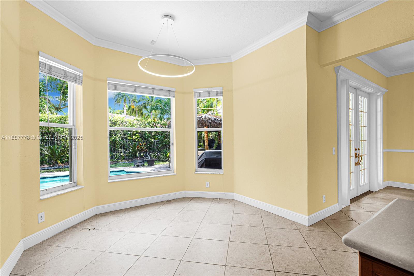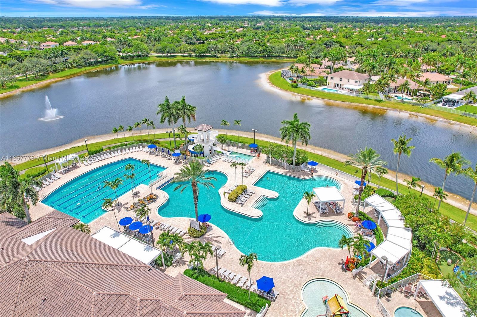 Stunning 2 story home with 6 spacious bedrooms, 5 full baths and tons of closet space in one of Weston's most prestigious gated communities. This home offers an ideal blend of luxury & comfort. The main level showcases a convenient entry level master bedroom & 2 baths ideal for guests, 3 car garage with a gym, while upstairs reveals 2 master suites-one with a California-style walk-in closet & a connect flex room perfect for an office or nursery. French doors that open up to your own tropical retreat with an irresistible outdoor oasis complete with pool, fire pit, tiki hut, built-in grill, & multiple lounging areas making this a haven for entertaining & relaxation. Enjoy the peace of a secure gated community & top tier amenities. Includes access to Country Club membership for golf & tennis.