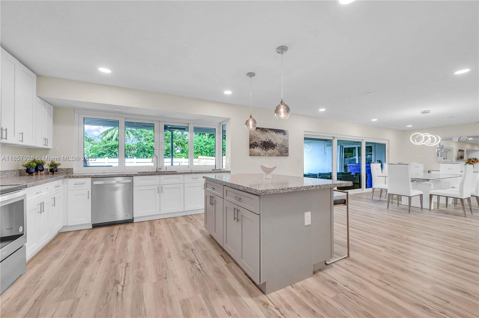 Designer-furnished and beautifully remodeled, this Hollywood Hills pool home offers the perfect balance of comfort, style, and indoor–outdoor living. Sunlit interiors feature large hurricane-impact windows, an open living/dining area, and spacious bedrooms, including a primary suite with a walk-in closet and spa-like bath with double vanity, soaking tub, and separate glass-enclosed shower. The second bath is equally updated with modern finishes. The sleek kitchen boasts stainless steel appliances, a glass cooktop, and an island for casual dining. Outside, a landscaped, gated backyard awaits with a sparkling pool and covered patio, perfect for BBQs and entertaining. Conveniently located minutes from shops, dining, and parks. South Florida living at its best. Available now, until July 2026.