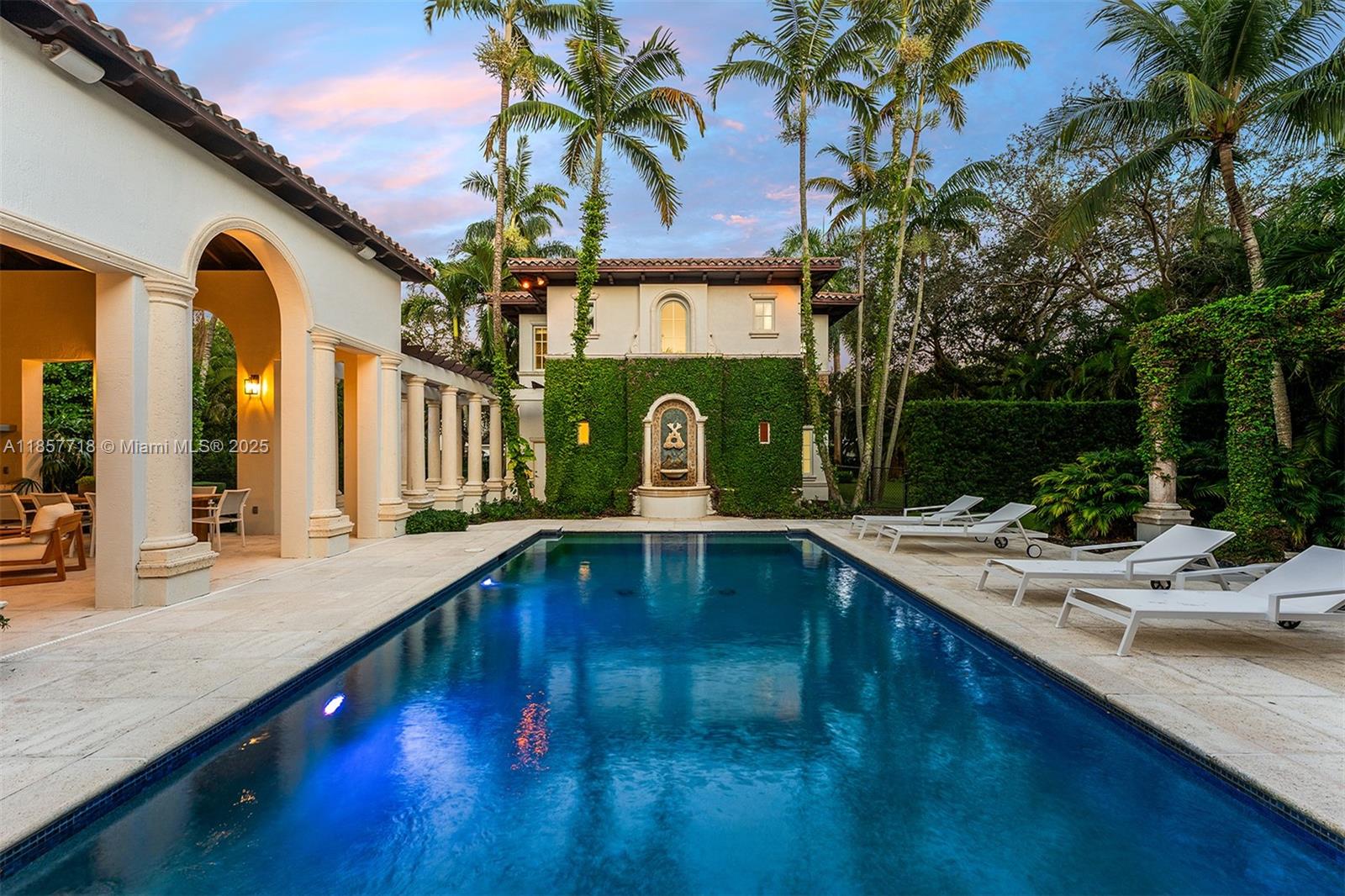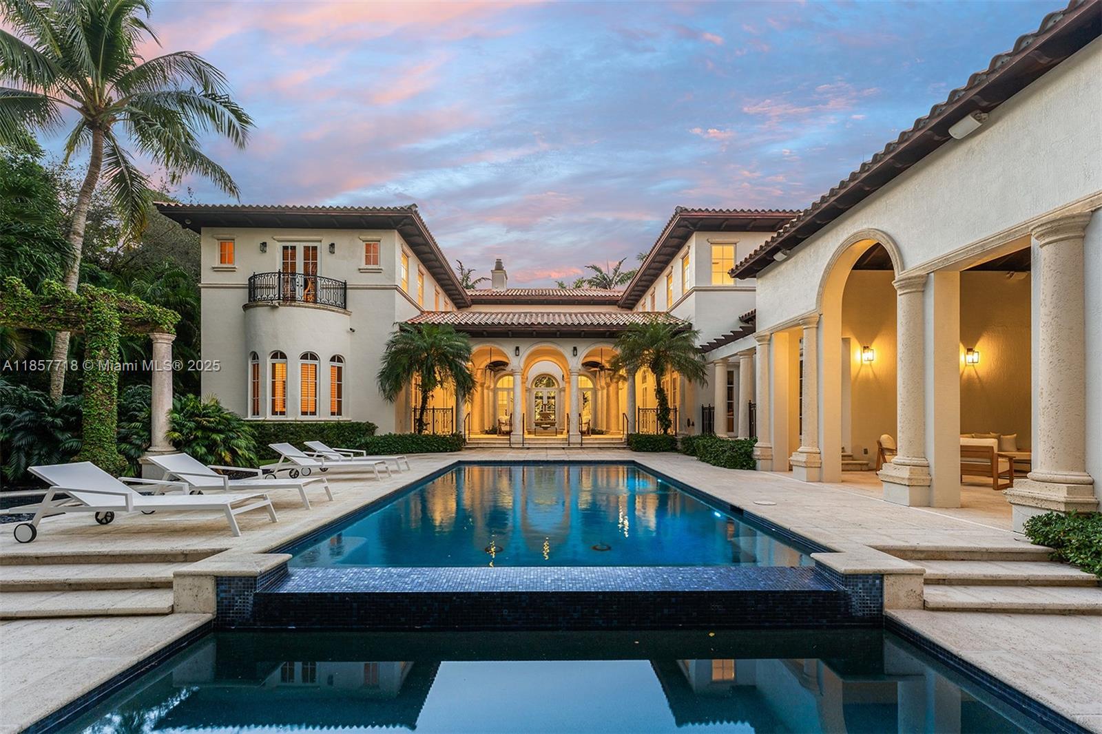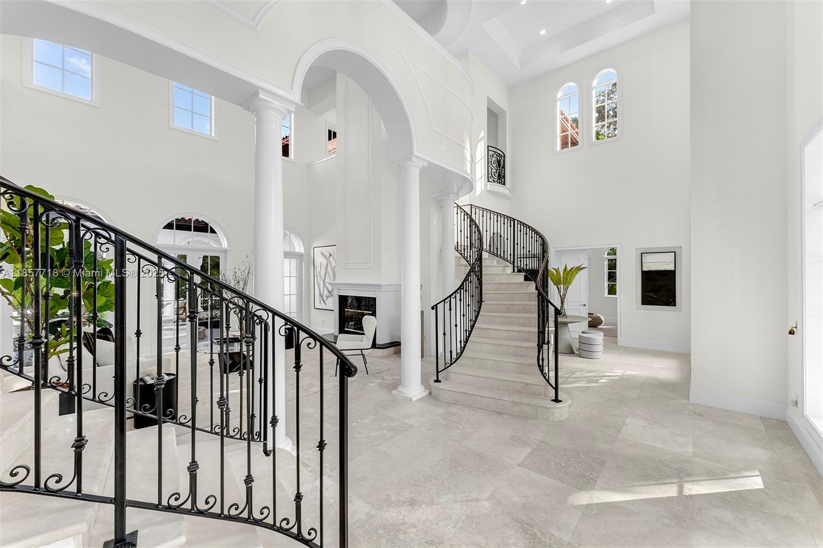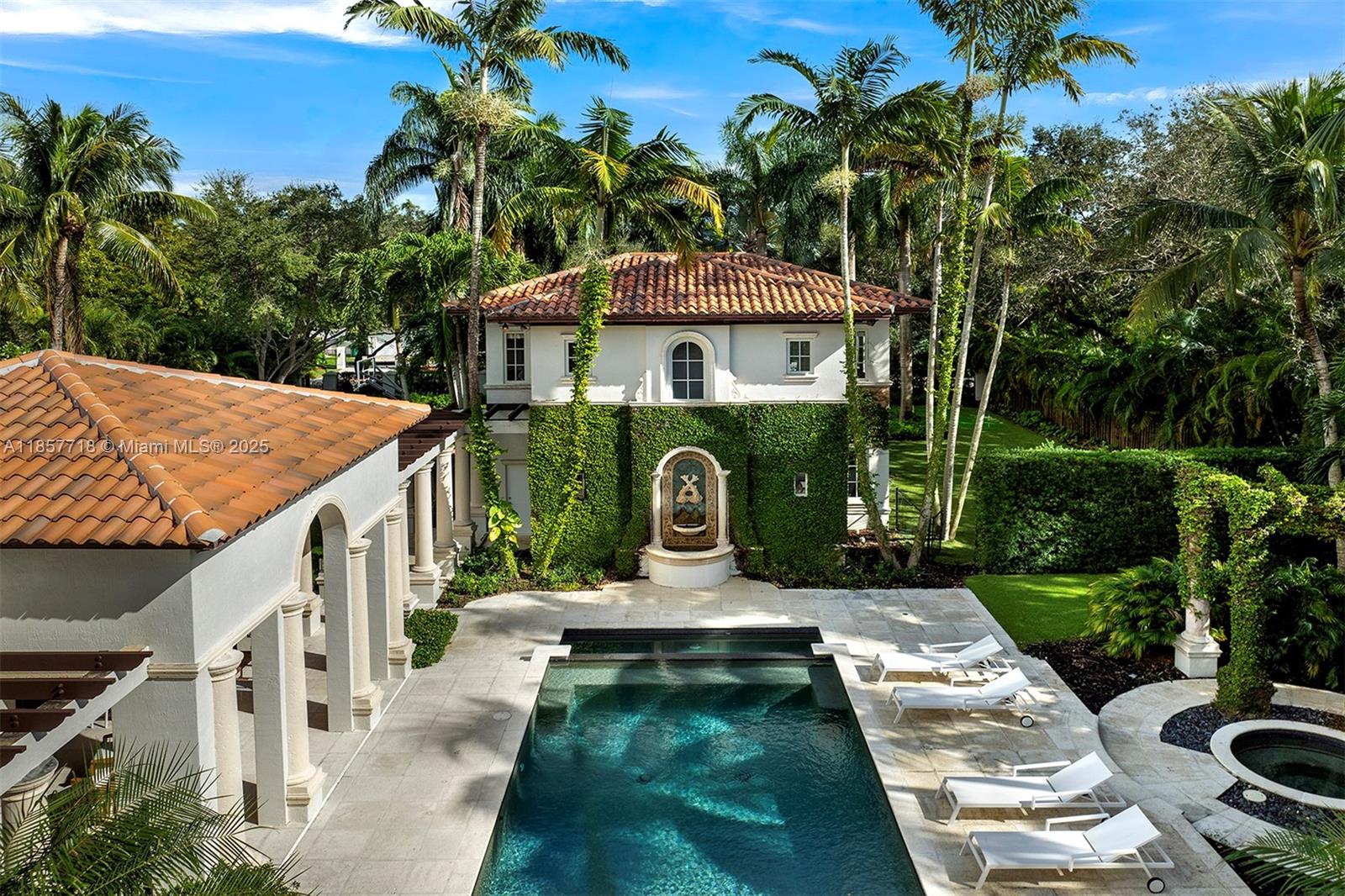 Luxury estate on esteemed Suburban Dr in Pinecrest, boasting a through-lot design. Ideal for a large family, w dual staircases that divide the foyer & formal living rm w soaring ceilings. Main level includes entertaining space, formal dining rm & open-style kitchen. Family rm is enhanced w a bar, fish tank, & workspace. Primary suite on main level enjoys its own wing, w a sitting/nursery rm. Staircases lead to distinct wings, one side 3 beds & 3 baths, and the other w 2 beds & 2 baths, featuring hardwood floors & renovated baths. Backyard is a paradise, w pool, jacuzzi, basketball court, & putting green. Additional luxuries: outdoor courtyard, water features, summer kitchen, detached guesthouse w 2 beds, living, & kitchen area, 3 car garage, & spacious motor court.