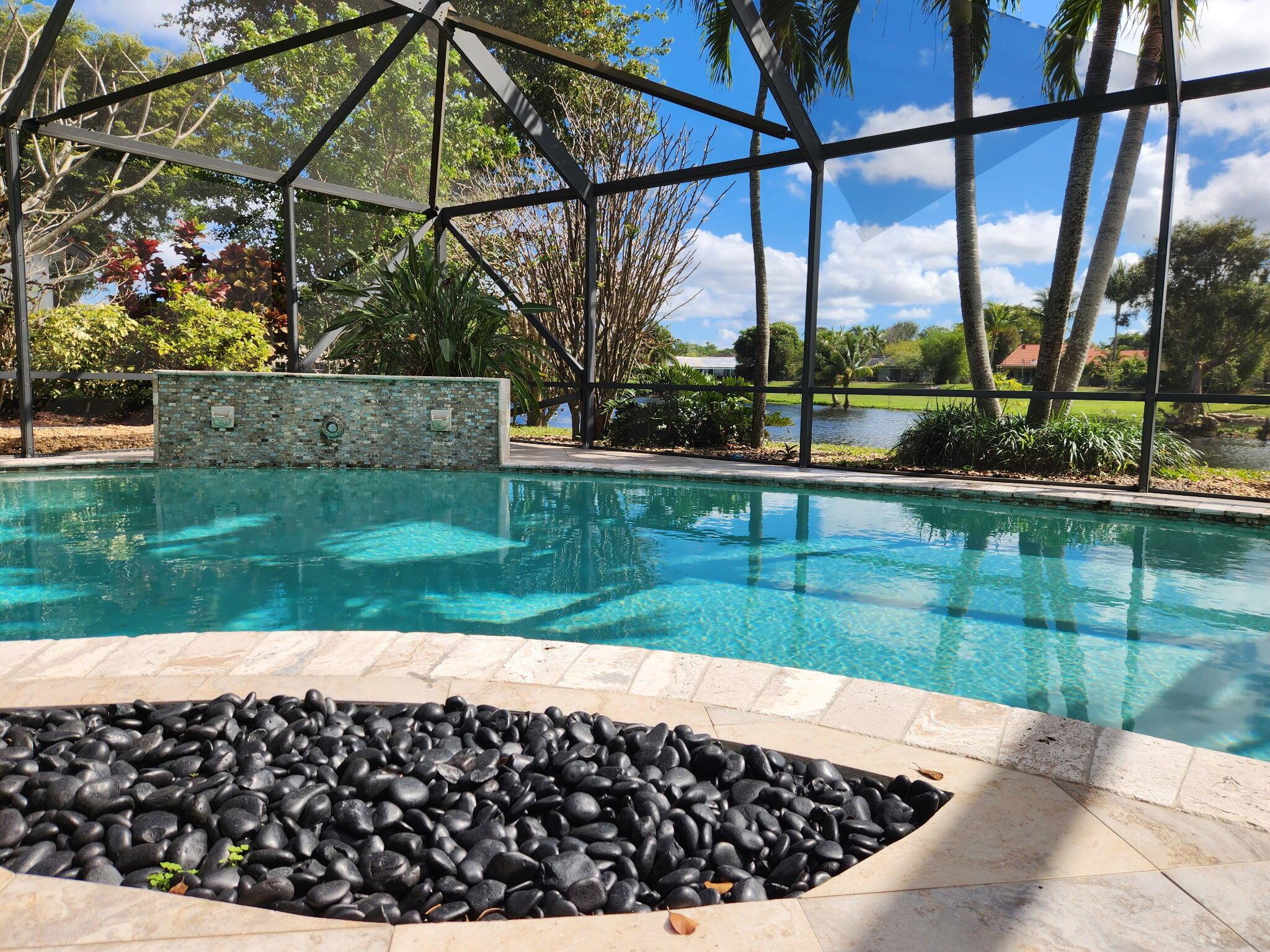 Beautifully furnished home. Enjoy million-dollar lake views from this beautifully maintained 3-bedroom, 2 1/2-bath pool home with an additional den, located in Delray Beach's #1 neighborhood. Perfectly situated on the Sherwood Park Golf Course with no membership required.The split floor plan features a formal living and dining room that opens to a screened pool and patio area, perfect for relaxing or entertaining. The updated kitchen boasts wood cabinets, granite countertops, and stainless-steel appliances. The spacious master suite includes a California closet, a sitting area, and a luxurious bath with a Jacuzzi tub, double-sink vanity, custom lighting, and a glass-enclosed shower