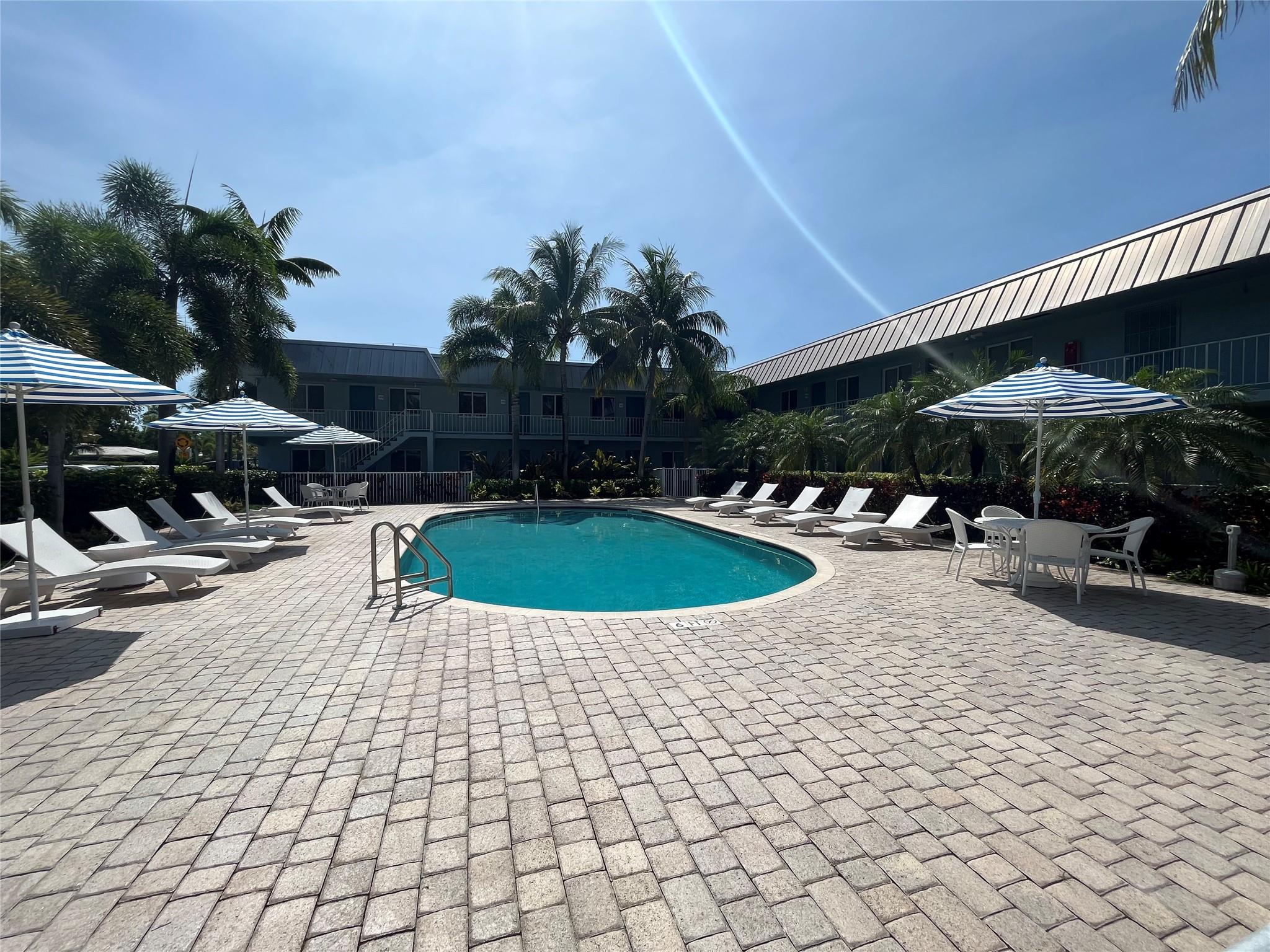 Beautifully remodeled first floor, 1/1 in desirable Poinsettia Landings. Flooring is ceramic tile throughout, Stainless Steel appliances, wood cabinetry, granite and tile in kitchen and bath. End unit. Lush tropical landscaping including heated pool, BBQ area, laundry facility in the building. Pet friendly! Photographs taken prior to current tenant's occupancy. Currently rented until October 11, 2025. Located near Wilton Drive, Downtown Ft. Lauderdale, shopping, restaurants, nightlife, and the beach. The information is deemed to be reliable but is not guaranteed.