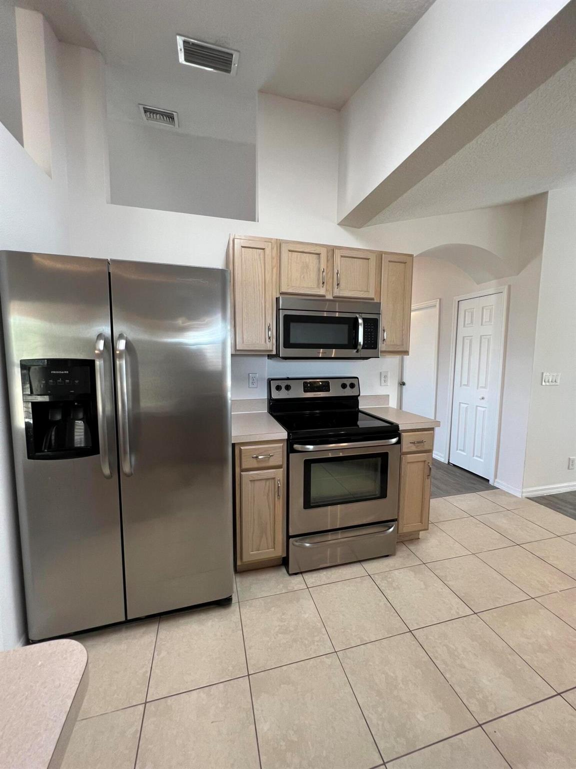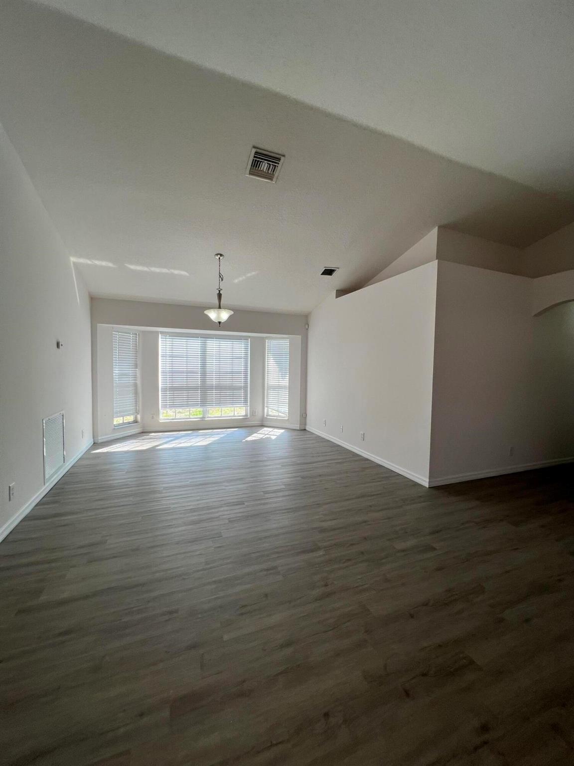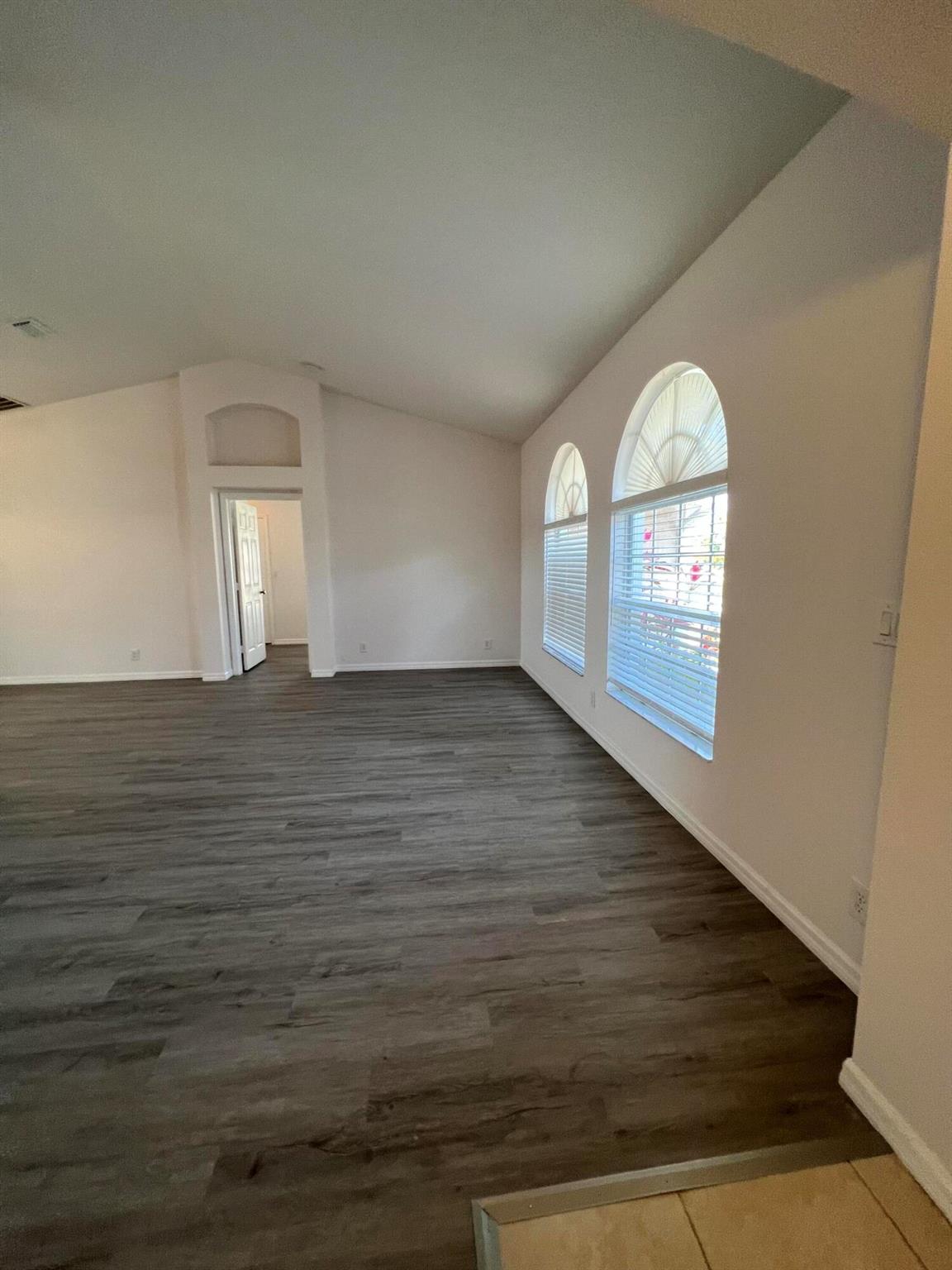 Spacious 4-bedroom home with vaulted ceilings, wood like flooring, carpet in bedrooms, formal dining room, family and living room, built ins, arched doorways and windows, stainless steel appliances and washer and dryer, all window covering and paint. covered patio, private setting, with split floor.If you need space this home has it!!!!
