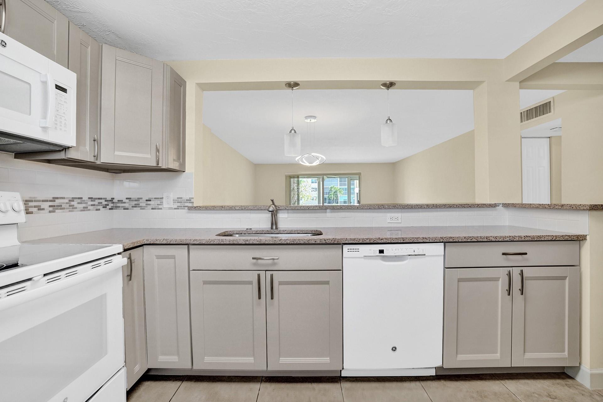 Beautiful first-floor unit in this quiet ALL AGES building features an open floor plan, newer kitchen cabinets with quartz countertops, porcelain tile floors throughout the common area and bedrooms, brand new bathroom, lots of closet space, freshly painted, 2019 air conditioner, corner unit with extra window in bedrooms and second bathroom. Screened porch with lake views. Close to Publix, restaurants and Dania Beach casino, Dania Beach and Hollywood beaches, and Fort Lauderdale International Airport. OK to lease after one year. No pets.